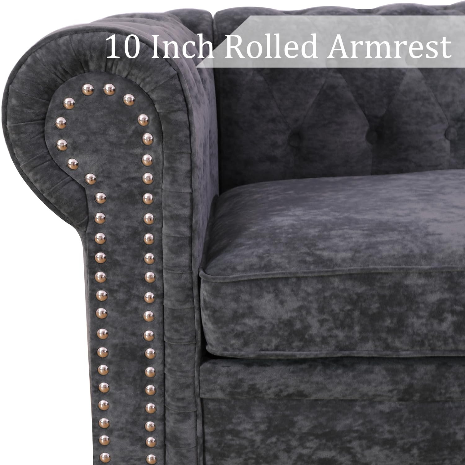- 👪️Chesterfield Sofa Style: The living room couch set brings an atmosphere of luxury with tufted deep buttons, nailhead accents, scrolled arms. This is finished with gorgeous upholstery and elegant diamond stitching. Matching perfectly with any decor theme, the sofa is a great addition to your living room, bedroom, lounge, hotel or office.