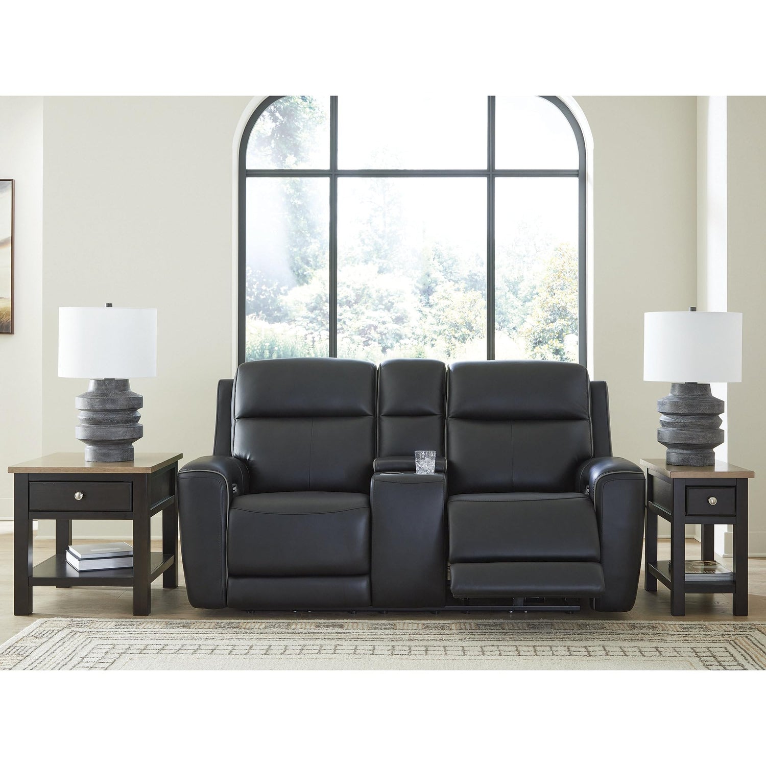 Signature Design by Ashley 5Z-Dreamlight Modern Leather Match Power Reclining Loveseat with Console, Adjustable Headrest and USB Charging, Black