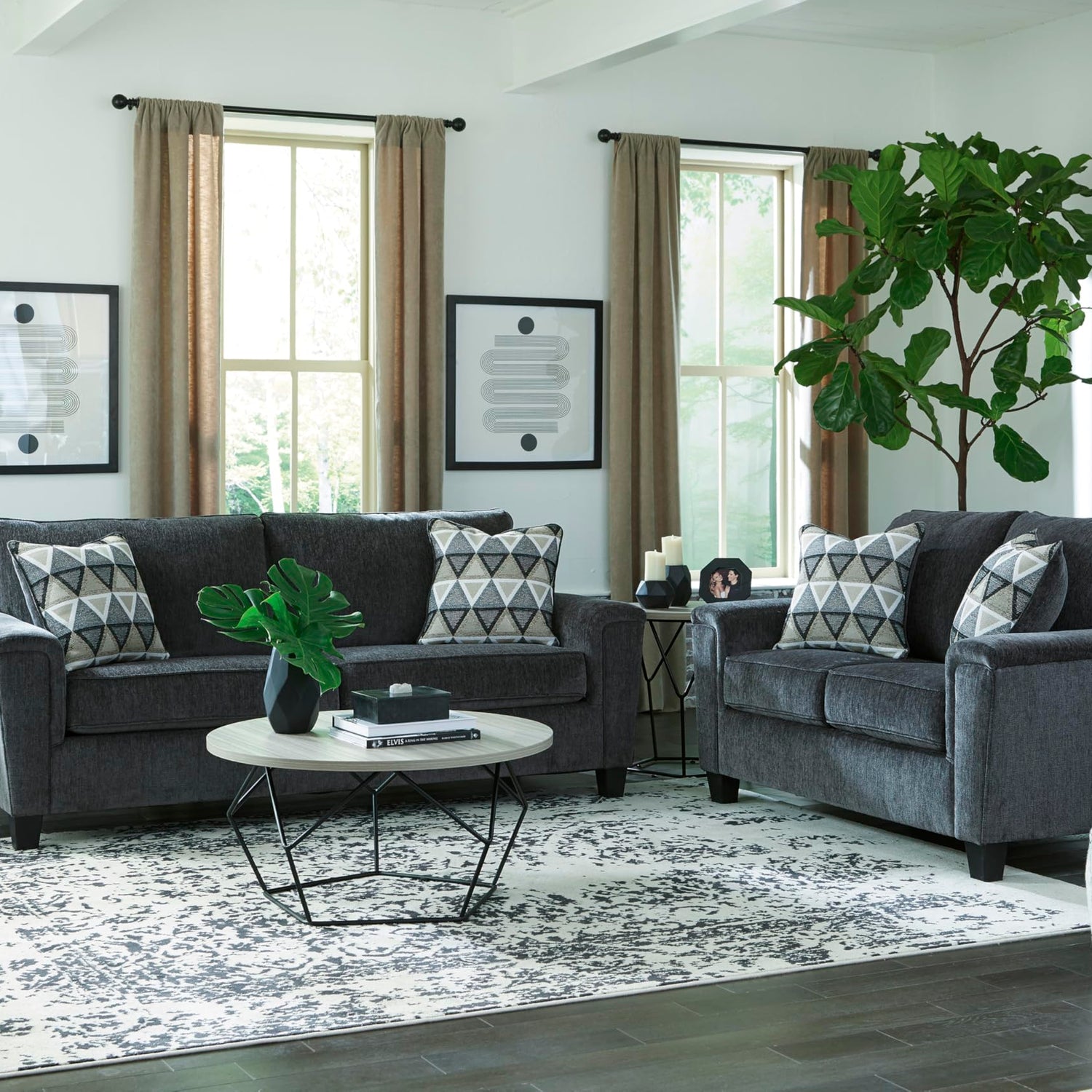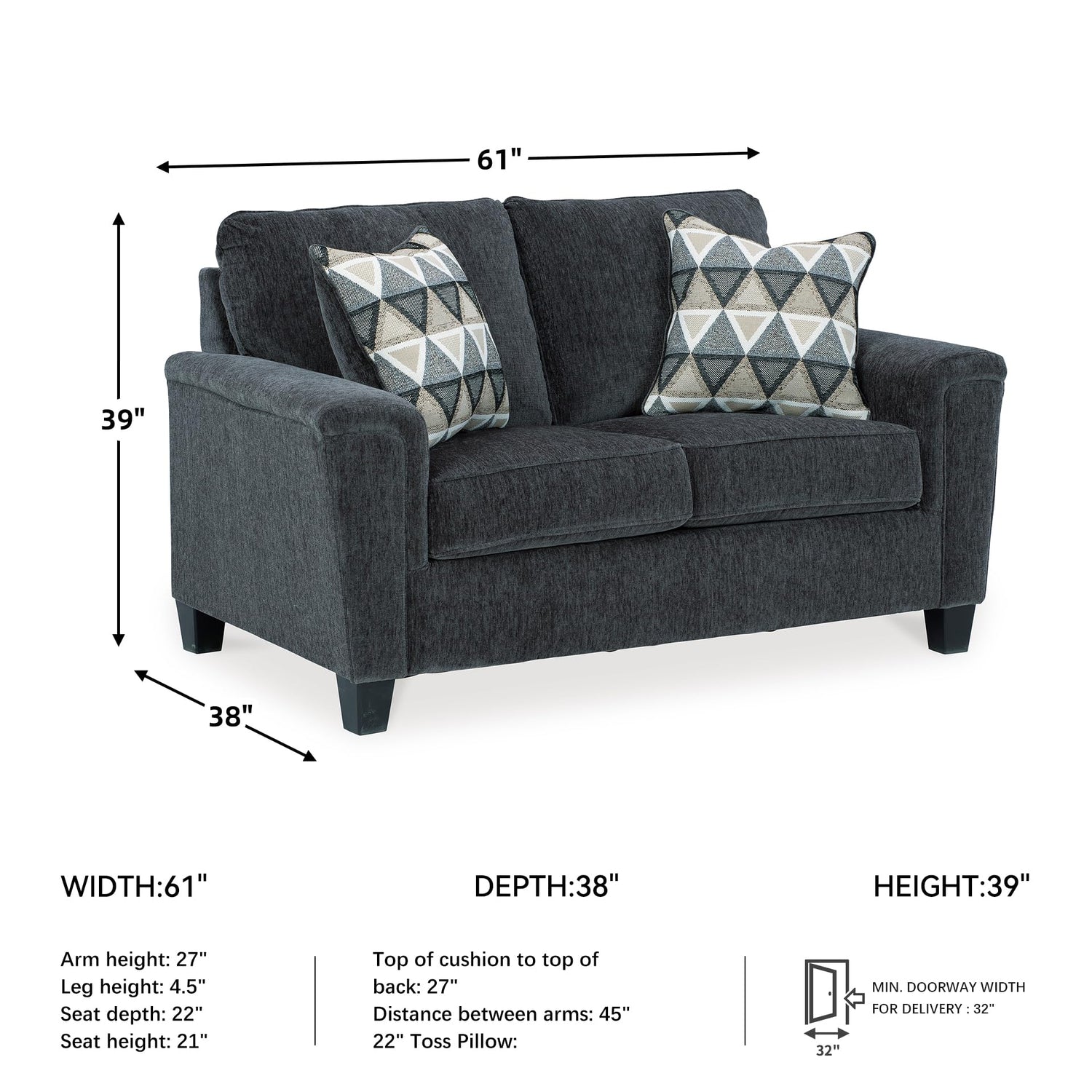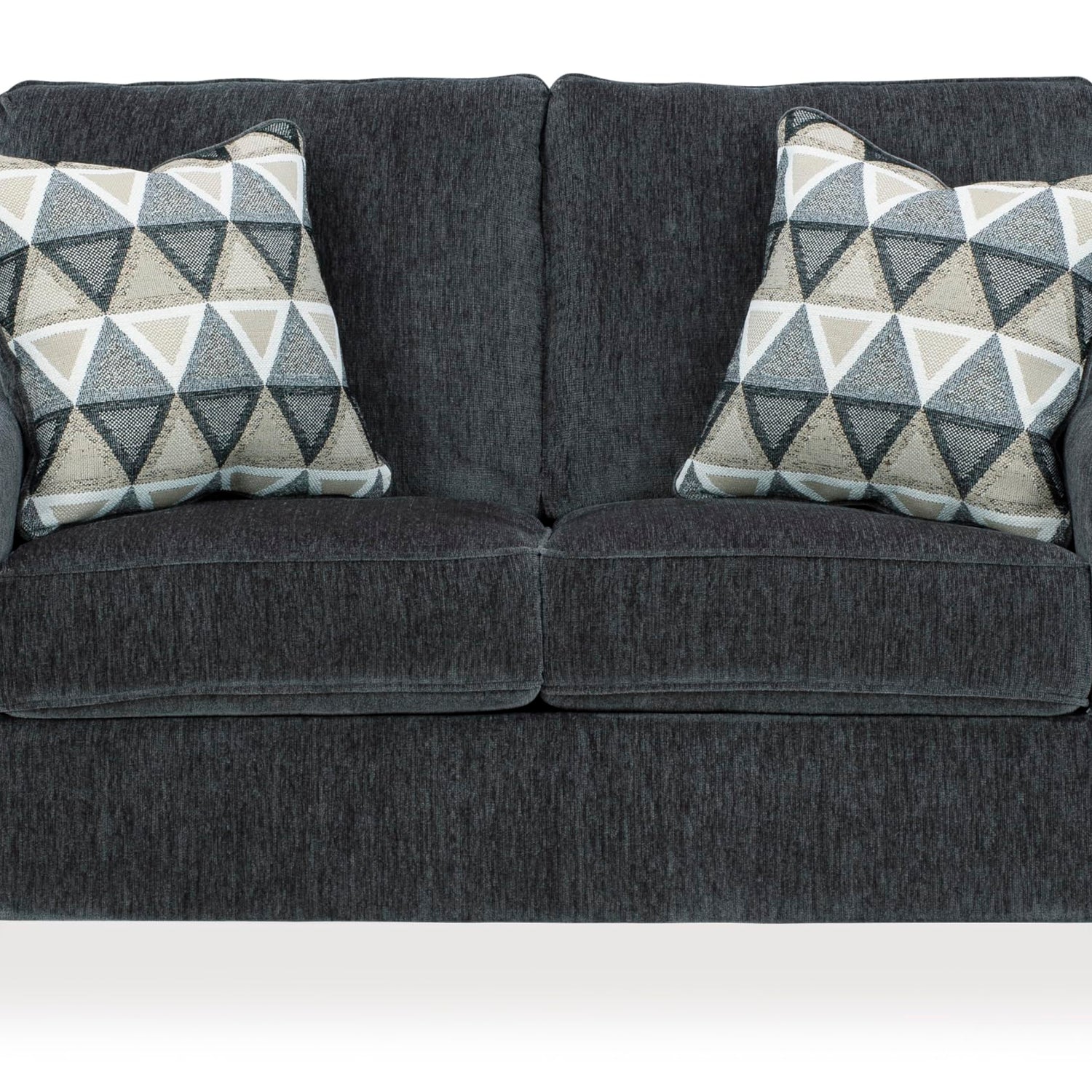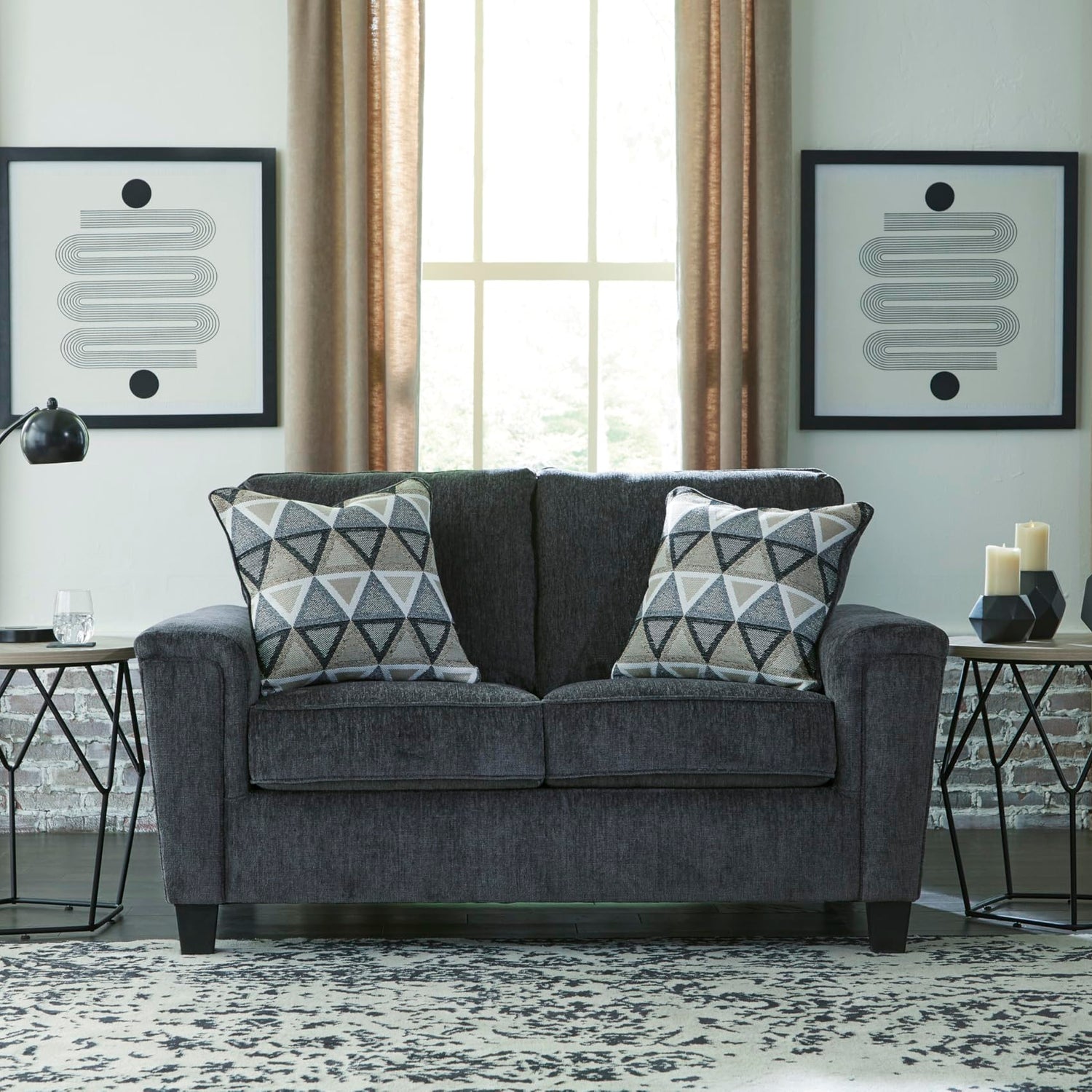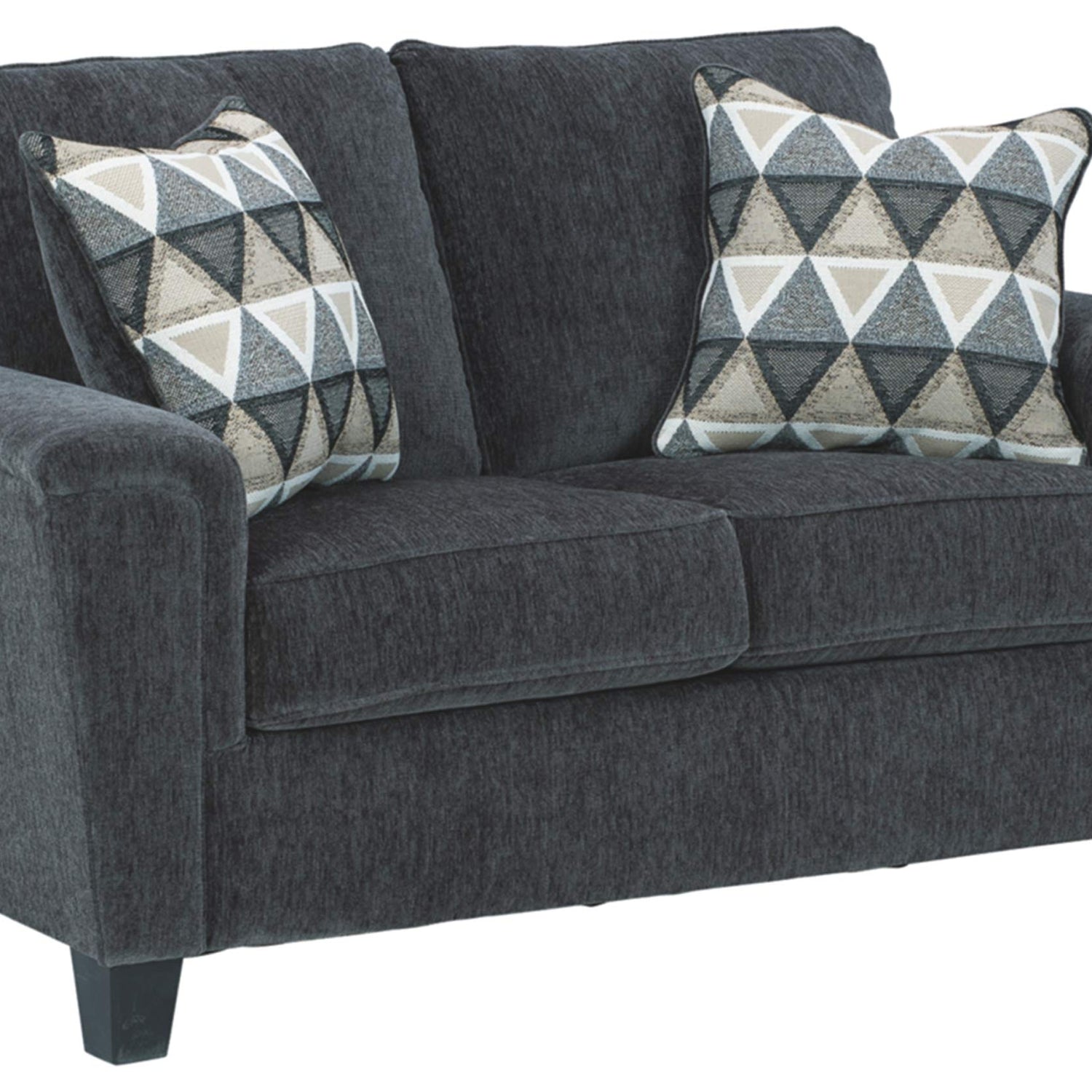Signature Design by Ashley Abinger Chenille Contemporary Loveseat with 2 Accent Pillows, Dark Gray