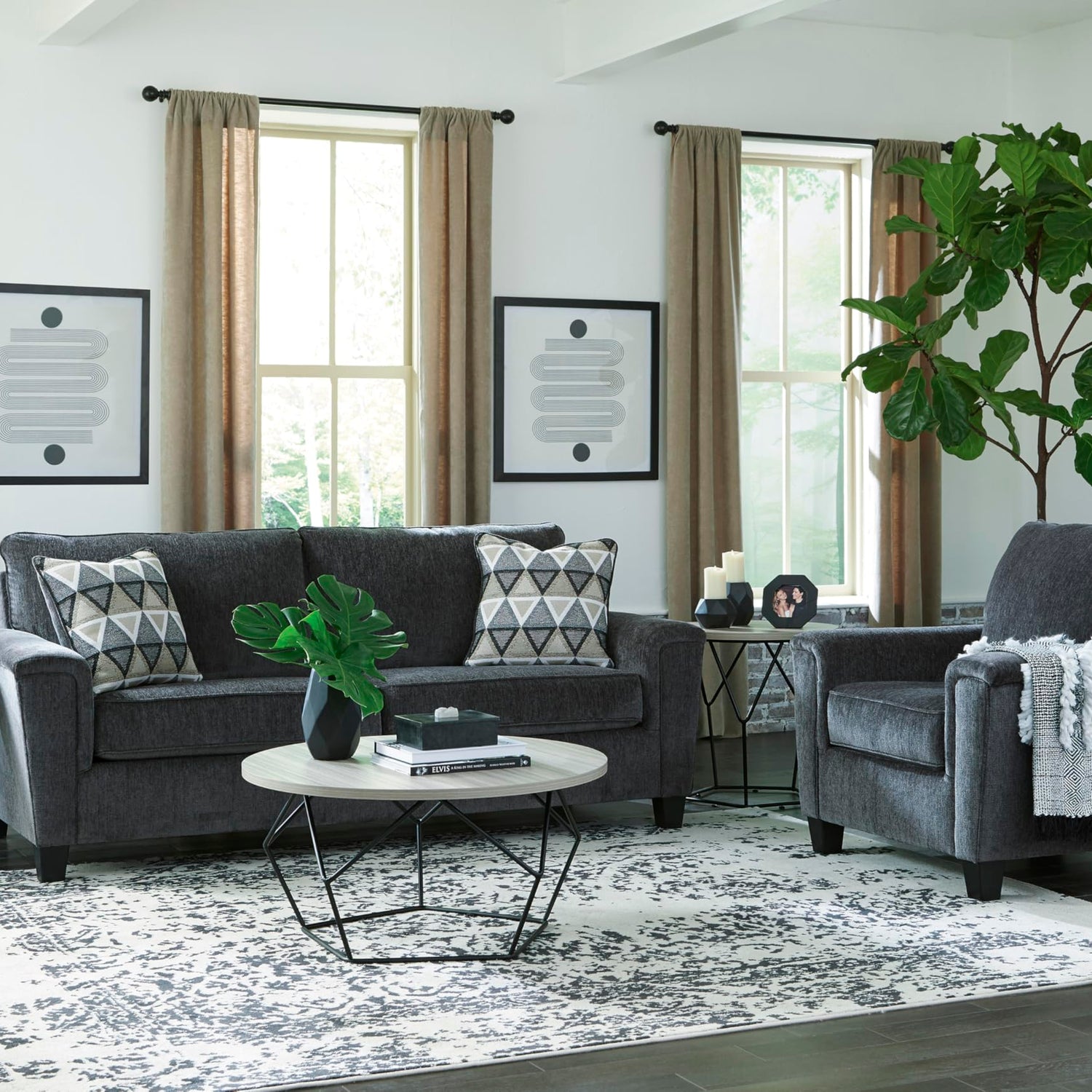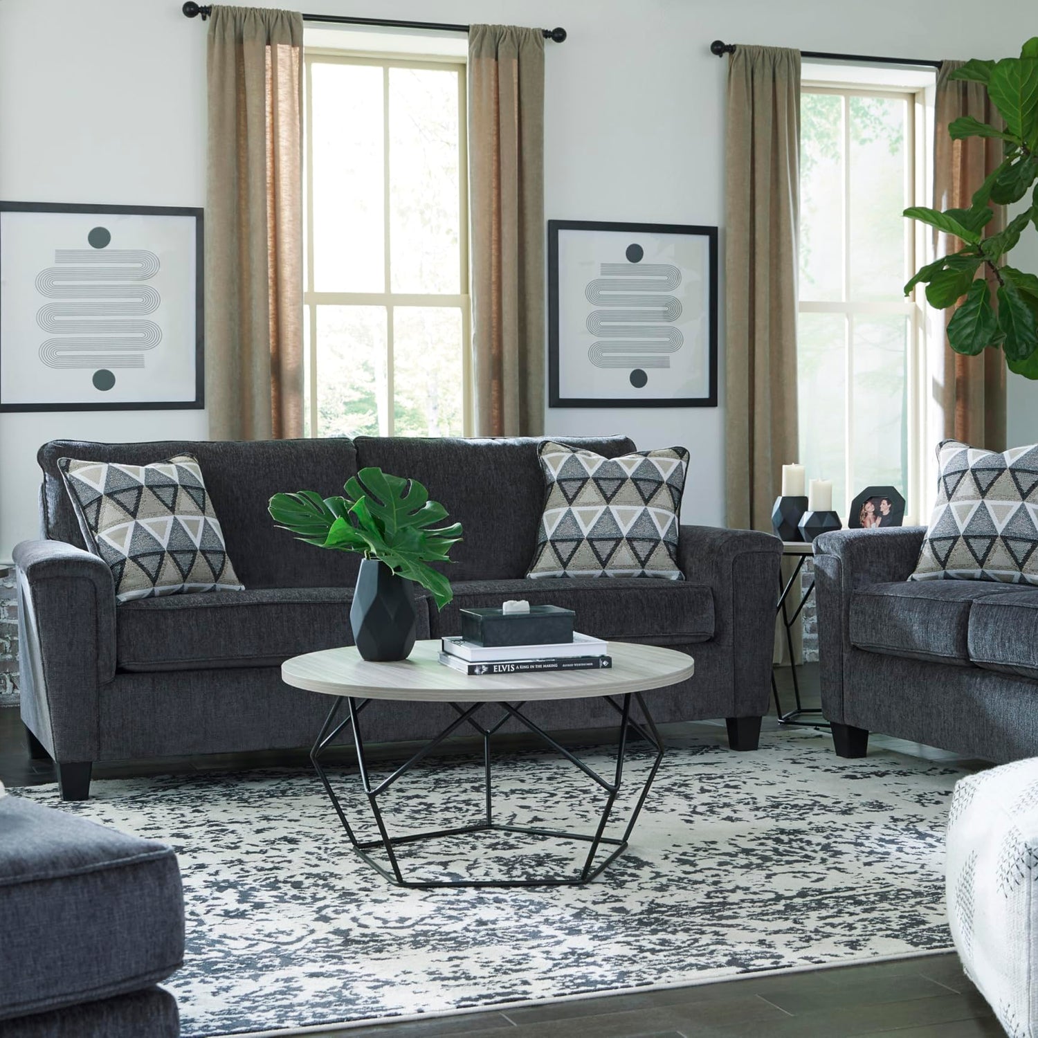 Signature Design by Ashley Abinger Chenille Contemporary Sofa with 2 Accent Pillows, Dark Gray
