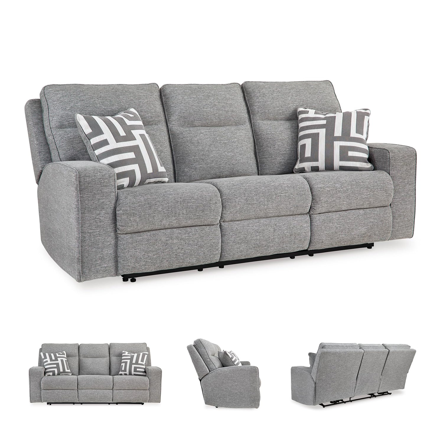 - POWER RECLINING SOFA: Bring style and function to your living room. This reclining couch has modern appeal and a clean-lined profile, with high-performance fabric and plump cushions for comfort