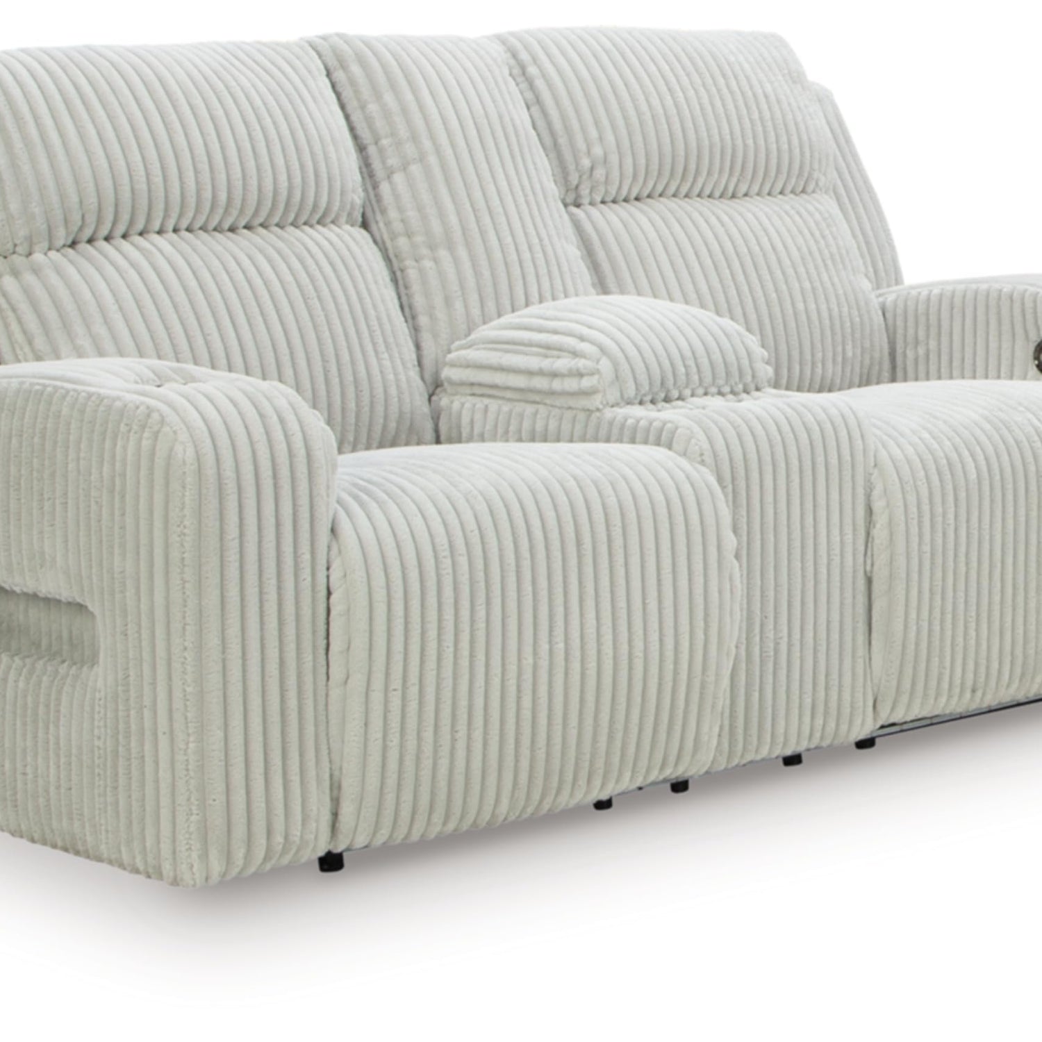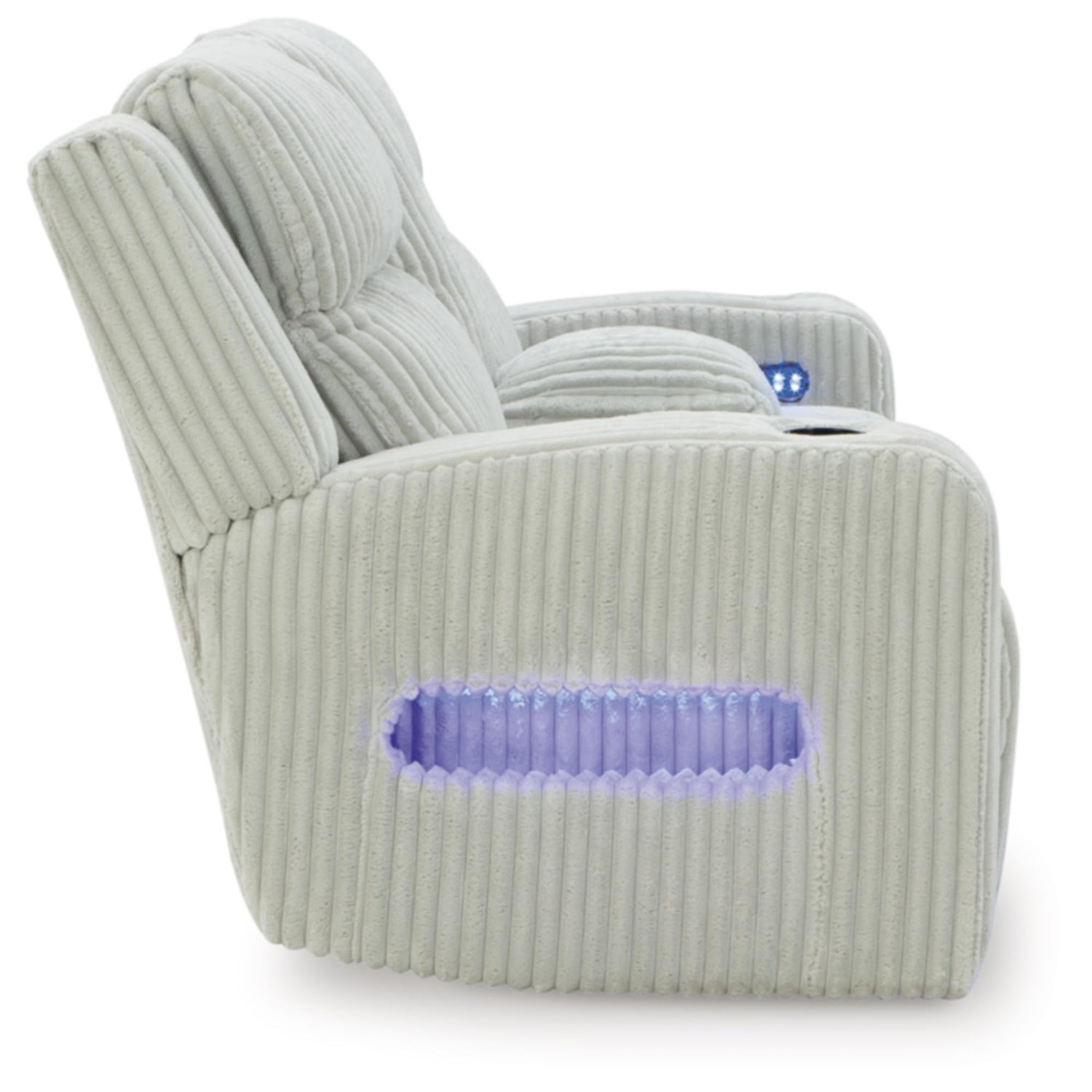 Signature Design by Ashley Broad Cove Modern Power Reclining Loveseat with Console, Adjustable Headrest and LED Lights, White