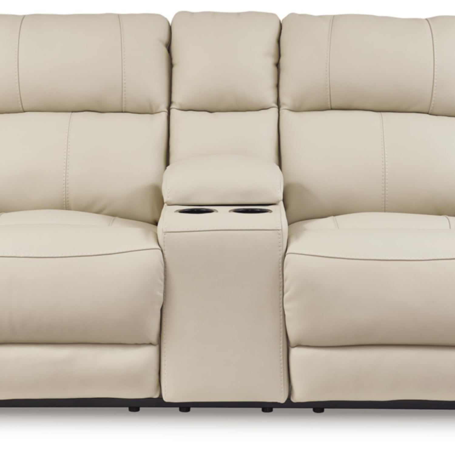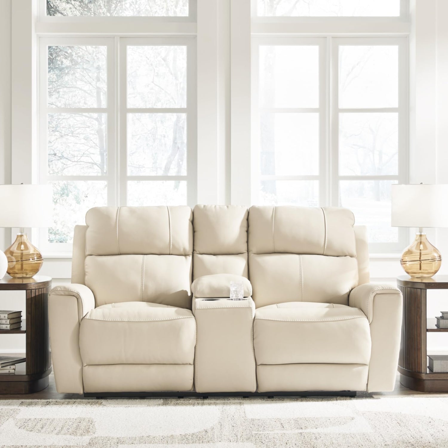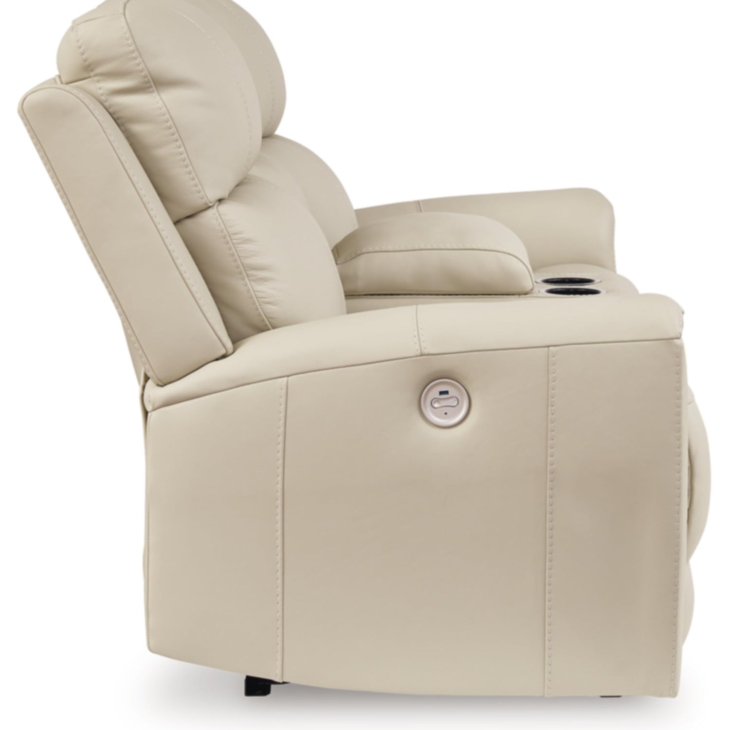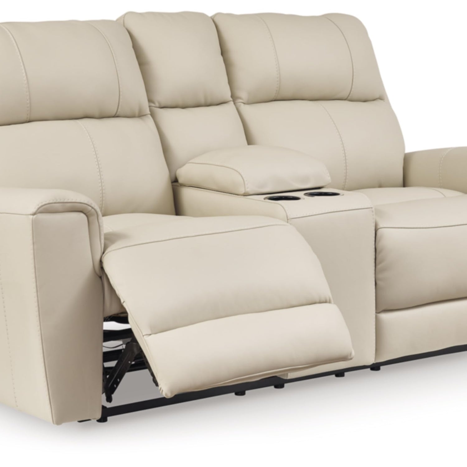 - RECLINING POWER LOVESEAT: This practical power recliner with console features expertly matched leather and faux leather upholstery, to keep your style up to speed without breaking the bank