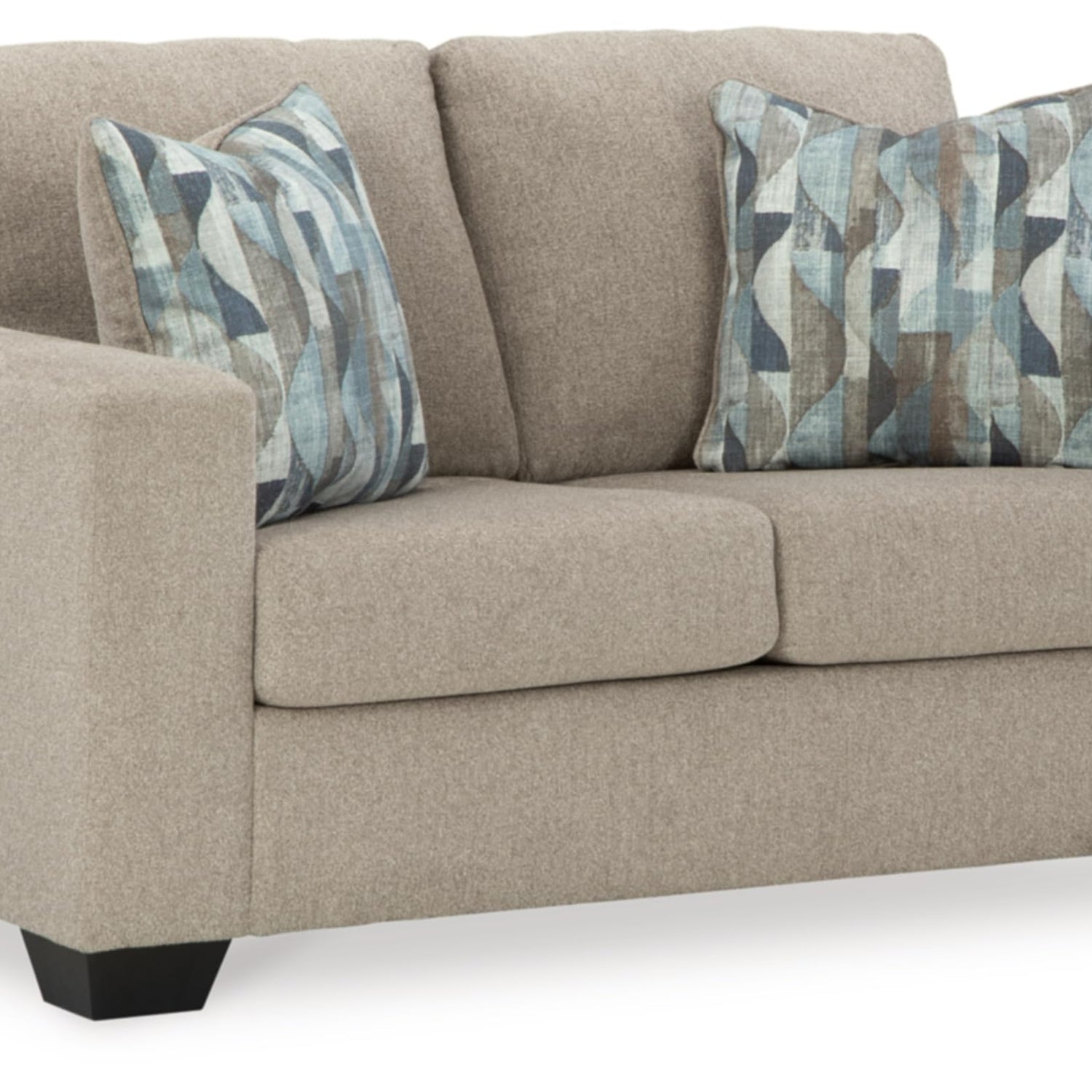 Signature Design by Ashley Deltona Contemporary Loveseat with 2 Accent Pillows, Beige