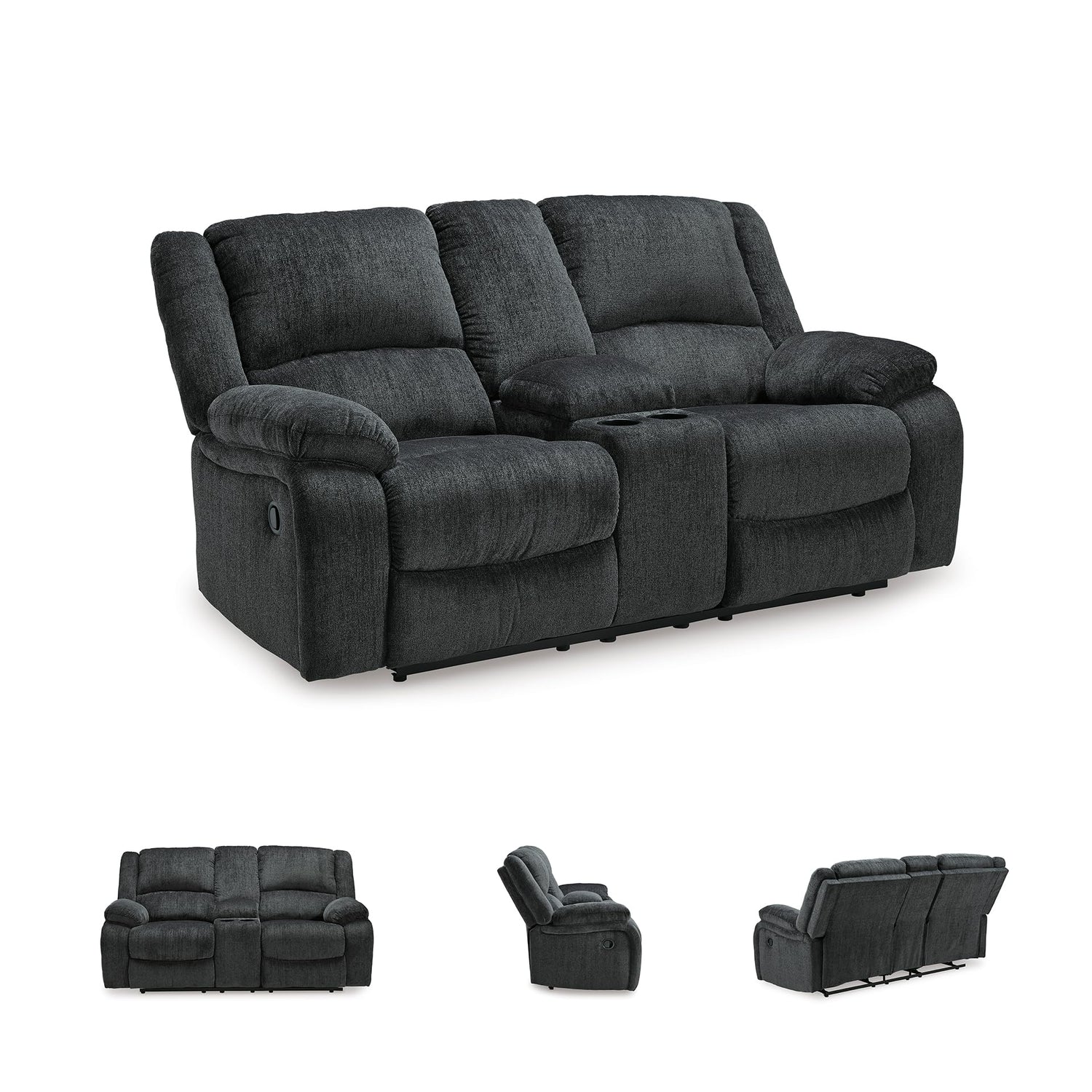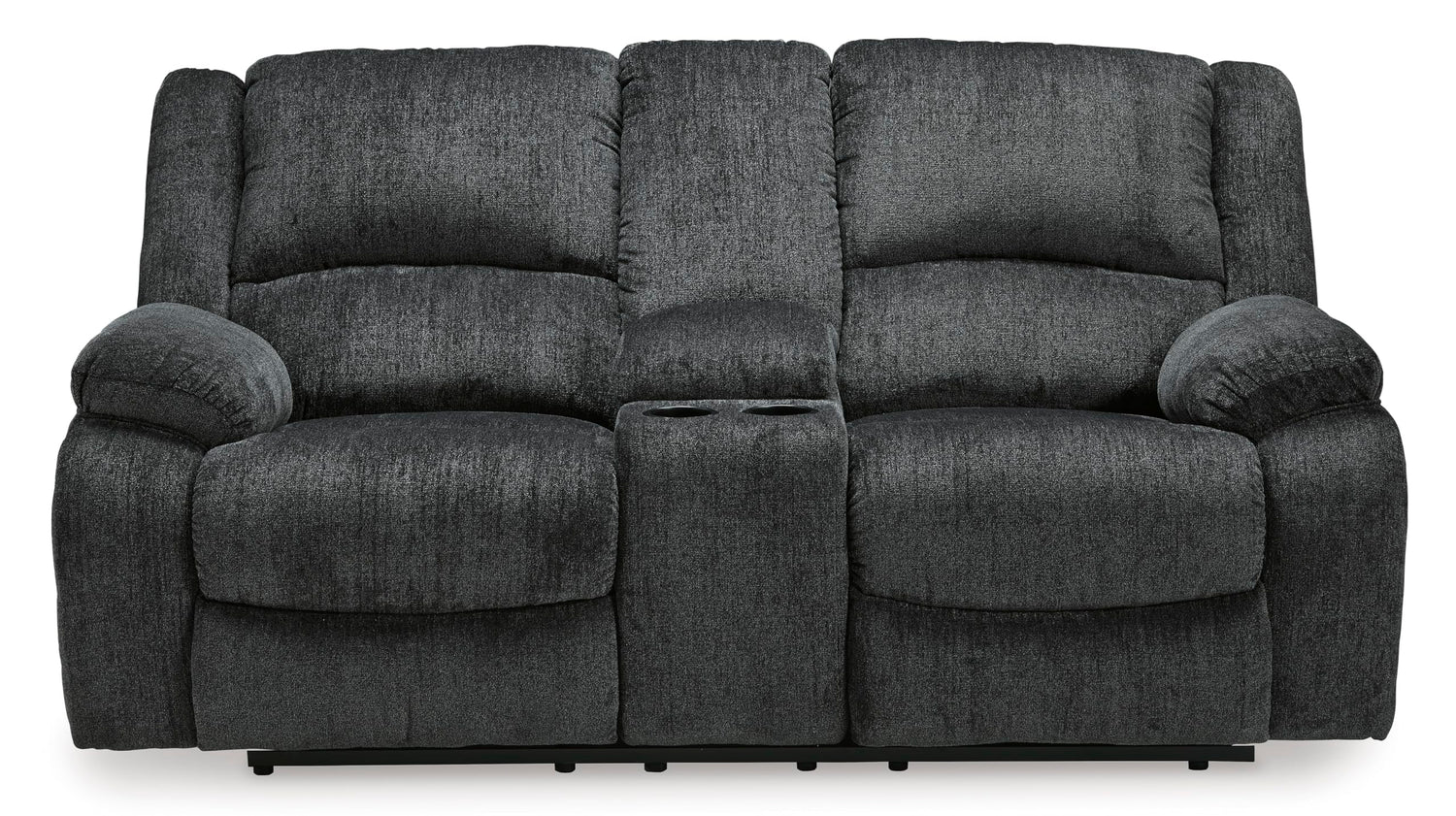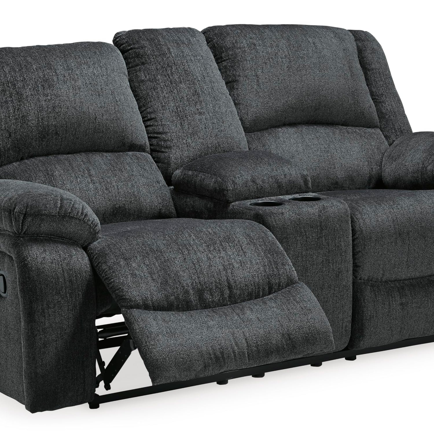 Signature Design by Ashley Draycoll Contemporary Double Reclining Manual Loveseat with Center Console, Dark Gray