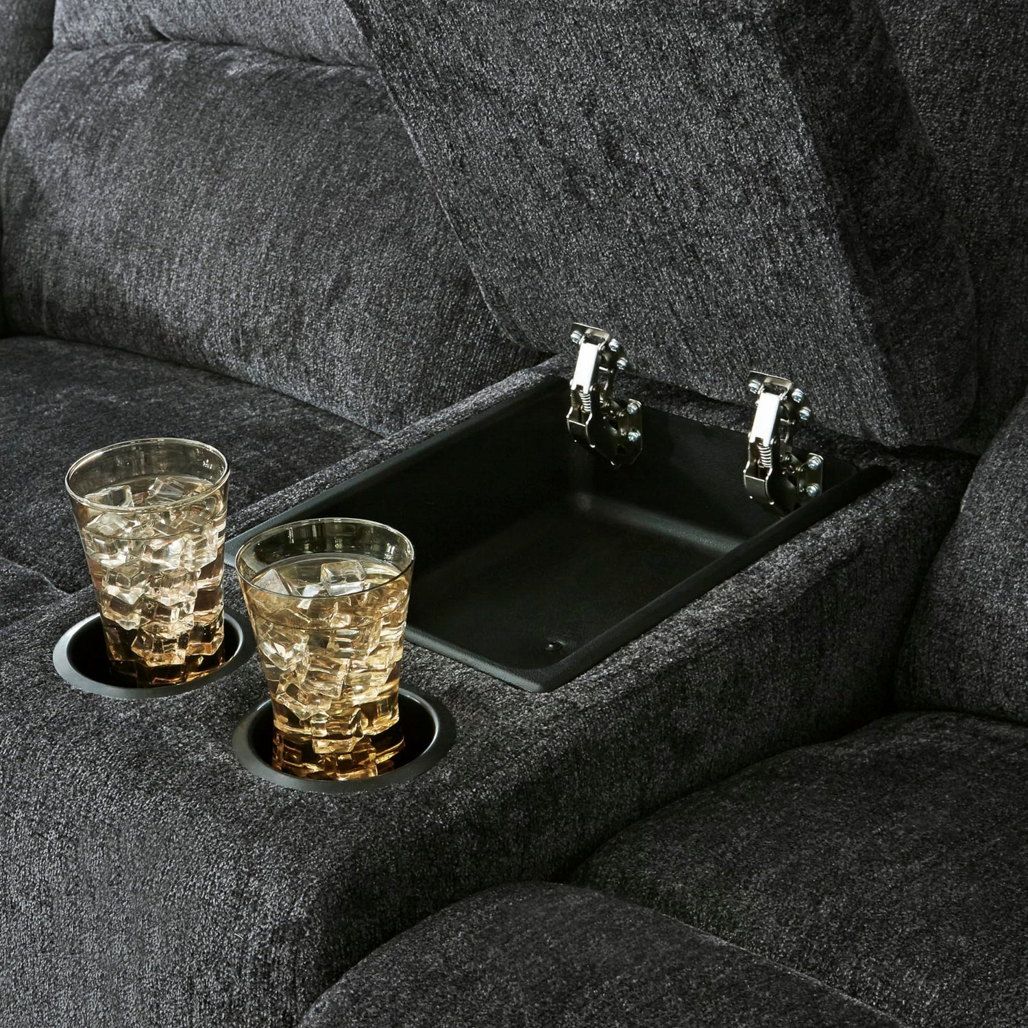 - QUALITY FURNITURE: Thick chenille upholstery provides a comfy surface on which to lounge. Crafted with a corner-blocked frame, metal reinforced seats and a center storage console with two cup holders