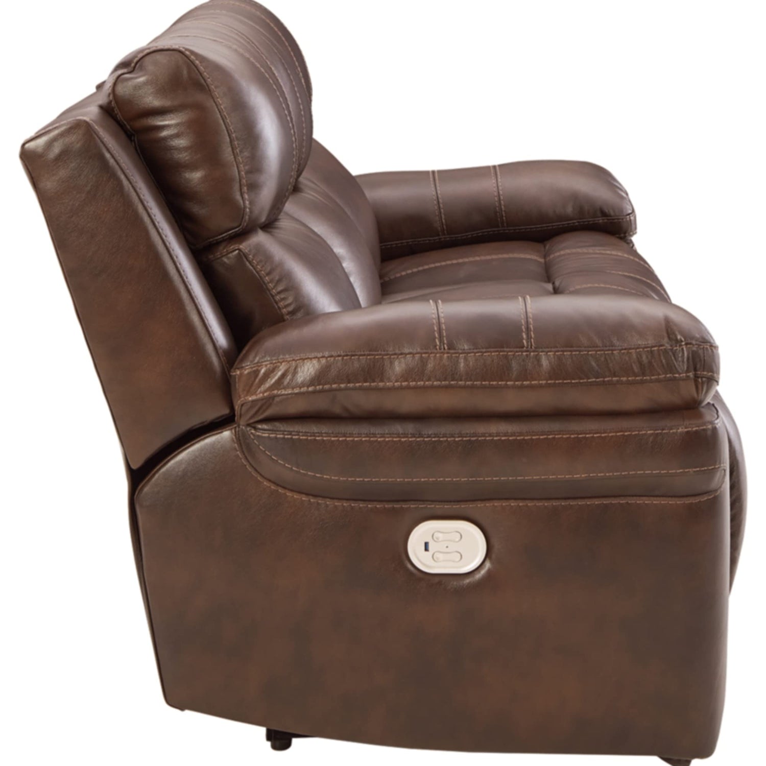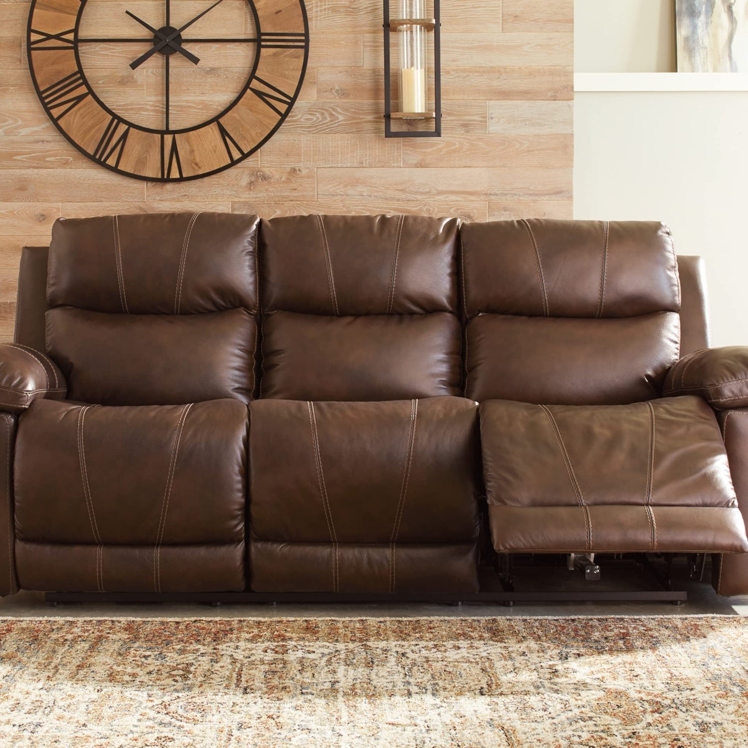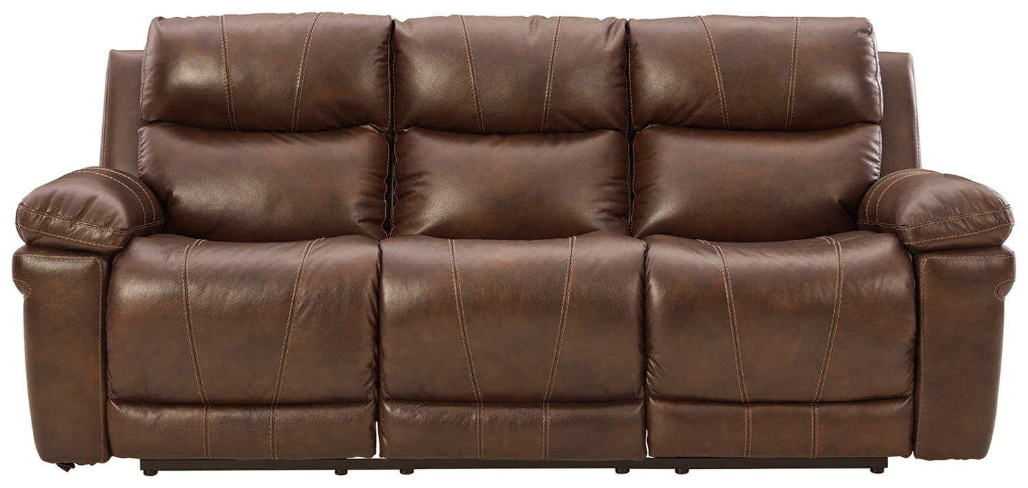 Signature Design by Ashley Edmar Leather Power Reclining Sofa with Adjustable Headrest, Brown