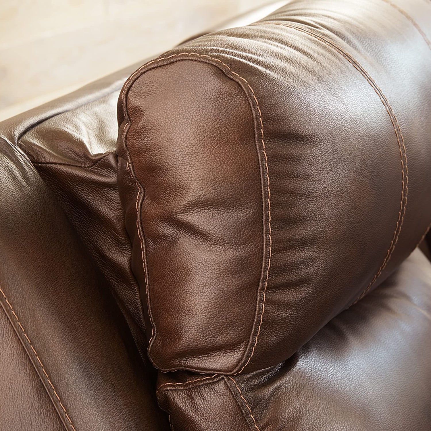 - NEUTRAL BROWN HUE: Chocolate brown leather blends well with other living room furniture. Adjustable headrest puts head and neck in best position for watching TV or reading even when you're reclining