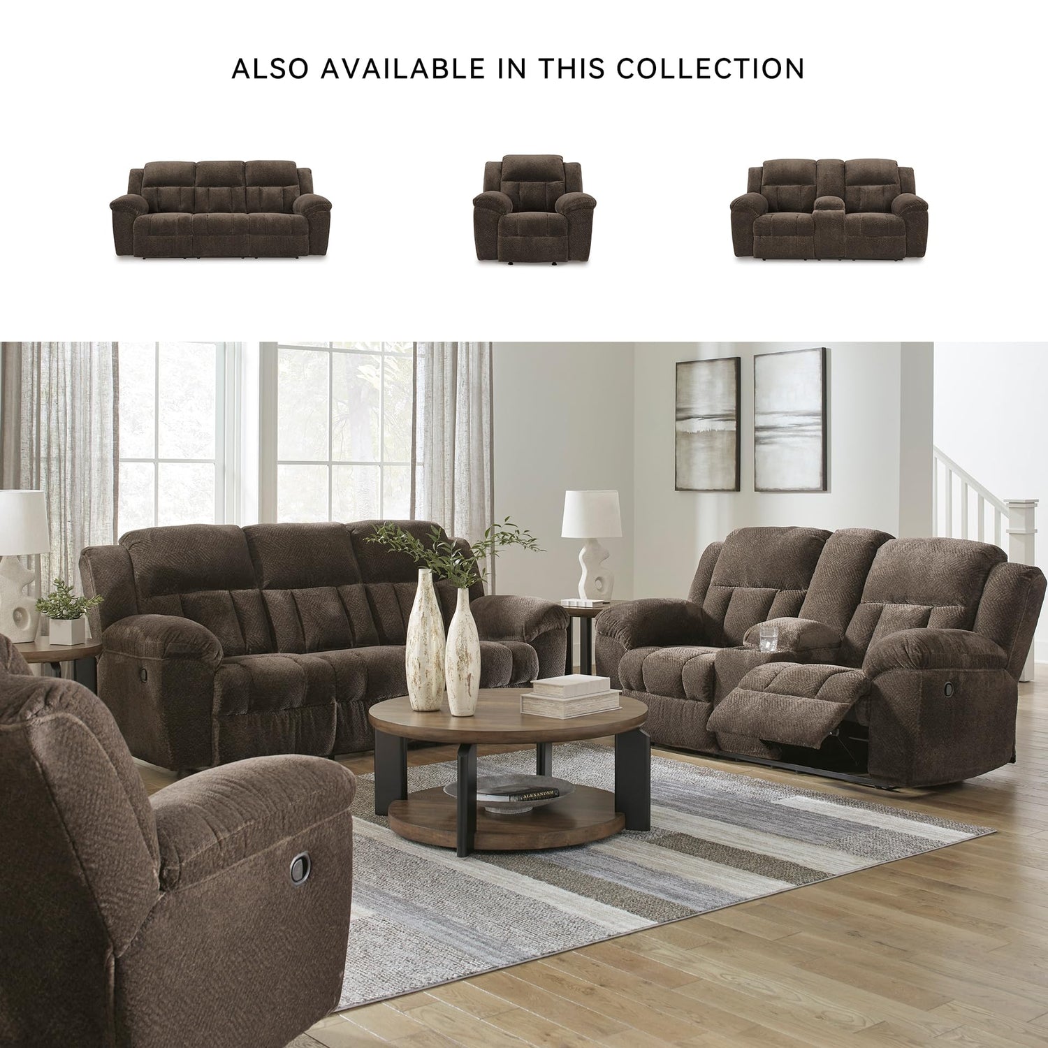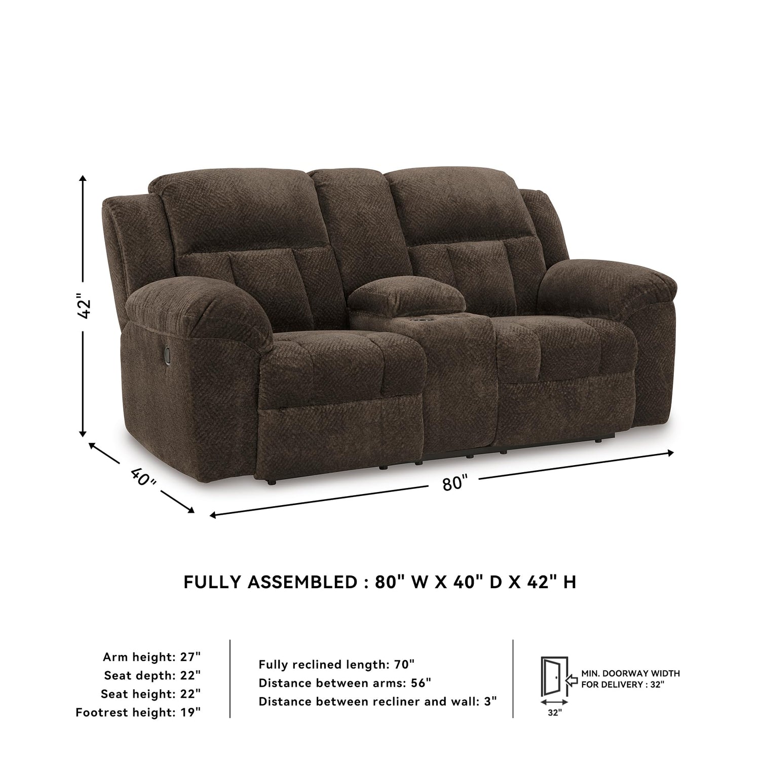 Signature Design by Ashley Frohn Modern Manual Double Reclining Loveseat with Console, Storage and Cup Holders, Dark Brown