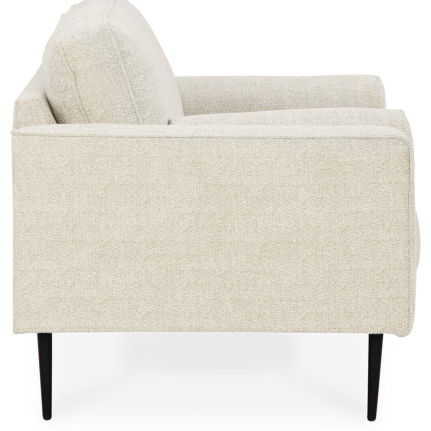 Details: Simple comfort meets modern function in this chair. An apt addition to apartments and other small spaces, the slim-profiled piece welcomes you with its cozy character. A subtle chevron pattern aon the cushions refresh the classic neutral hue, elevating the look while still suiting a variety of styles. Black accent legs add a dash of contemporary flair.