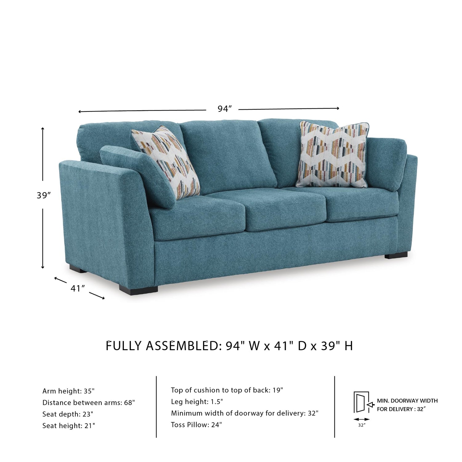 - DIMENSIONS: This item measures 94" W x 41" D x 39" H