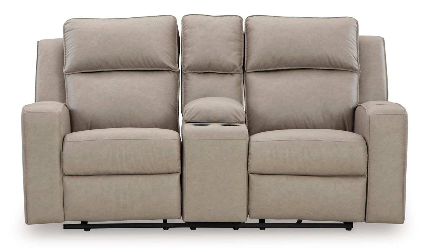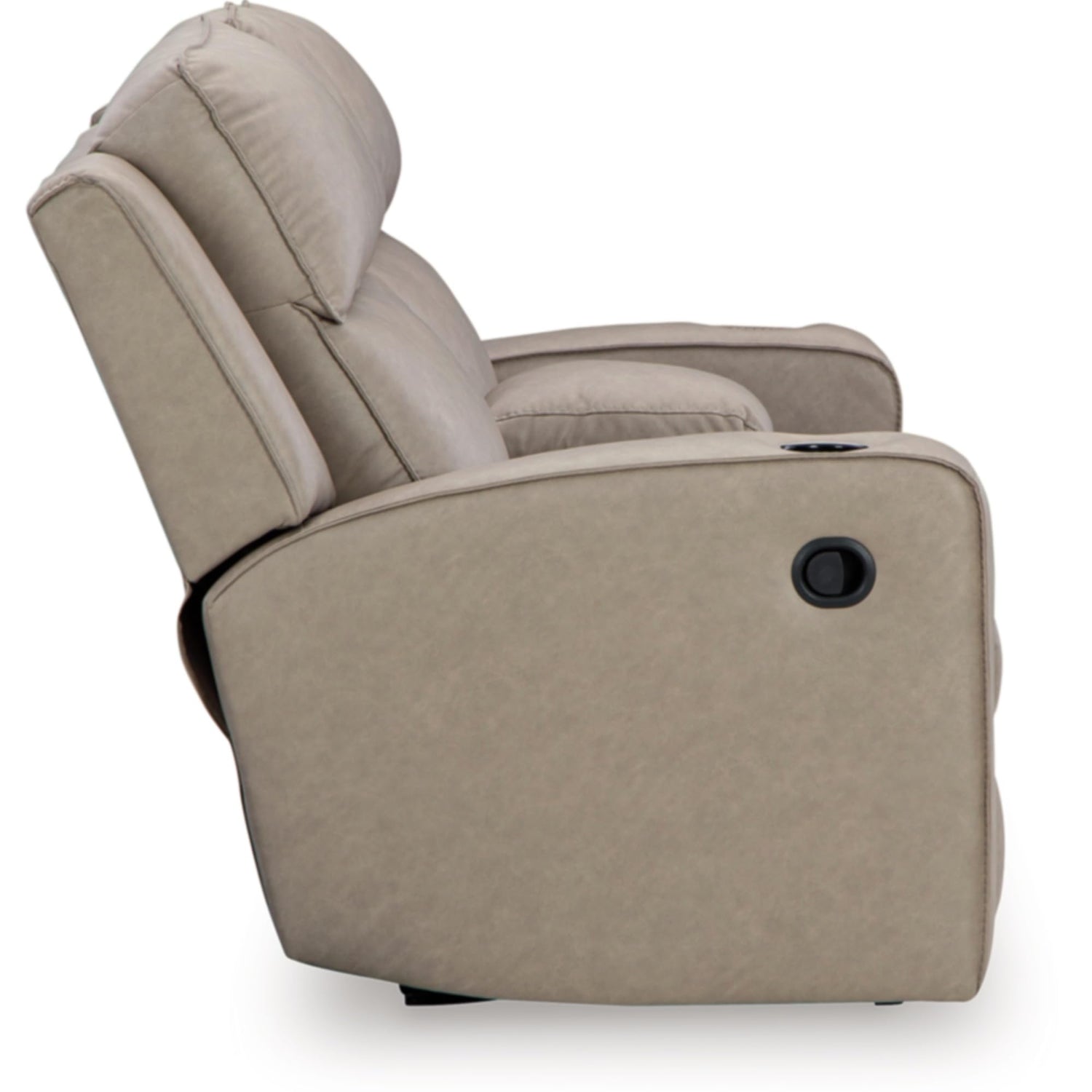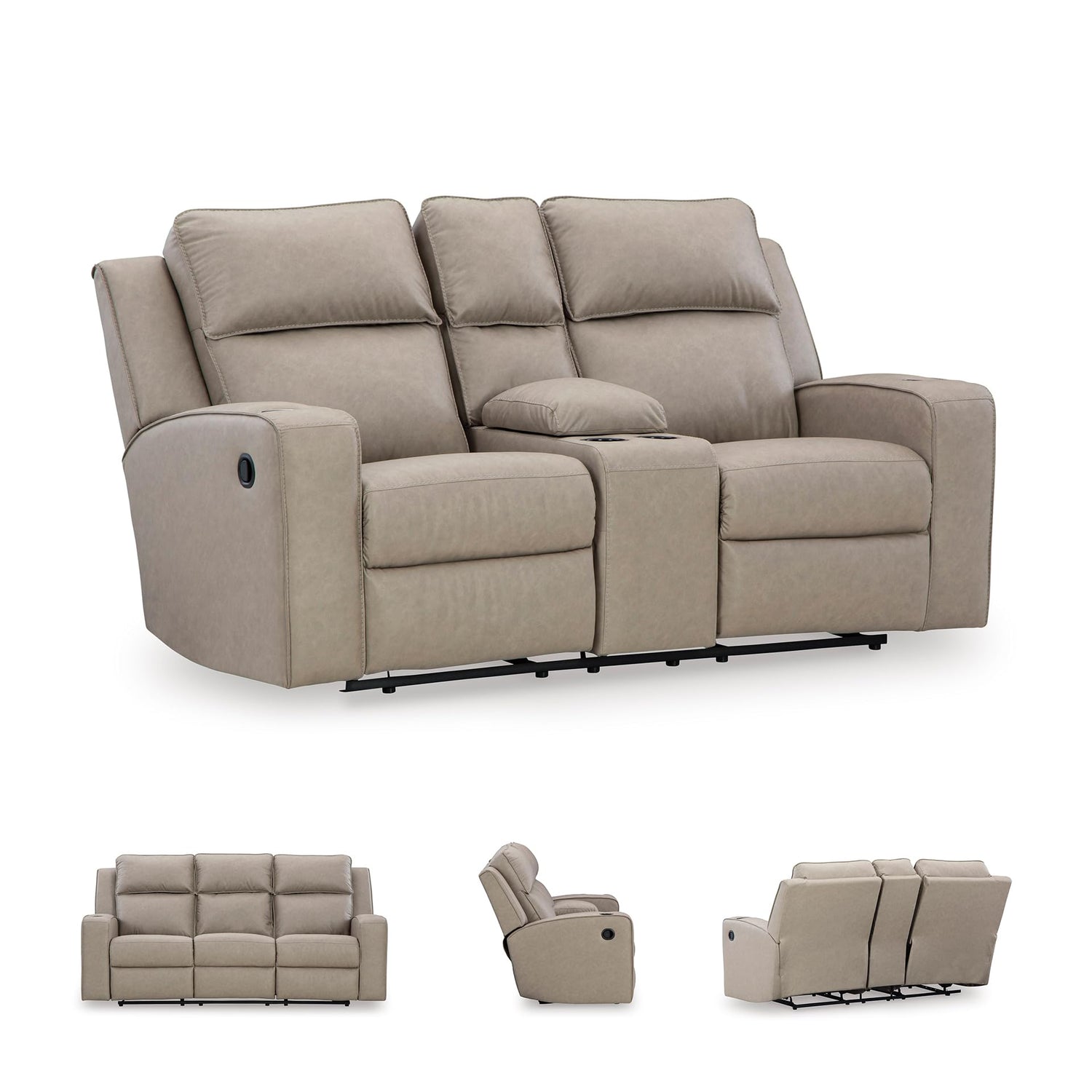 Signature Design by Ashley Lavenhorne Contemporary Faux Leather Manual Reclining Loveseat with Console and Cup Holders, Beige