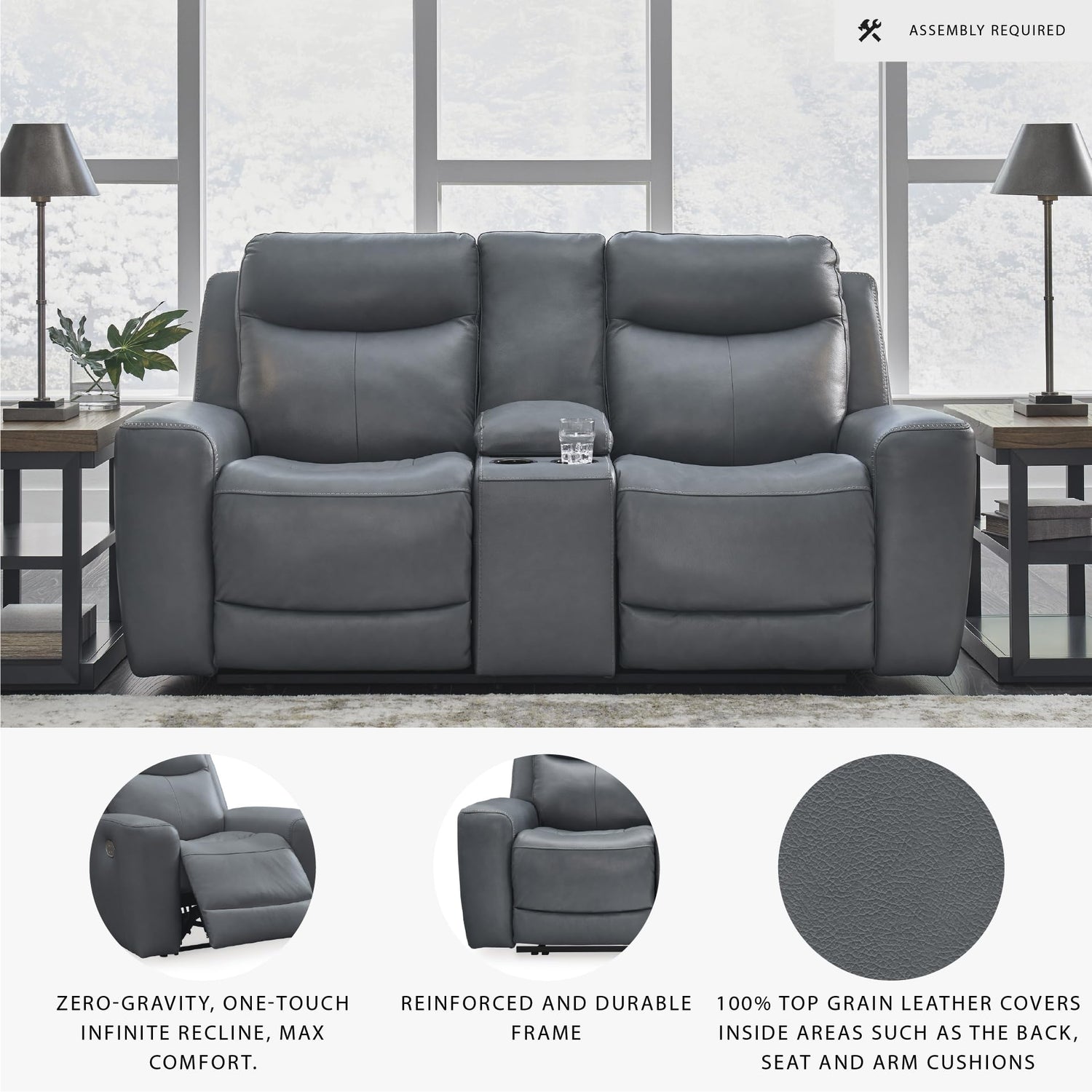 - POWER RECLINING LOVESEAT: A fresh look in comfort seating. If sleek and modern is your style, this reclinable couch with a plethora of power features is ready to deliver at the touch of a button