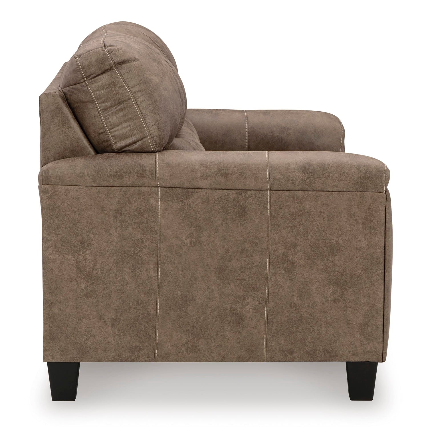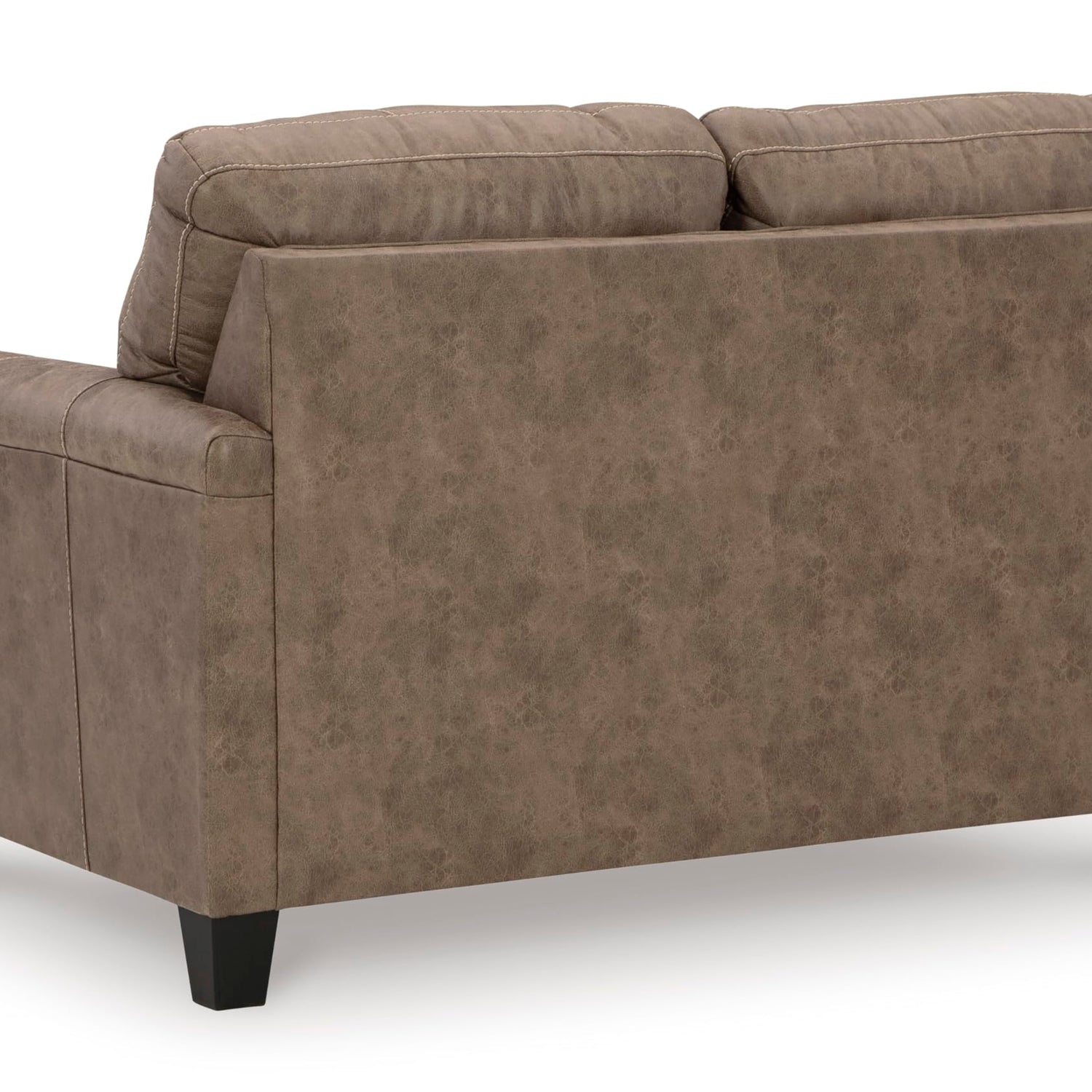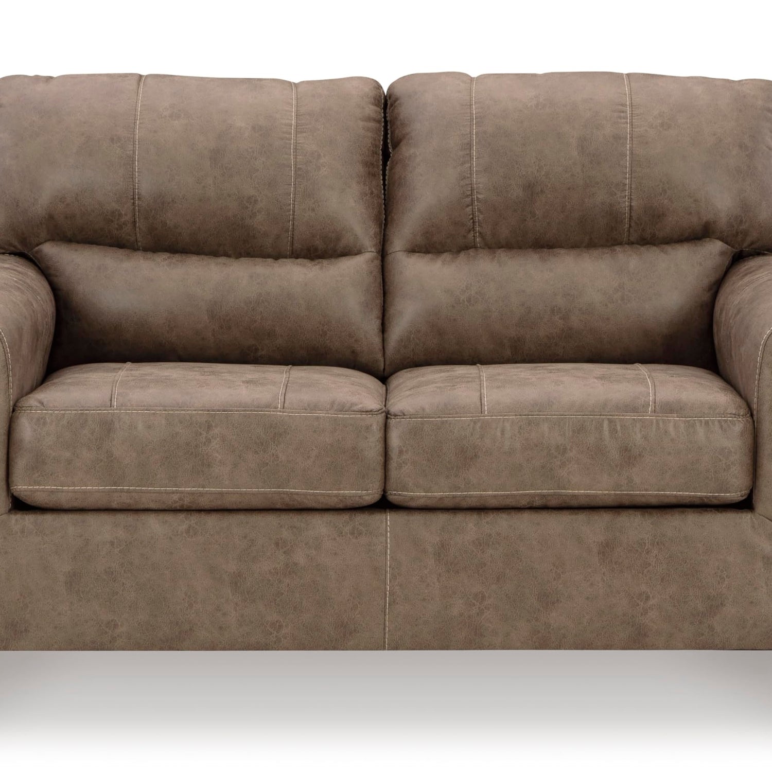 Details: This decidedly modern loveseat proves less is more, bringing simply inviting style to your living room. Take the guesswork out of decorating—its warm faux leather has a universal appeal, pairing with casual and contemporary aesthetics alike. All you need to do is sit back, relax and enjoy the comforts of home. Signature Design by Ashley is a registered trademark of Ashley Furniture Industries, Inc.