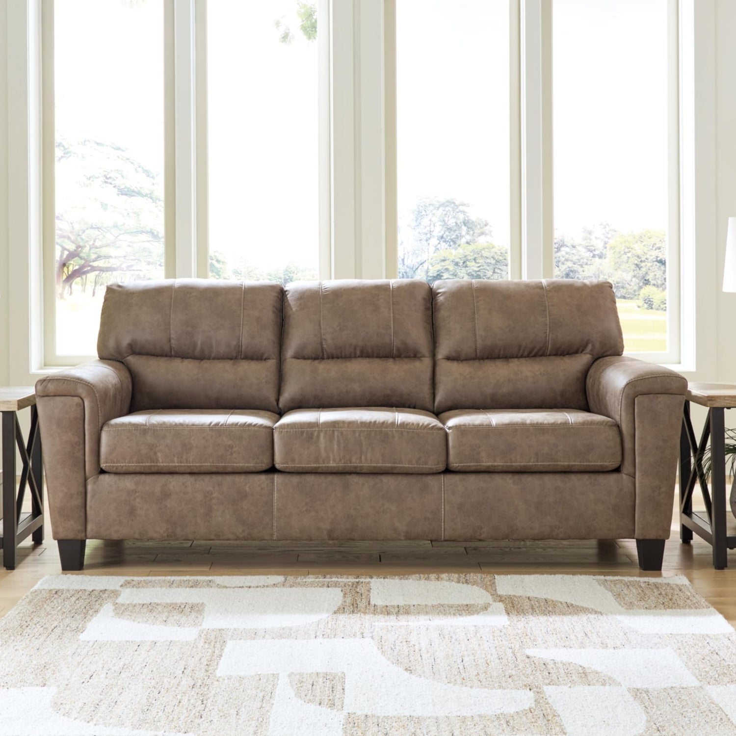 Details: This decidedly modern sofa sleeper proves less is more, bringing simply inviting style to your living room. Take the guesswork out of decorating—its warm faux leather has a universal appeal, pairing with casual and contemporary aesthetics alike. And when friends and family drop by, it converts to a convenient sleeper. All you or your guests need to do is sit back, relax and enjoy the comforts of home. Signature Design by Ashley is a registered trademark of Ashley Furniture Industries, Inc.
