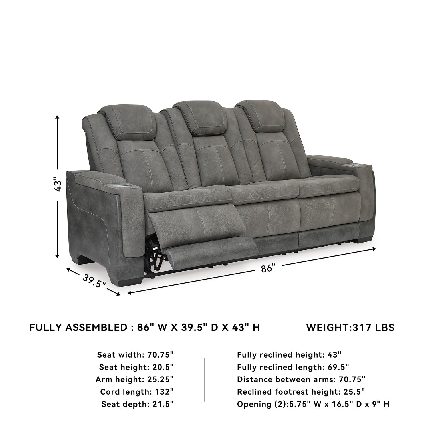 - POWER RECLINING SOFA: This sleek, ultra-modern sofa has it all. With designer looks and head-to-toe comfort, it has the upscale look of leather at a scaled-down faux leather price