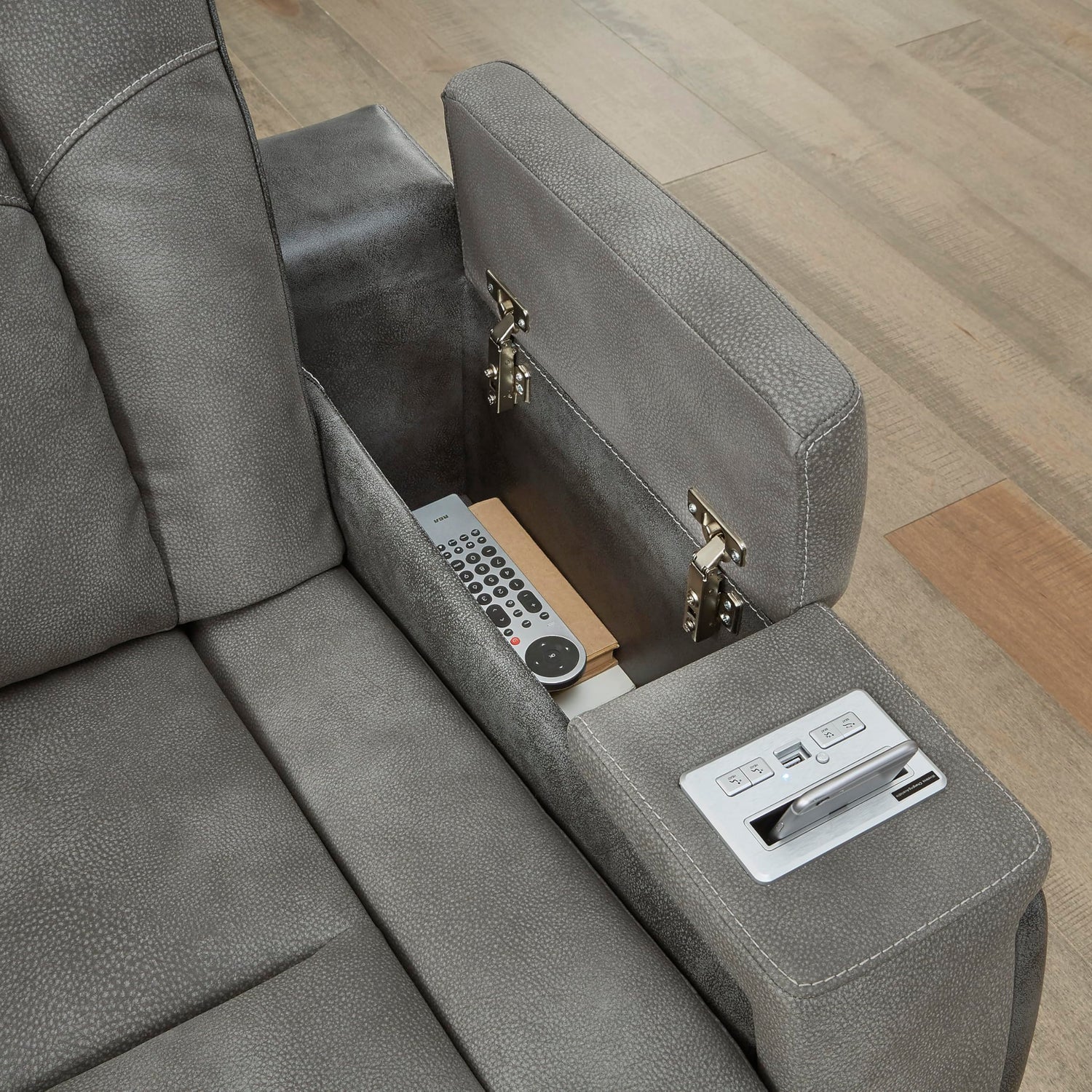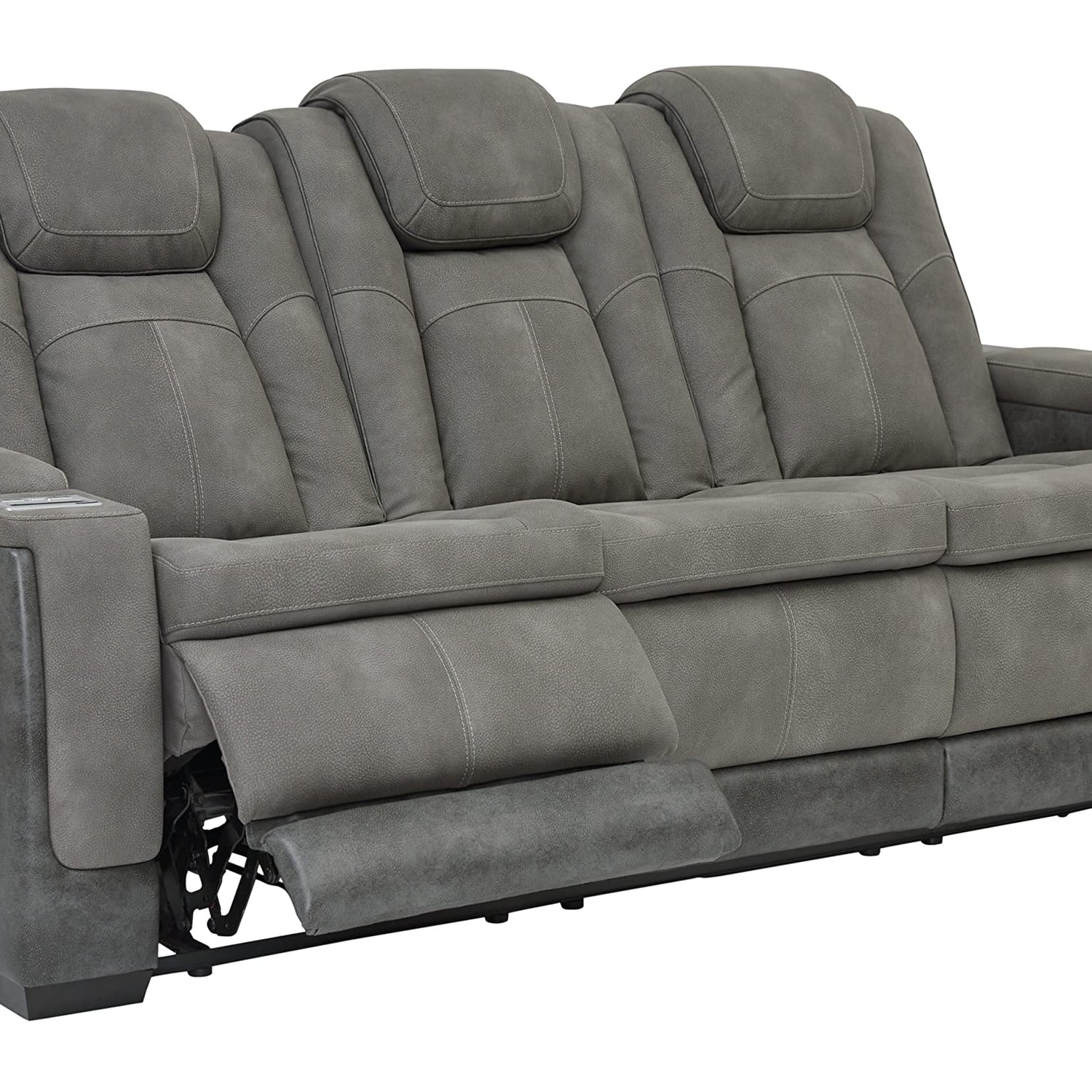 Signature Design by Ashley Next-Gen DuraPella Modern Faux Leather Power Reclining Sofa with Adjustable Headrest, Gray