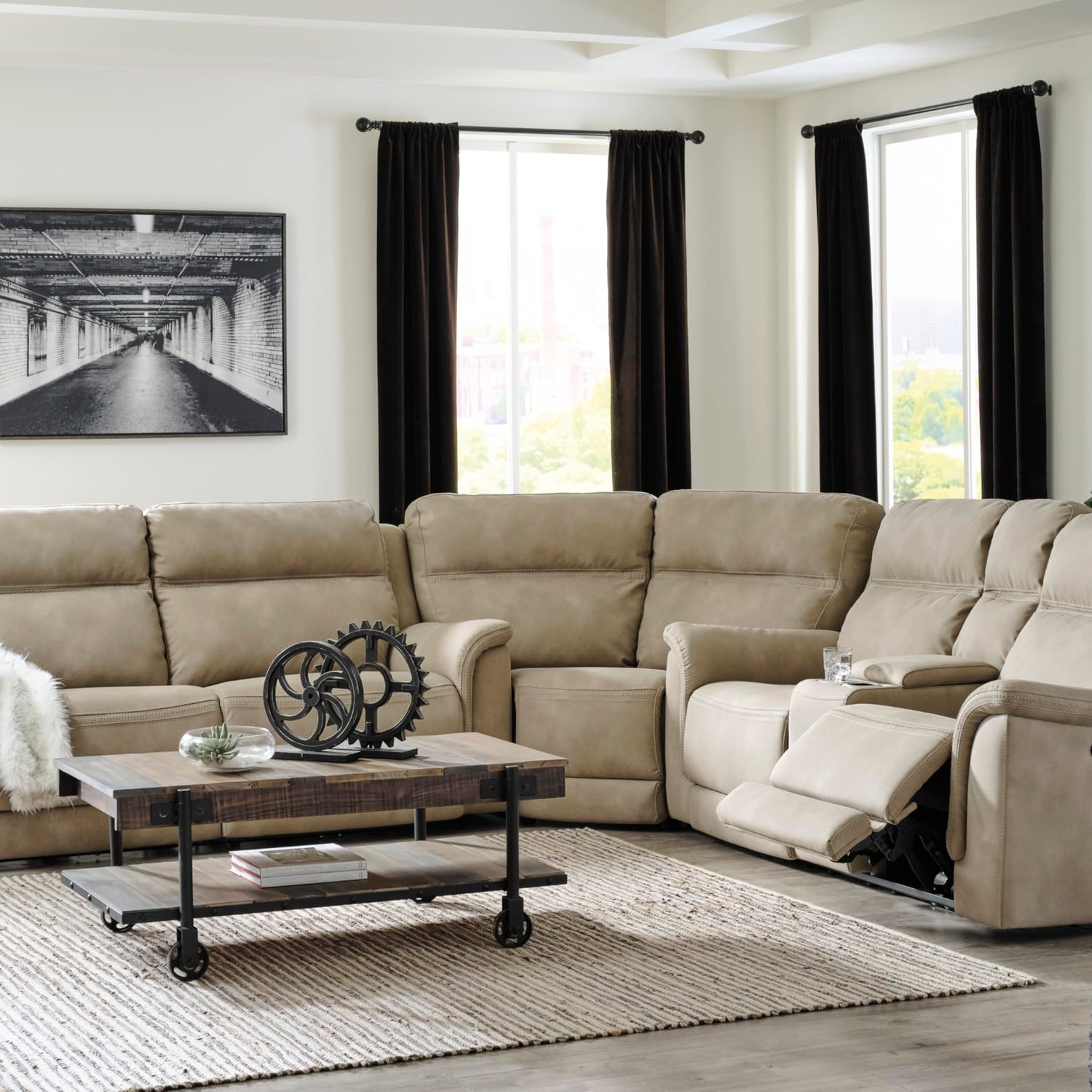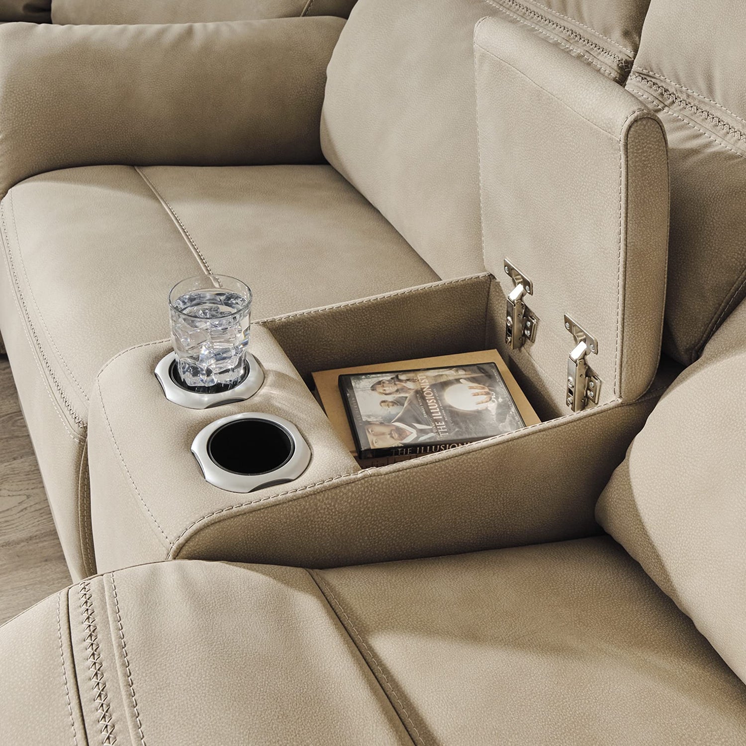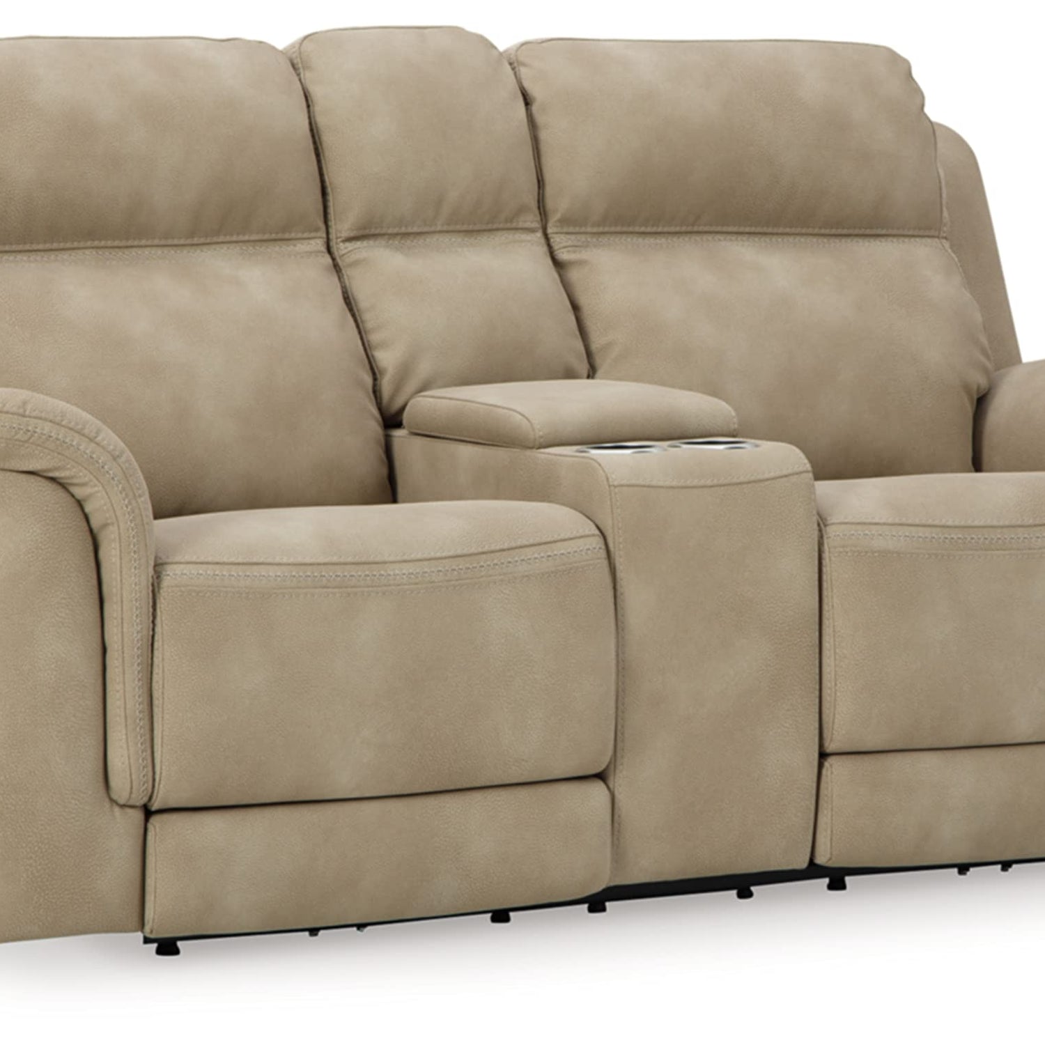 Signature Design by Ashley Next-Gen DuraPella Power Reclining Loveseat with Center Console and Adjustable Headrest, Beige