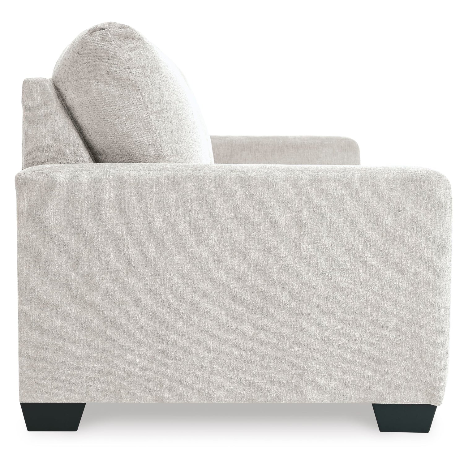 • QUALITY CRAFTED: Built with a sturdy corner-blocked frame. Polyester upholstery covers attached back and loose seat cushions. Exposed feet with faux wood finish