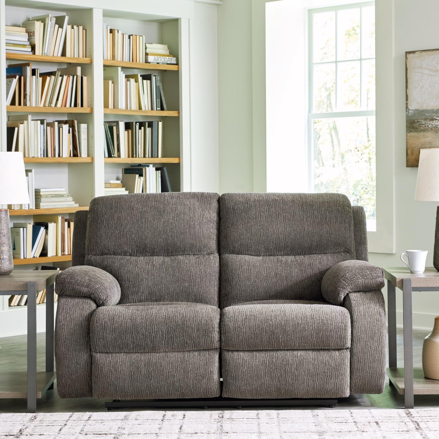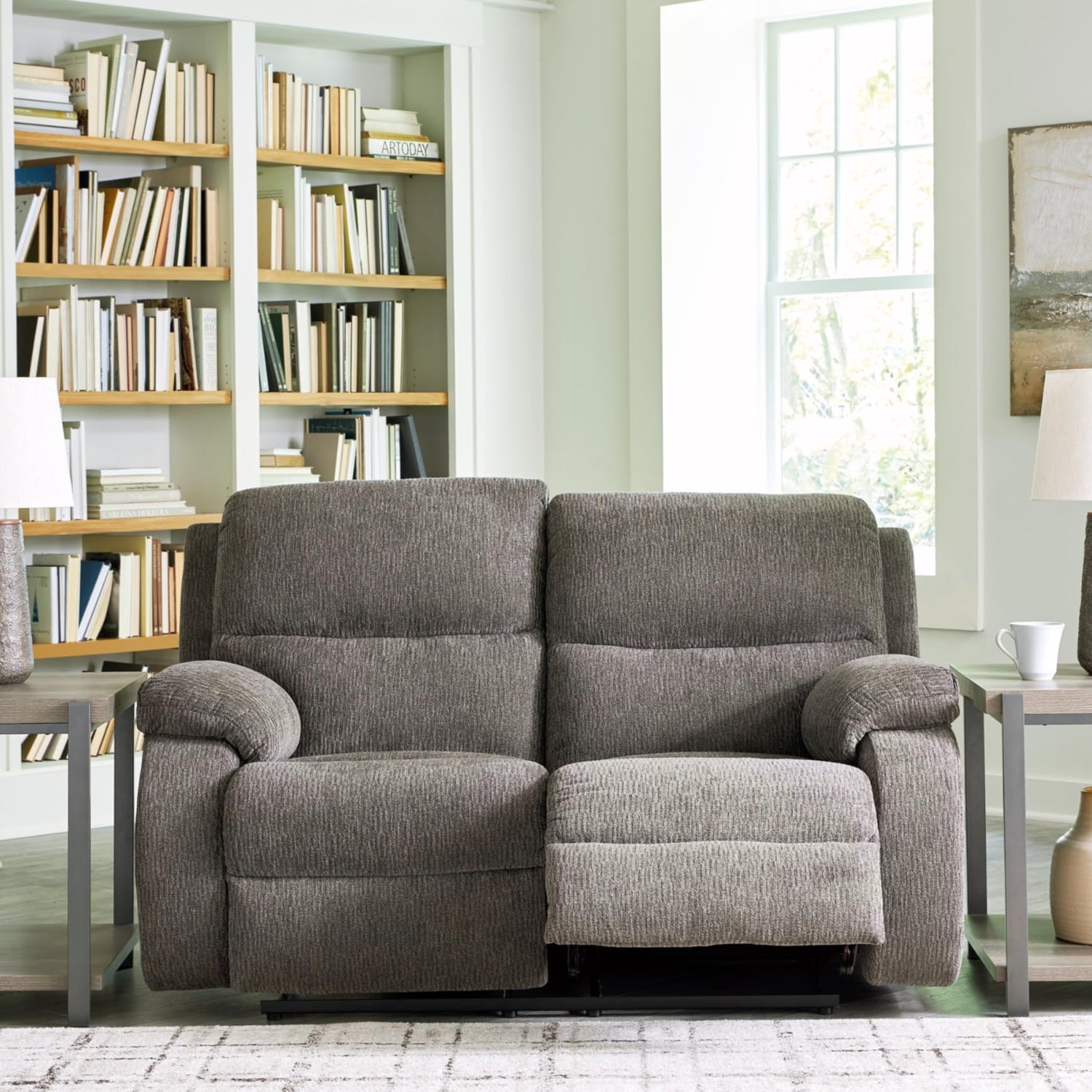 - STYLISH AND COMFY: Its contemporary bustle back and versatile hue bring chic comfort to your living room. When you’re ready to recline, the simple pull tab motion has you ready to lounge in no time