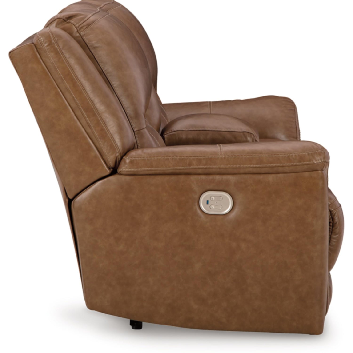 Signature Design by Ashley Trasimeno Contemporary Leather Match Power Reclining Loveseat with Console, Adjustable Headrest and USB Ports, Dark Brown