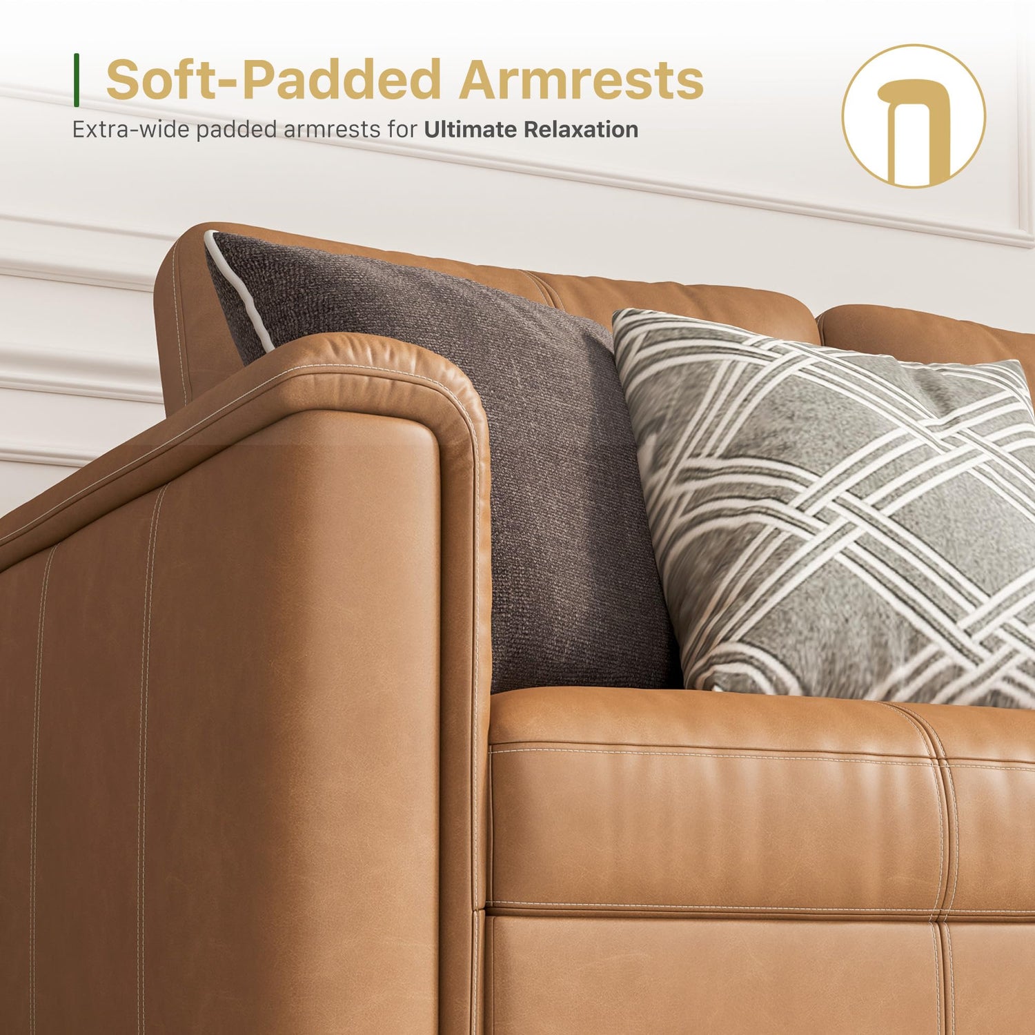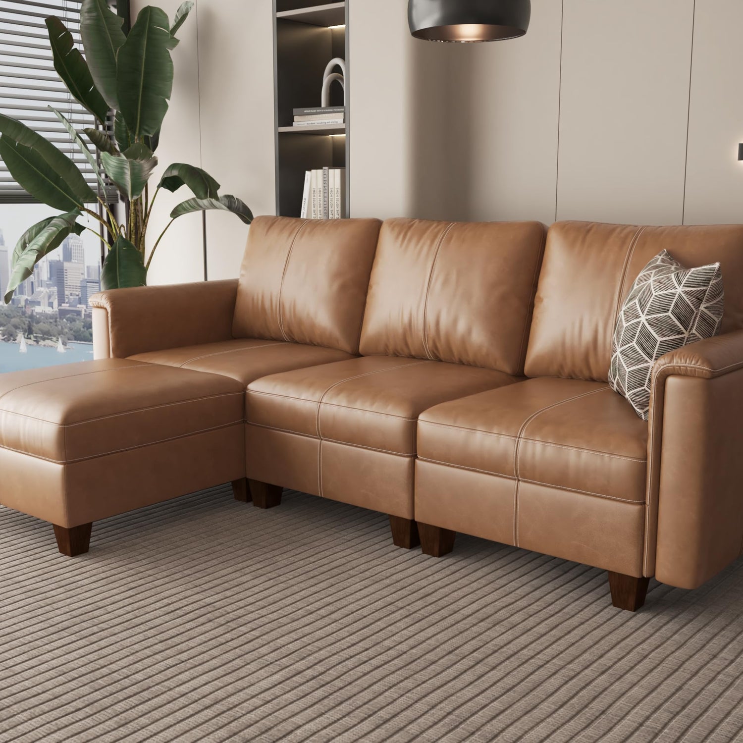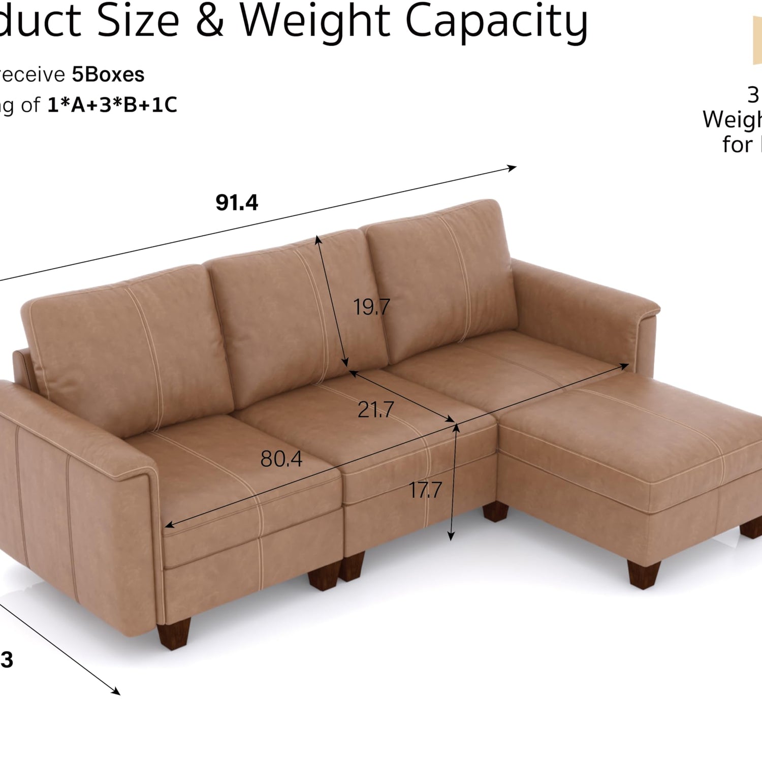 SITJOY Faux Leather 4 Seat L Shape Modular Sofa with Storage Ottoman, L Shaped Sectional Couches for Living Room, 92 inch Width, Brown