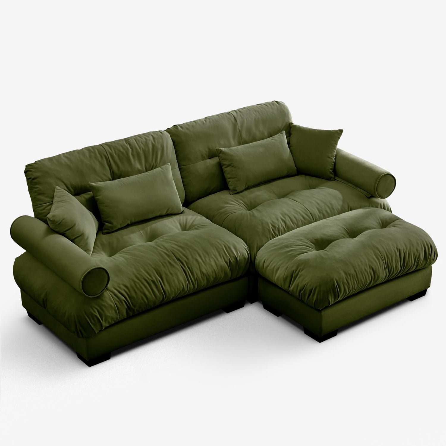 SoarTalent 93.7" Modern Oversized Modular Sectional Sofa 2-Seater Loveseat L-Shaped Cloud Couch with Ottoman,Pillows and Overthick Cushion for Living Room,Home Theater,Apartment,Velvet,Olive Green