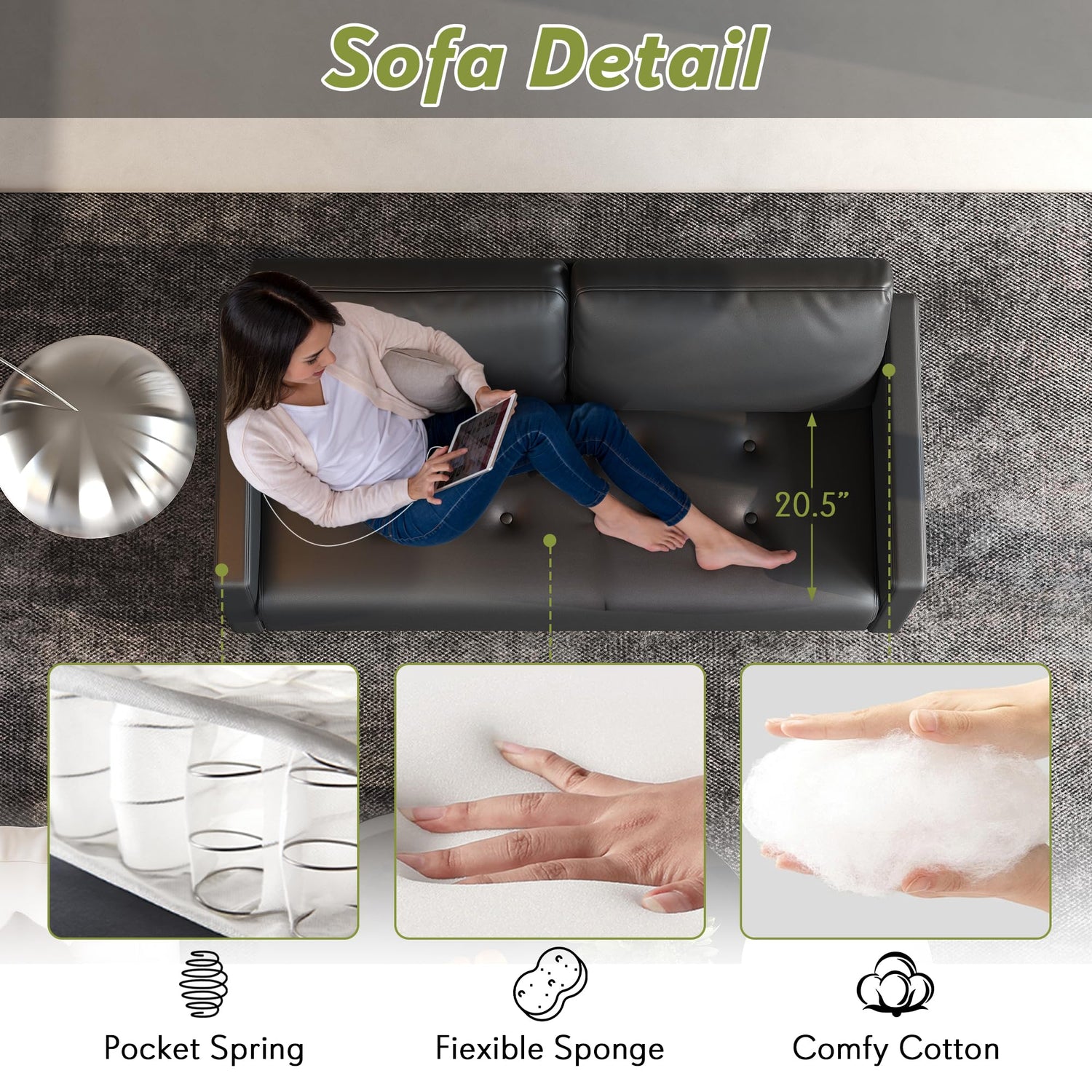 - Ergonomic Comfort with USB Charging: After a long day, you deserve a sofa that supports both your body and your lifestyle. This faux leather couch is built with high-resilience foam cushions and inner coil springs for exceptional comfort and support—whether you’re relaxing with a book or dealing with neck and shoulder strain. The thickened backrest follows ergonomic angles for lasting ease. Plus, the built-in USB ports let you charge two devices at once, so you can watch movies or scroll your phone without worrying about running out of battery.