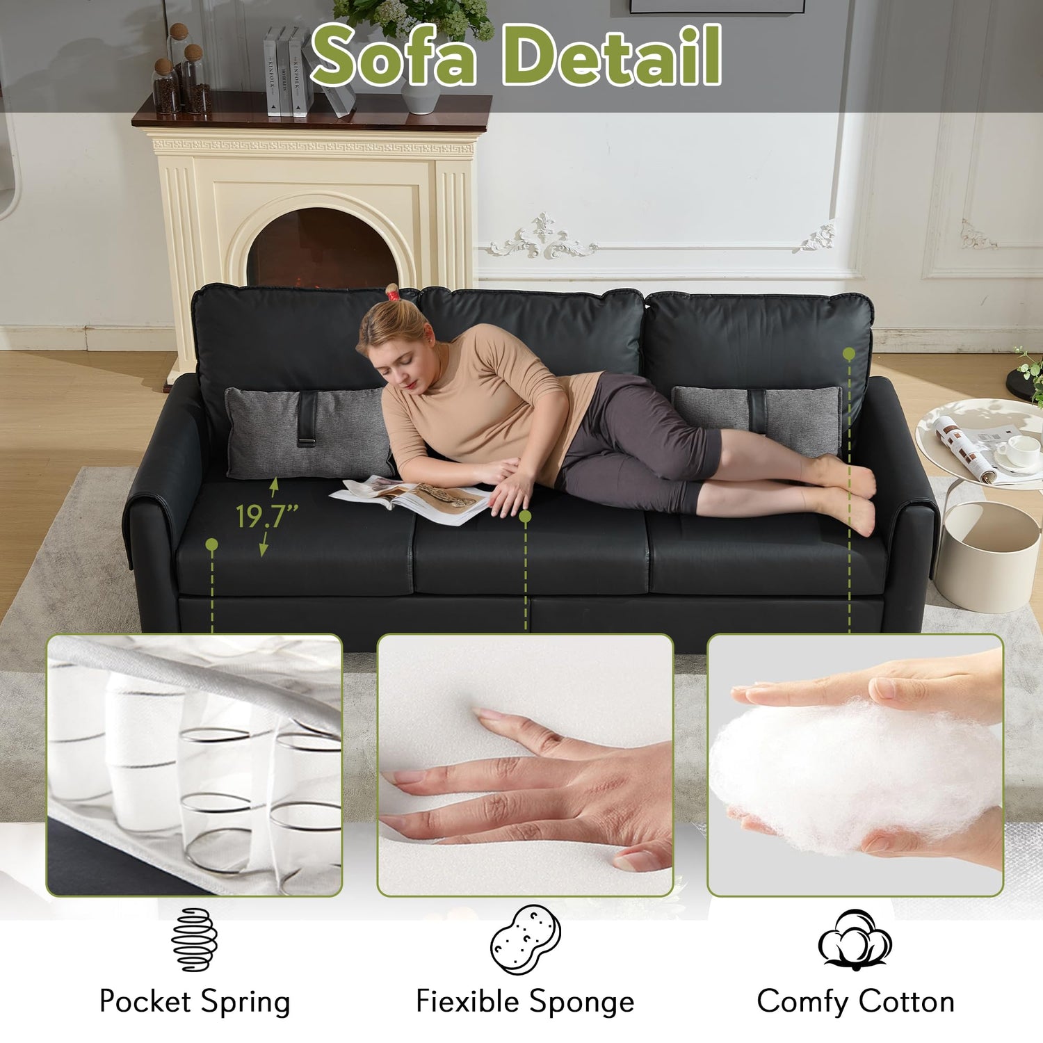 • Enhanced Comfort: Designed for ultimate relaxation, the office couch features high-resilience foam combined with soft plush cotton filling for superior cushioning. An added lumbar support offers exceptional lower-back comfort, while the heightened backrest provides full spinal alignment, ideal for long periods of sitting.