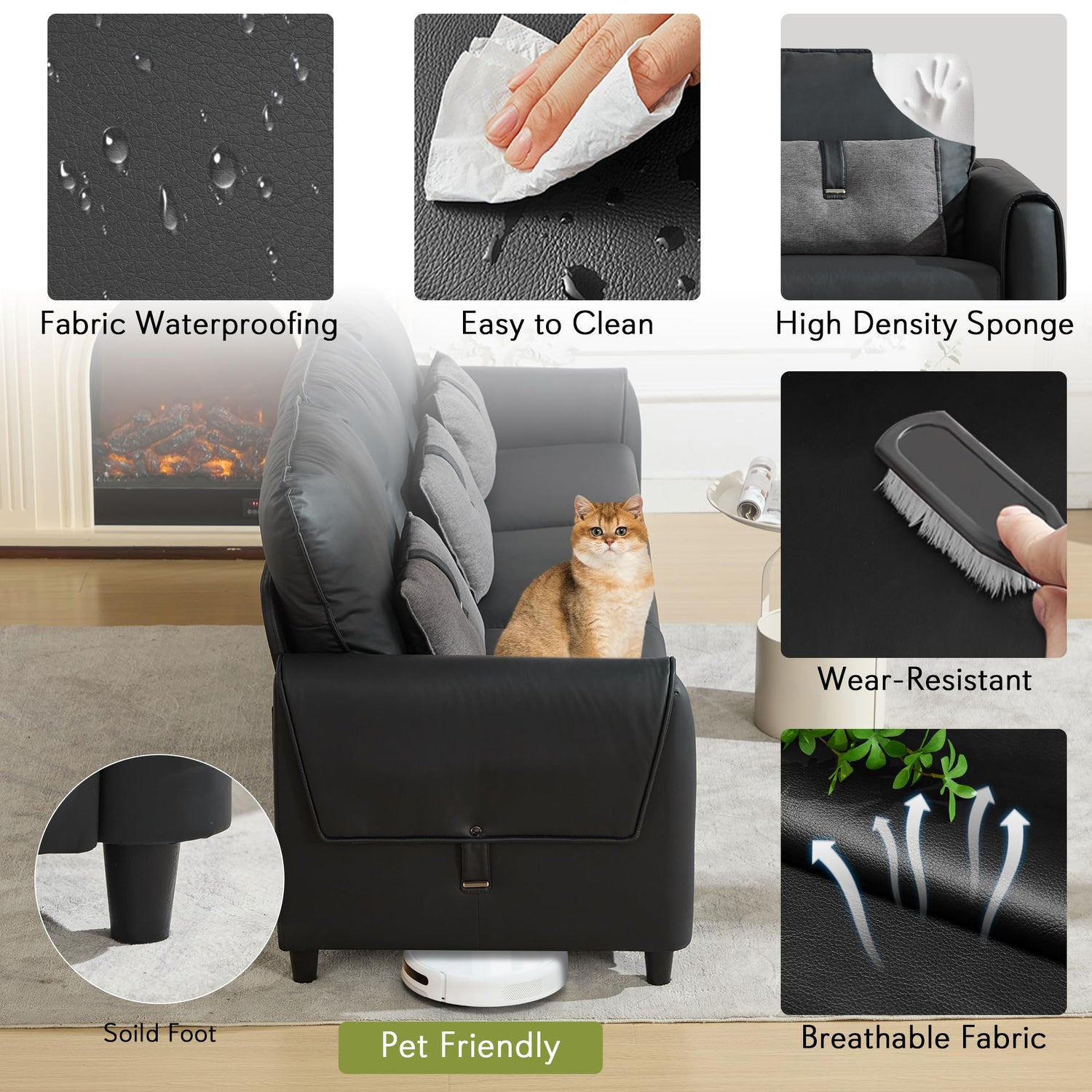 • Premium Pet-Friendly Material: Crafted with wear-resistant, breathable, and easy-to-clean faux leather, this faux leather sofa is both practical and luxurious. The pet-friendly fabric offers great durability against scratches and spills, keeping your couch looking new with minimal maintenance.