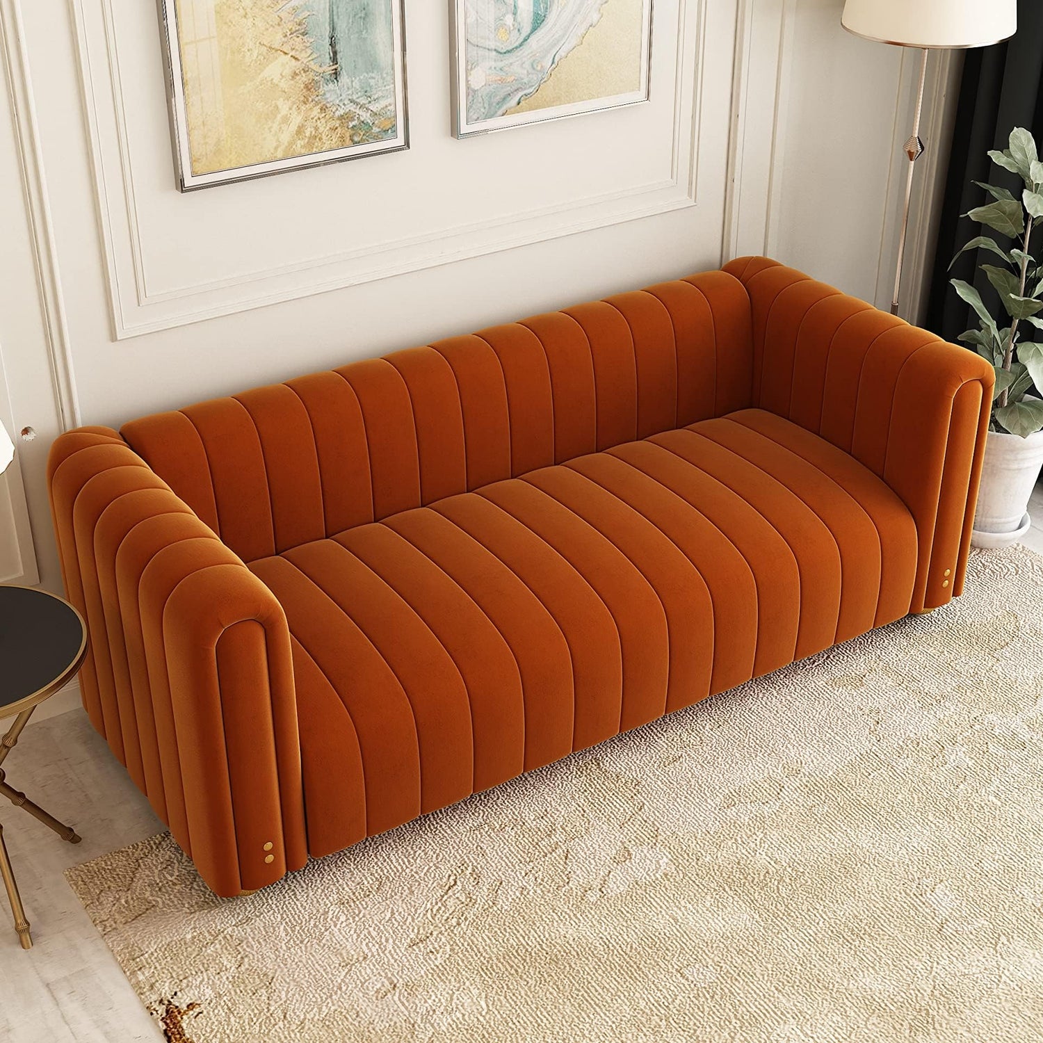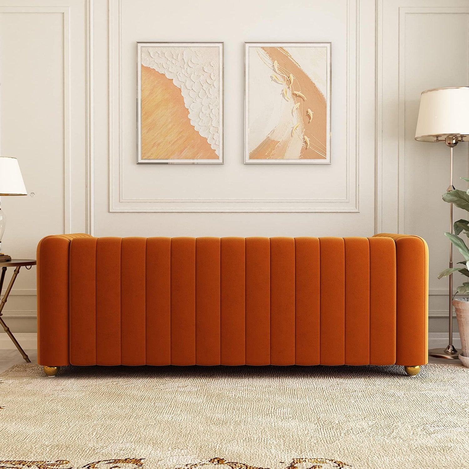 STORFENBOR 81" Orange Velvet Sofa Mid Century Modern Couch for 3 Person Chesterfield Tufted Velvet Couches for Living Room Apartment Bedroom Office