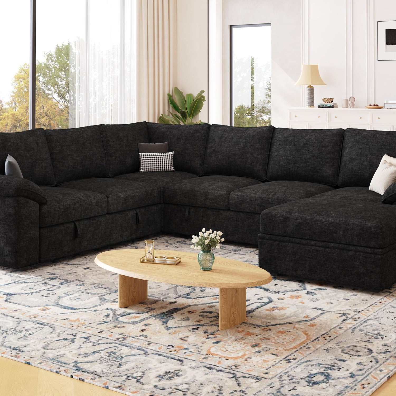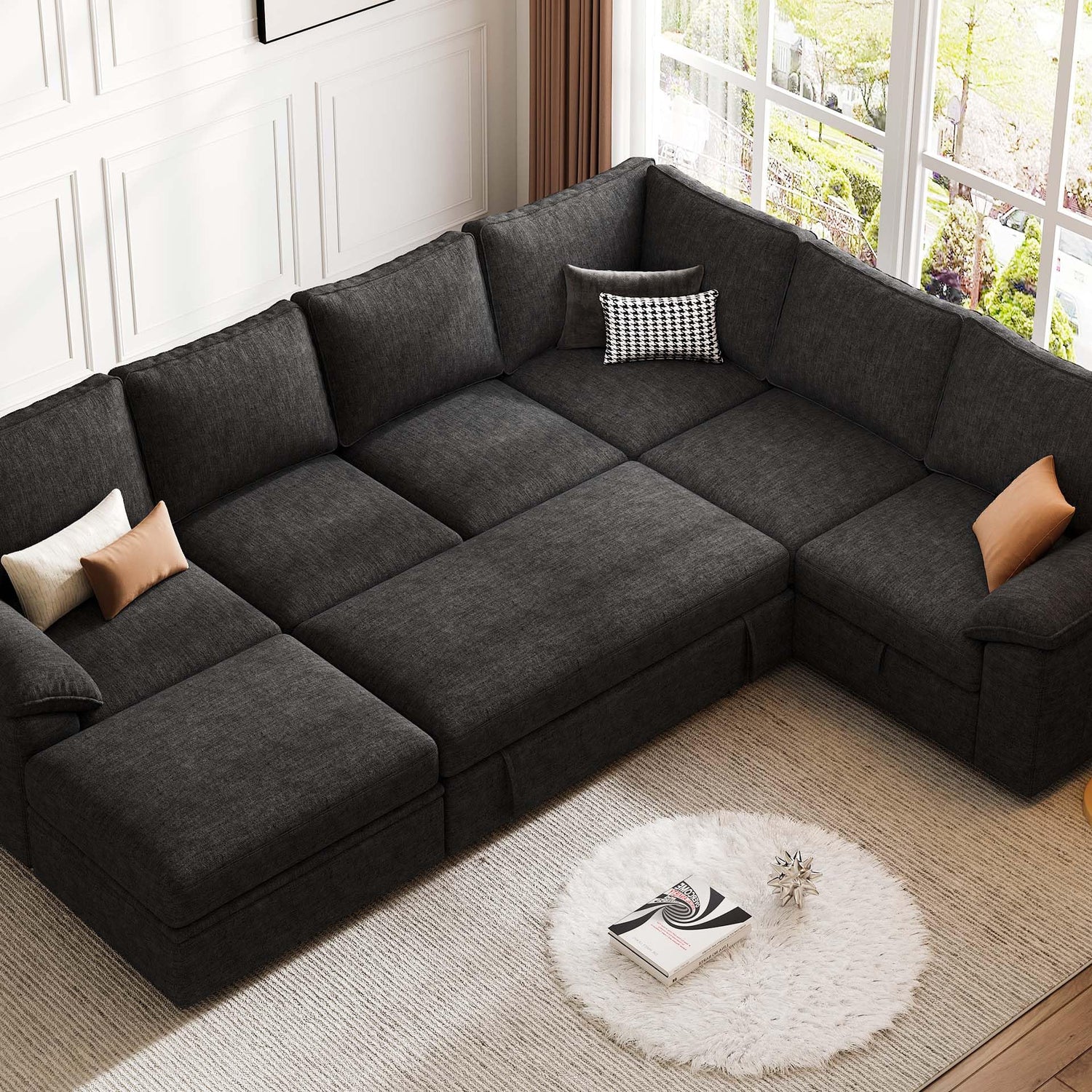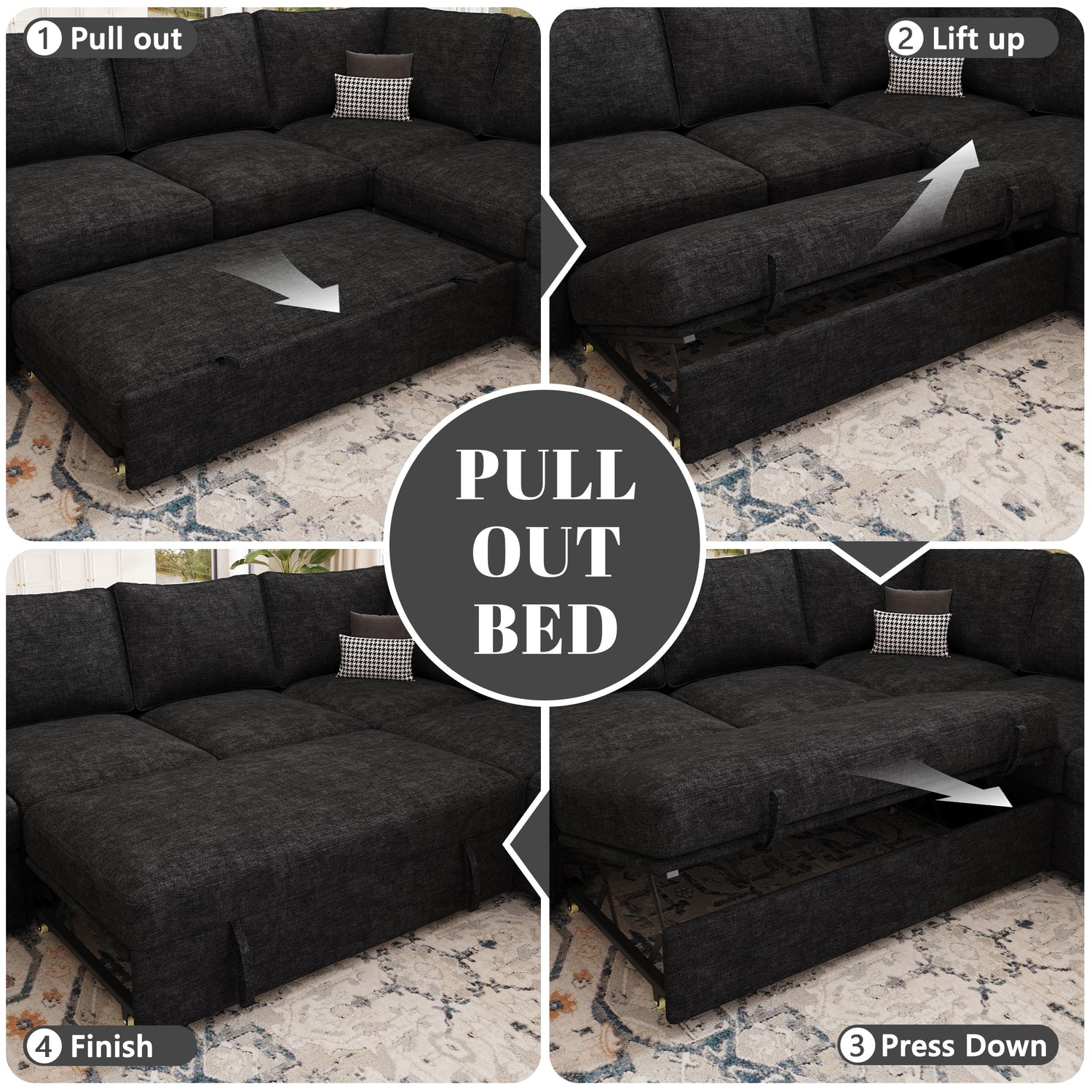 SUAWY 108 Inch Modular Sectional Sofa with Pull Out Bed, U Shaped 7 Seat Sectional Sleeper Sofa with Storage, Sectional Couches for Living Room,Cloud Modular Couch, Removable Sofa Cover, Black