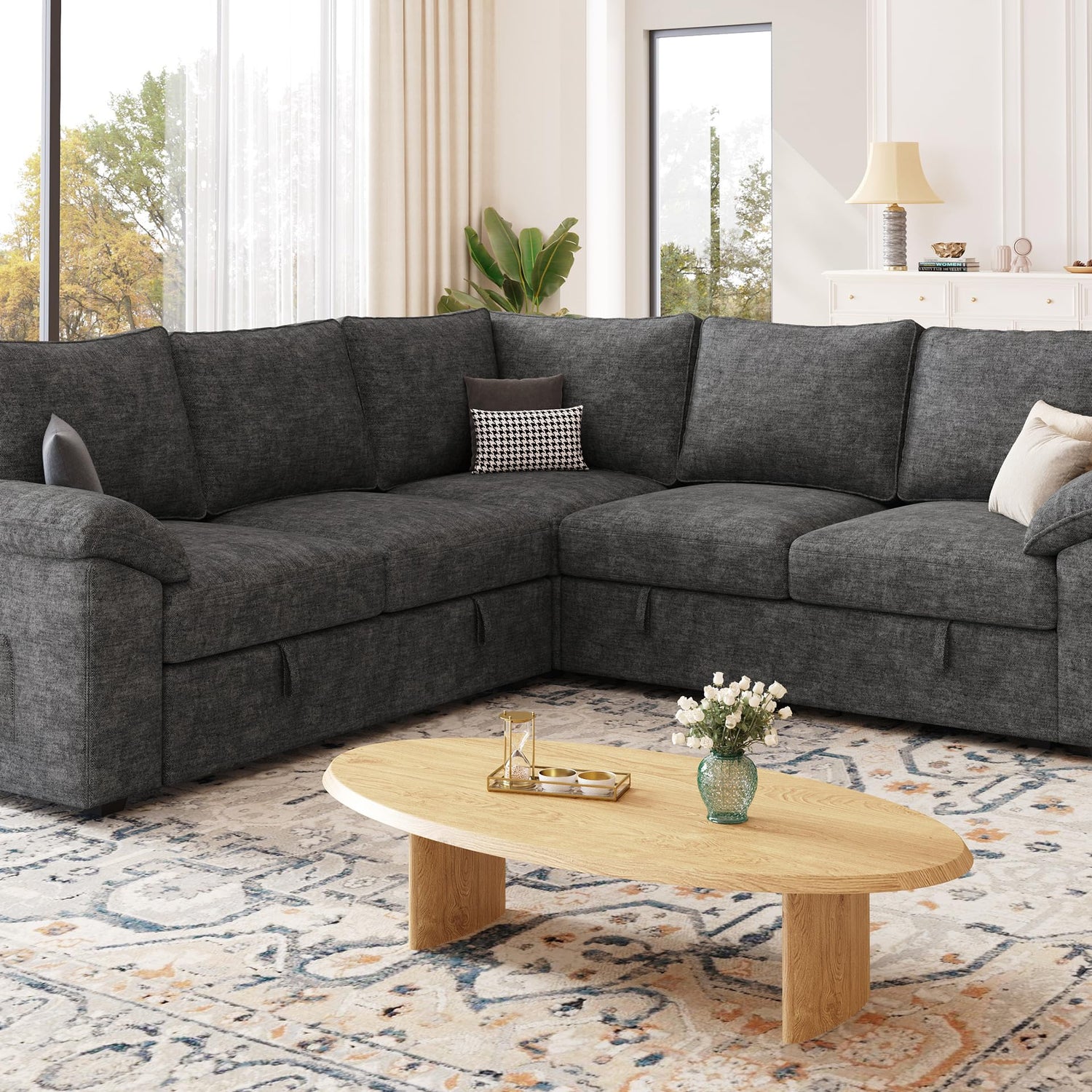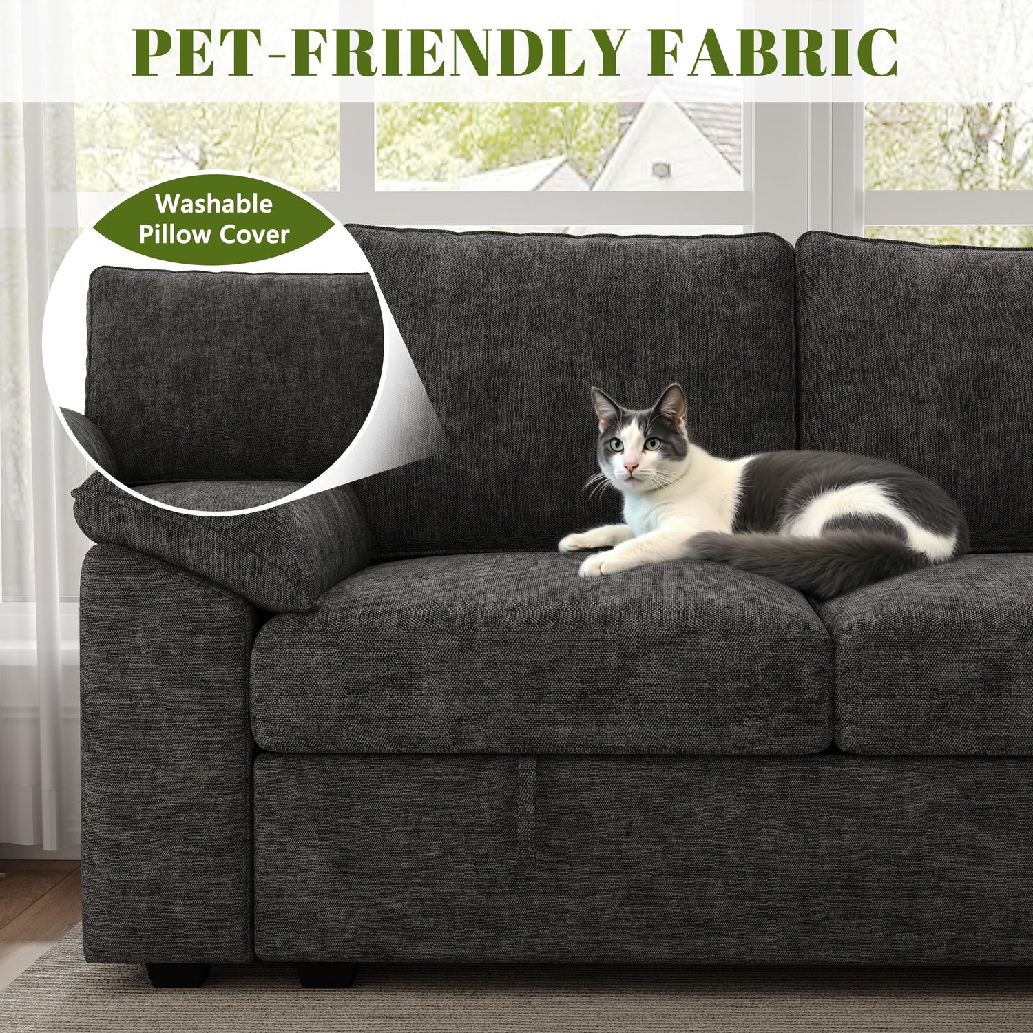 SUAWY 85 Inch Modular Sectional Sofa with Pull Out Bed,L Shaped 5 Seat Sectional Sleeper Sofa with Storage,Sectional Couches for Living Room,Cloud Modular Couch,Removable Sofa Cover,Dark Grey