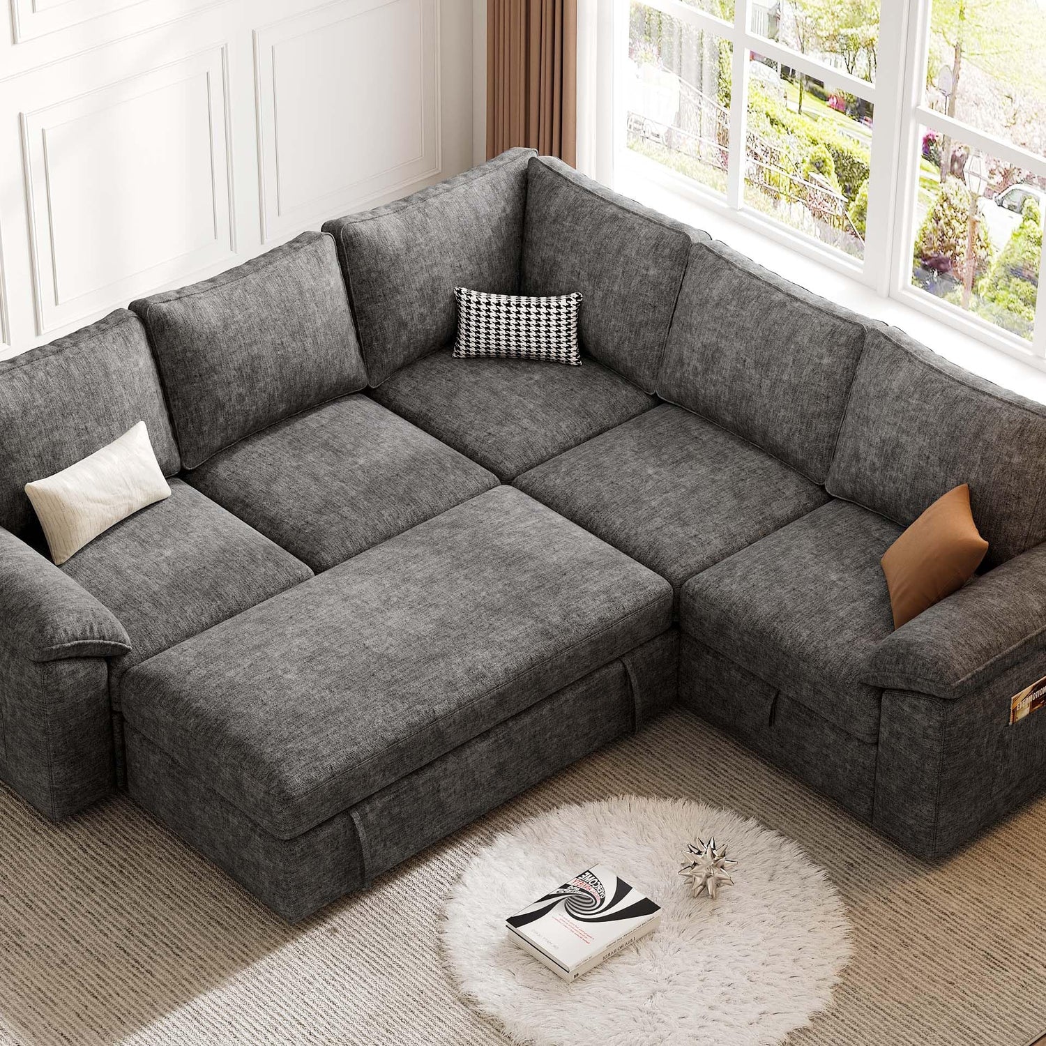 - Pull Out Sleeper Sofa: Easily convert the sofa into a bed by simply pulling it. The Howjoe modular sofa couch comes in dark gray, beige, light gray and black, making it perfect for transforming any room into a functional guest space