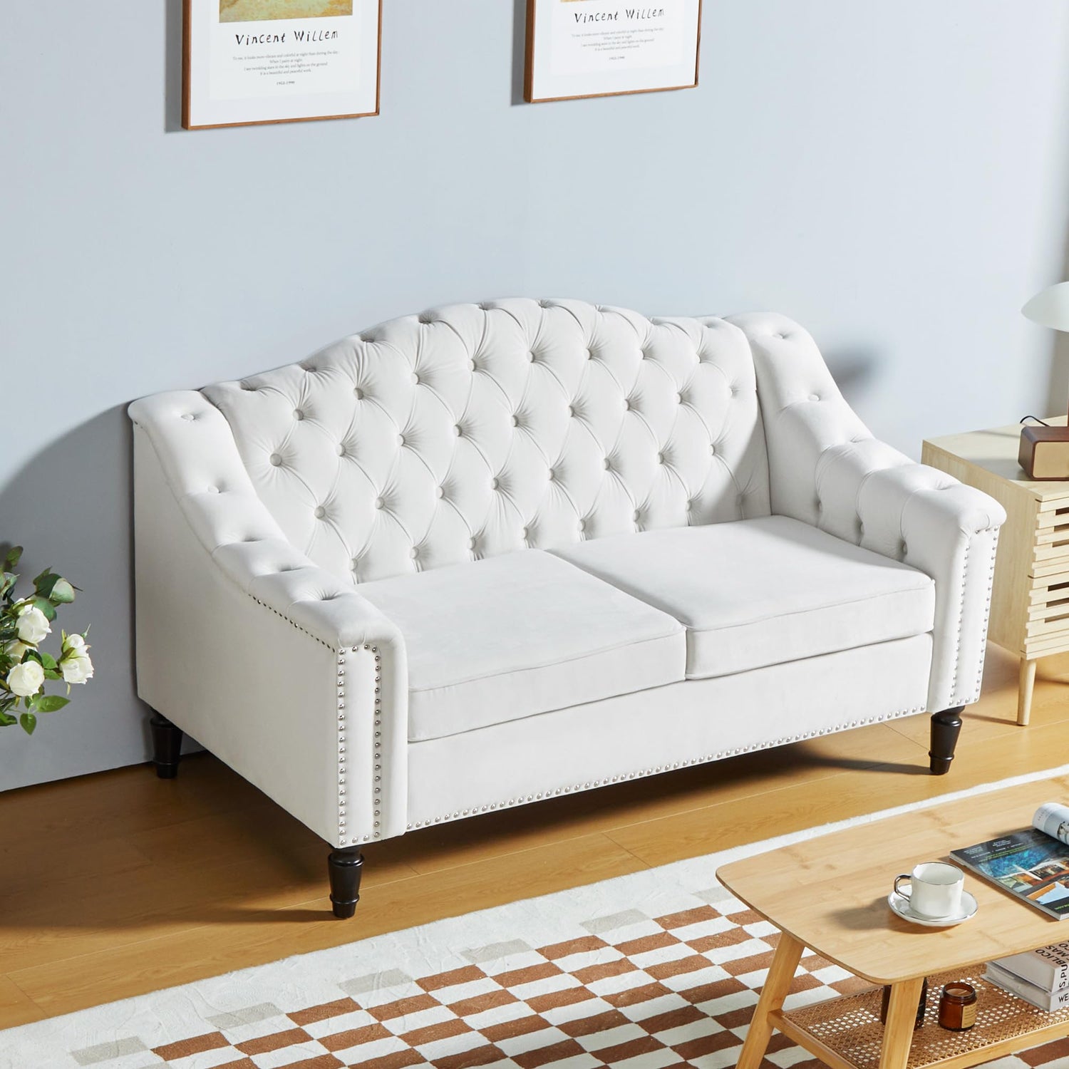 SUJOUCRAFT Chesterfield Camelback Chair & Loveseat, Living Room Soft Fabric Sofa Couch Set, Mid-Century Elegant Sectional Couches with Deep Seat Tufted Backrest (Velvet-Camelback-1+2, White)