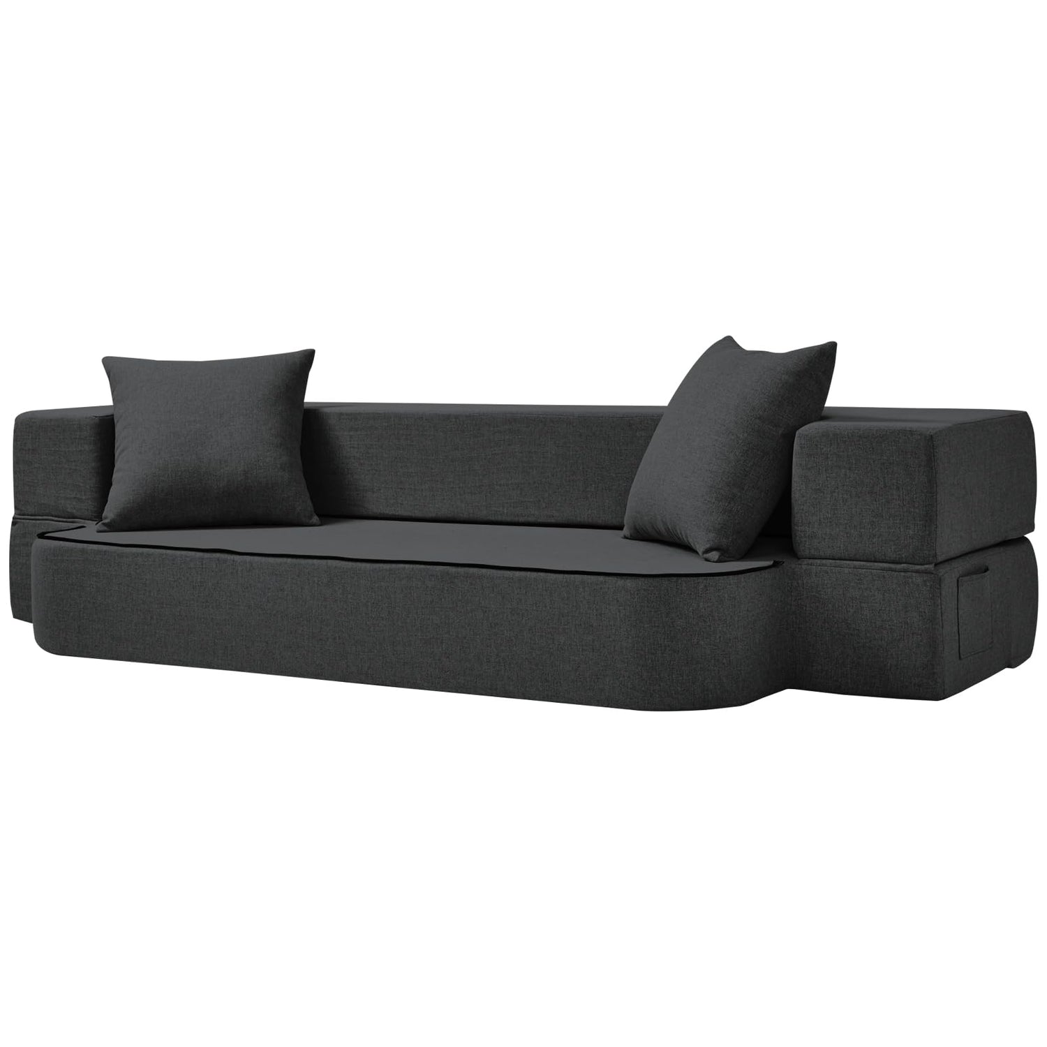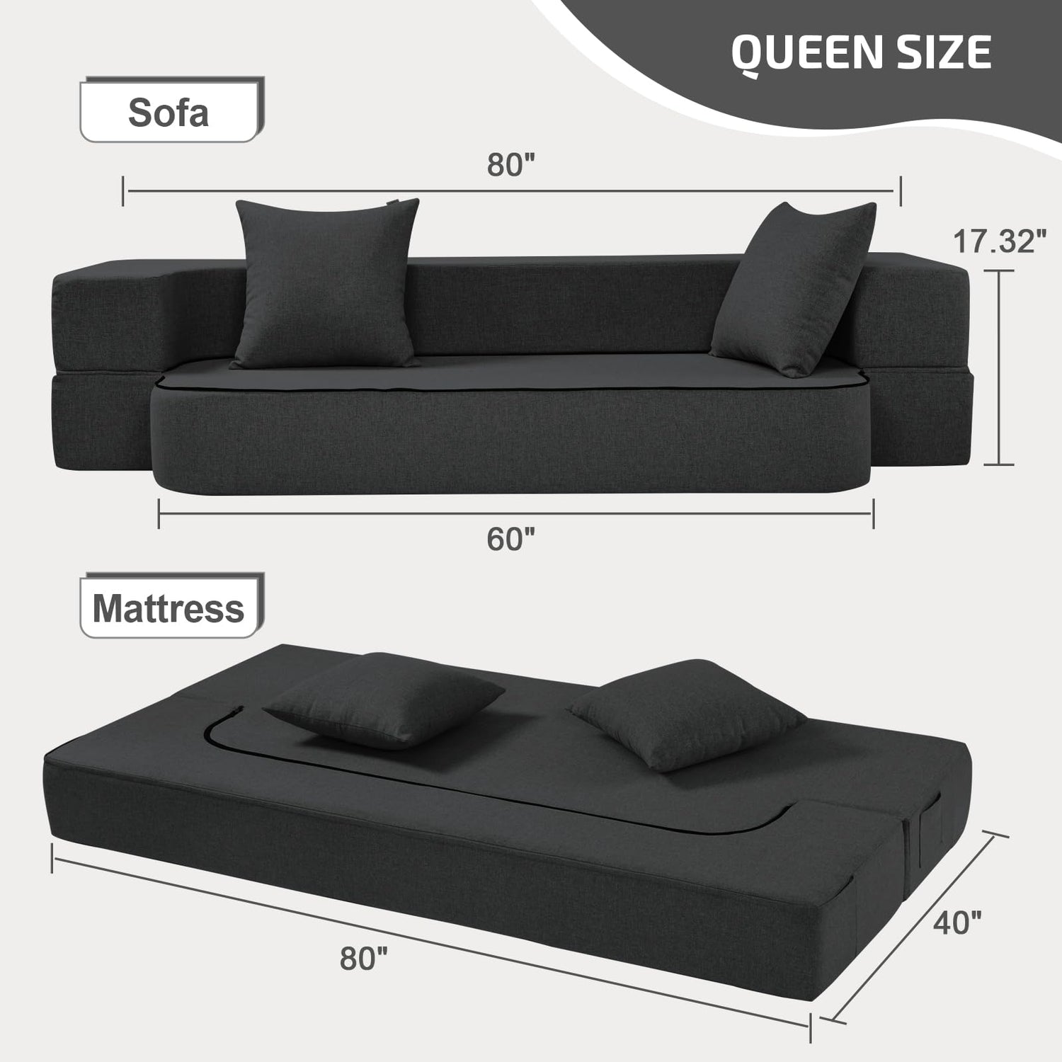 SUYOLS 2-in-1 Convertible Couch Bed with 2 Pillows - Folding Floor Couch & Sleeping Mattress - Washable Cover & Memory Foam Sleeper for Living Room/Guest Room/Home Office/Van Trip, Twin XL, Dark Grey