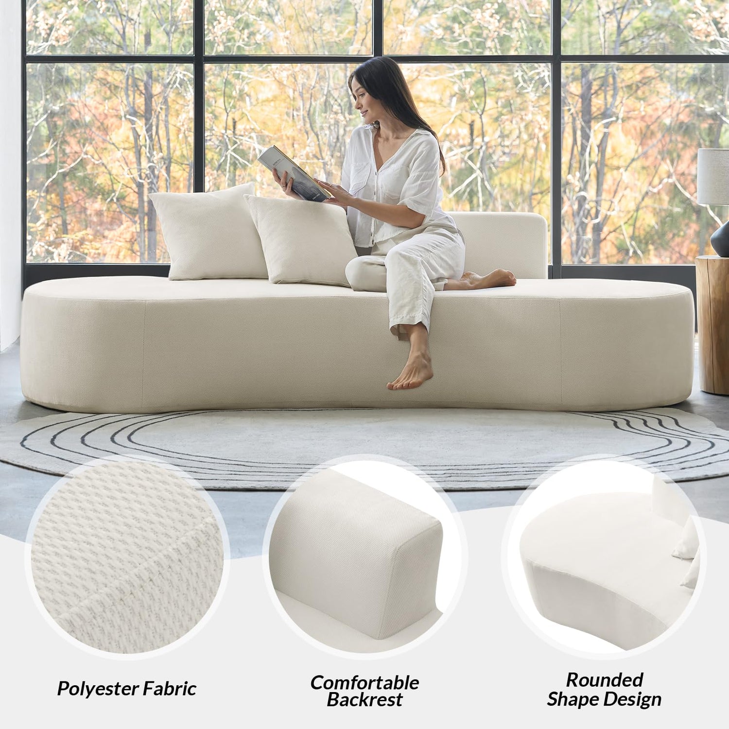 The support you need Curved Sofa Couch All Foam Design Frameless, no Assembly Required Female Leader Style Comfy Cloud Couch. Ivory