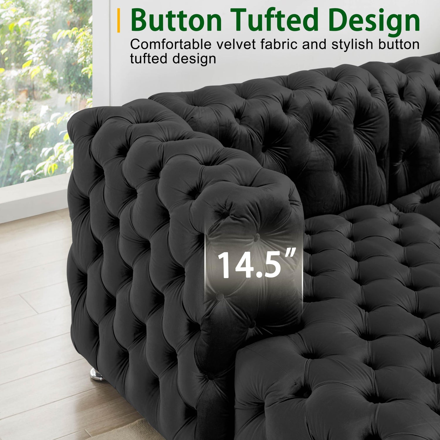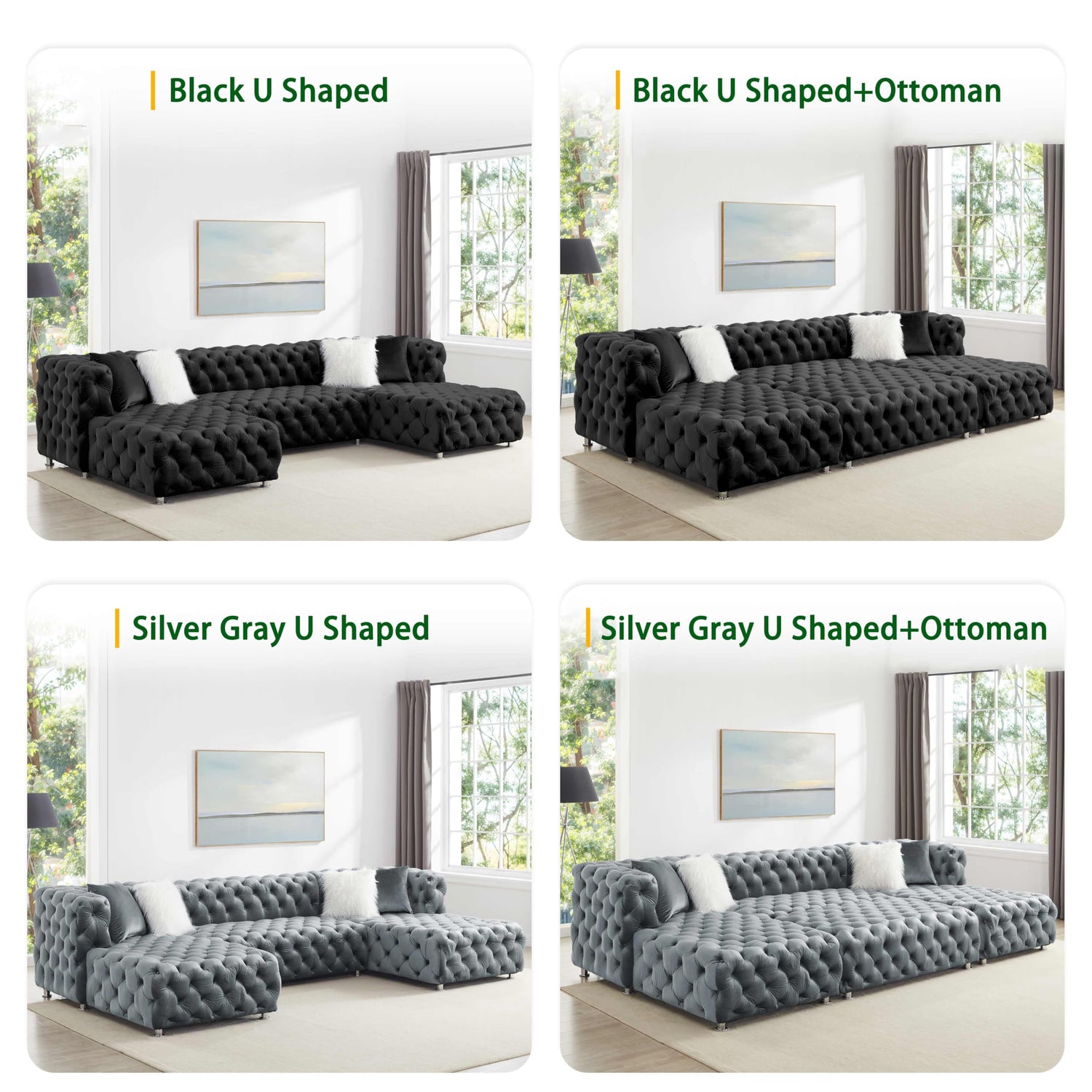 • High-quality Material:This chesterfield u shaped sectional sofa is made of selected velvet fabric, which is particularly textured and not easy to wrinkle and pill; the material is durable and easy to clean; wipe the stained place with a towel. At the same time, this sofa's cushion and inner lining are high-density sponges, so the resilience of the cushion is very good. Provides ultimate comfort, whether sitting or lying down.