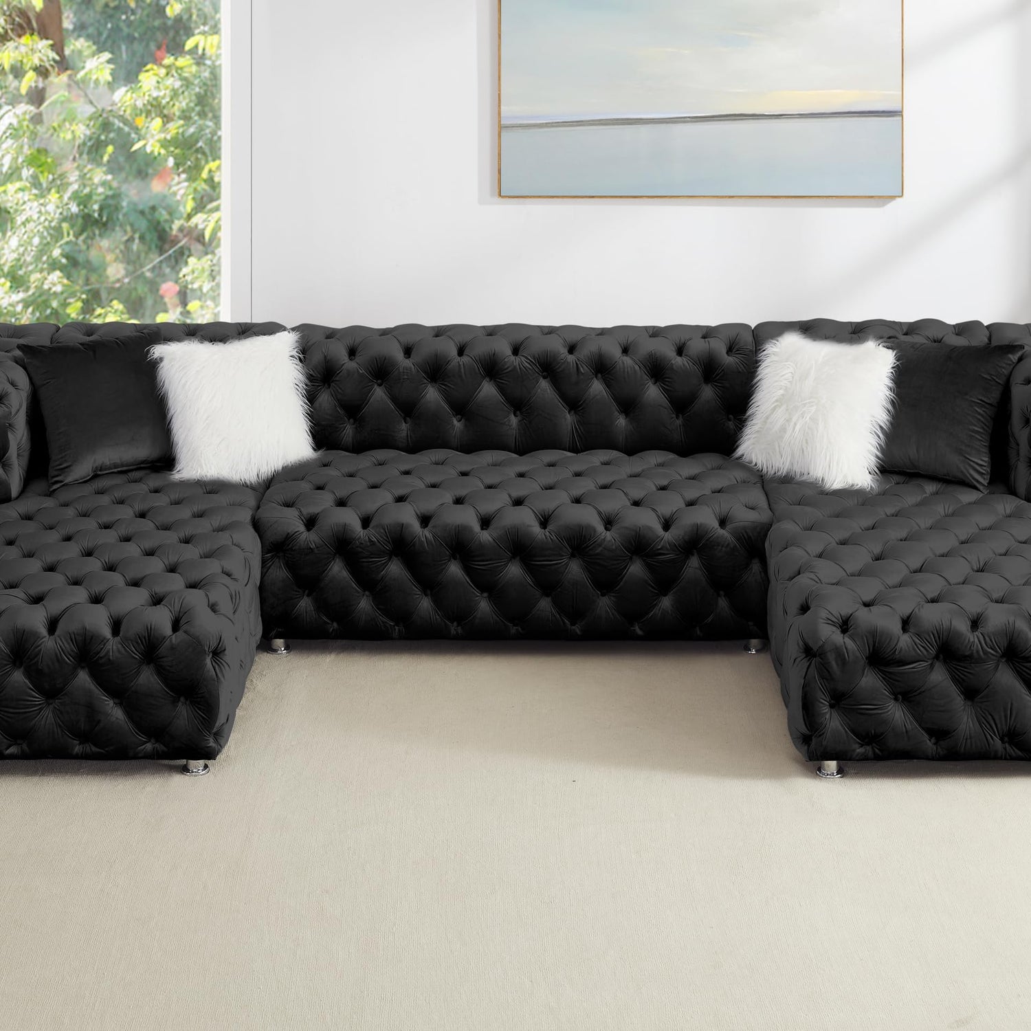 • Luxury Chesterfield Style: This Luxury velvet sectional sofa couch takes the classic chesterfield design, which is very soft and comfortable and has a modern and sophisticated look. Double Chaise U-shaped 6 seater modern couch is designed with popular deep button tufting and square armrests, which combine design and comfort, it brings elegant style to your living room and blends well with any home decor.