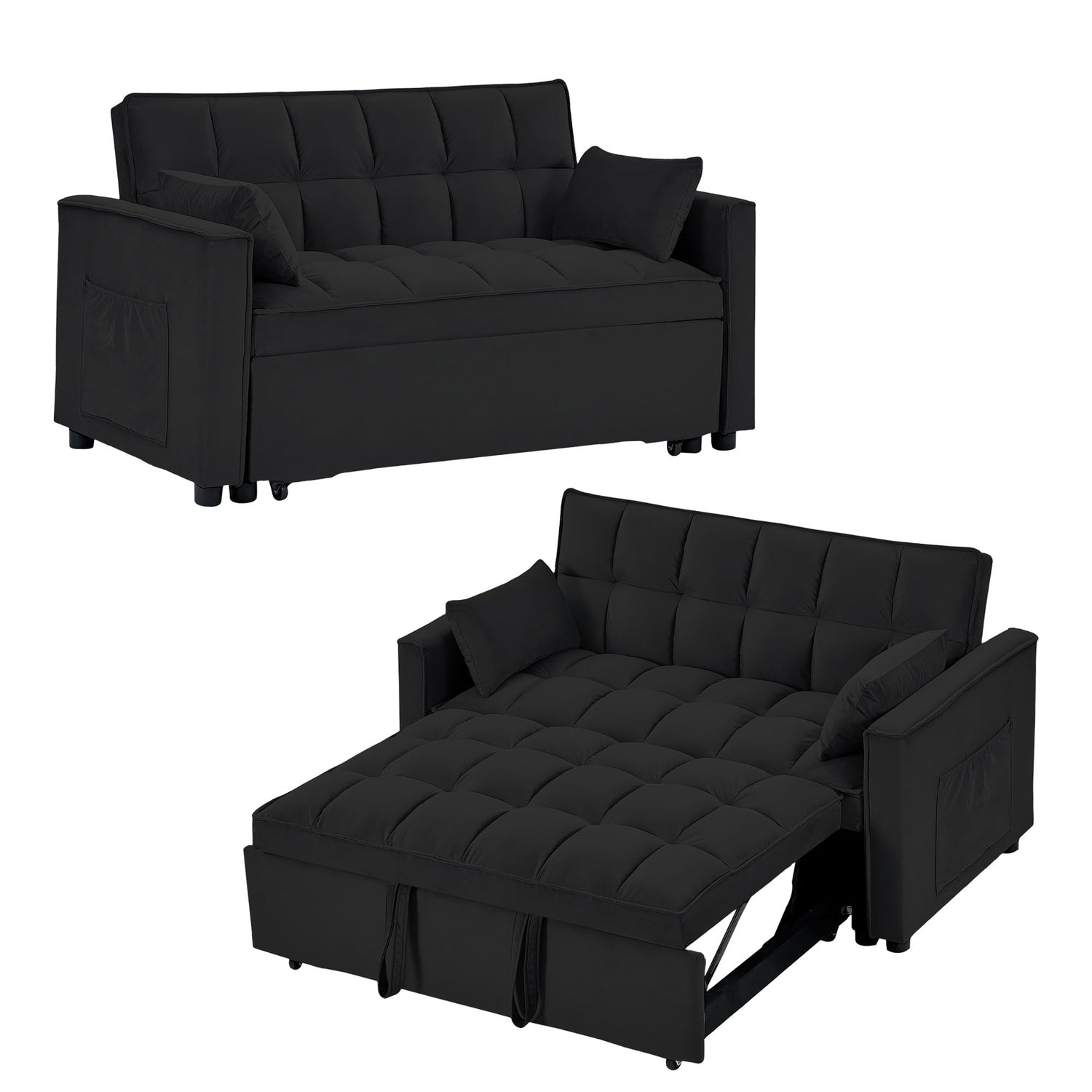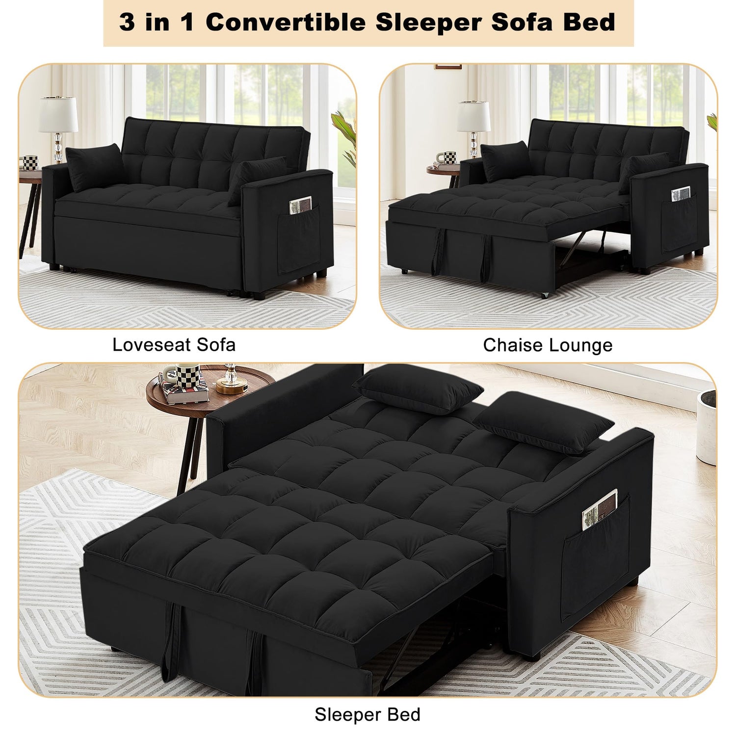 Tmsan 55.2" Loveseat Pull Out Couch, 3 in 1 Velvet Convertible Sleeper Sofa Bed for Living Room, Small Love Seat Futon Sofa Bed with Reclining Backrest, Toss Pillows, Side Pockets for Small Spaces