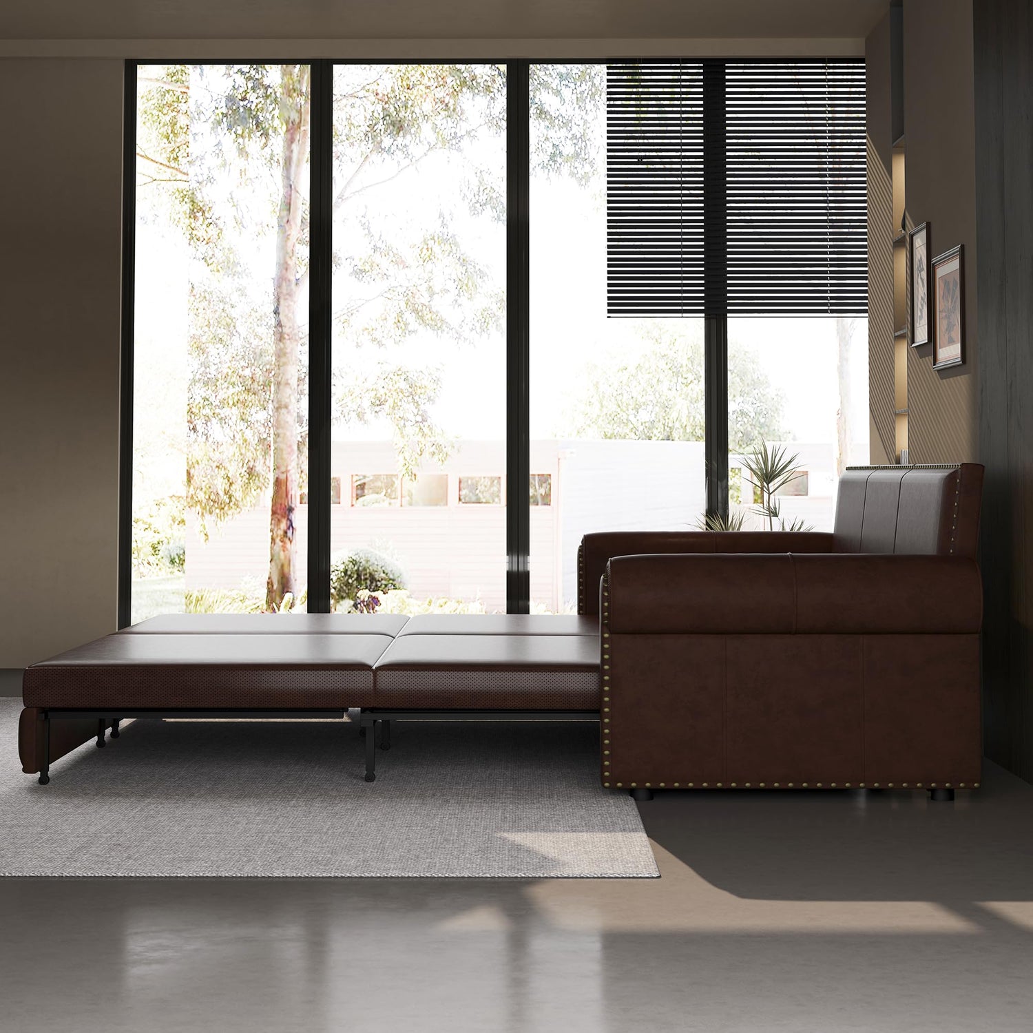- 【Comfortable Support】The pull-out couch bed with 3 soft pillows and high-quality PU leather fabric, high-density sponge upholstery gives a soft feeling and excellent support.