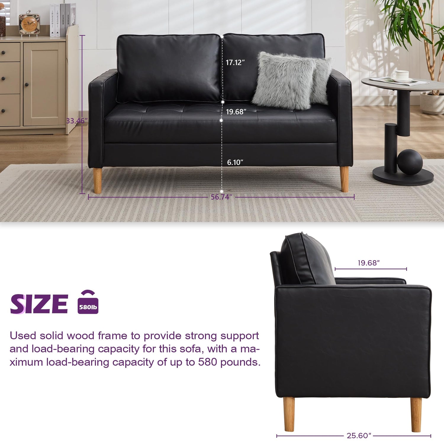- 【Elegant Design】This 57-inch black faux leather small couch adds a touch of sophistication to any setting, from living rooms and offices to bedrooms and RVs. Its tufted cushion elevates the room’s ambiance, making it a stylish addition to compact spaces, ideal for both entertaining guests and relaxing downtime.