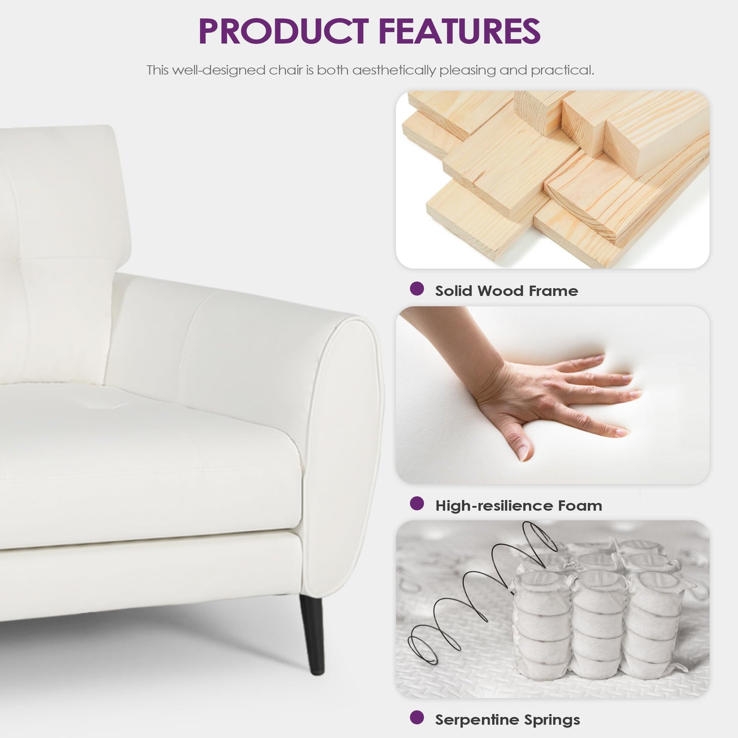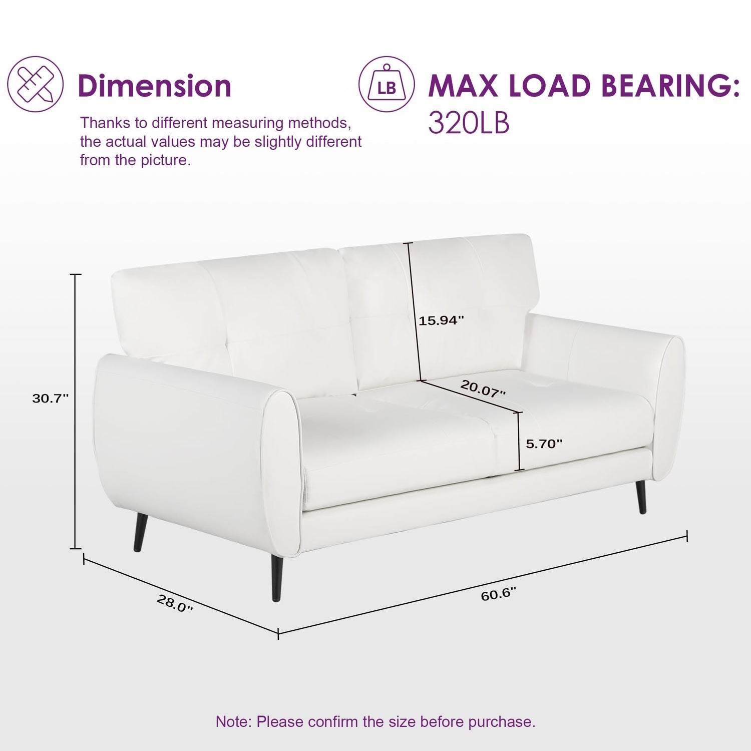 TYBOATLE Sofa Couch 61" Small Loveseat Couches for Living Room Leather Couch Mid Century Modern Tufted Mini Sofa Comfy Office 2 Seat Settee Love Seat for Small Spaces Bedroom, White