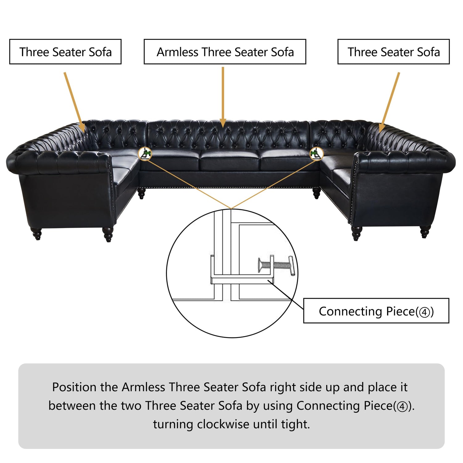 - 【U Shaped Couch】This product comes in three packages. Three packages may not arrive at the same time.