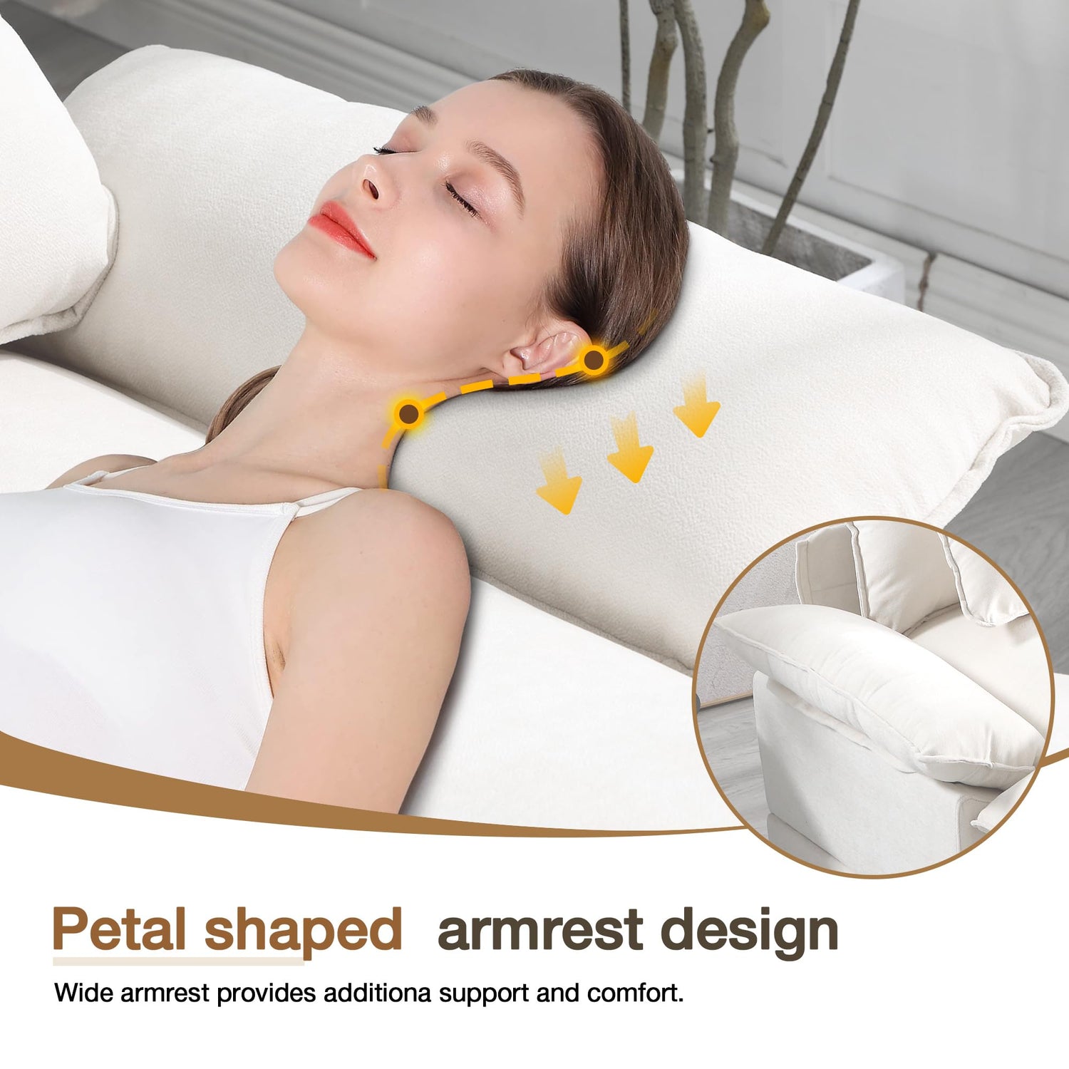- 【Excellent Comfort】The cloud couch is a haven of comfort. Its thick, dual-layer seat cushions, fully filled with high-resiliency foam, offer a perfect blend of softness and support. The plush back cushions and lumbar pillows provide superior back and lumbar support, while the petal-shaped armrests add a touch of elegance and excellent arm support. As you recline, the couch envelops you in a cocoon of comfort, making every moment pure bliss.