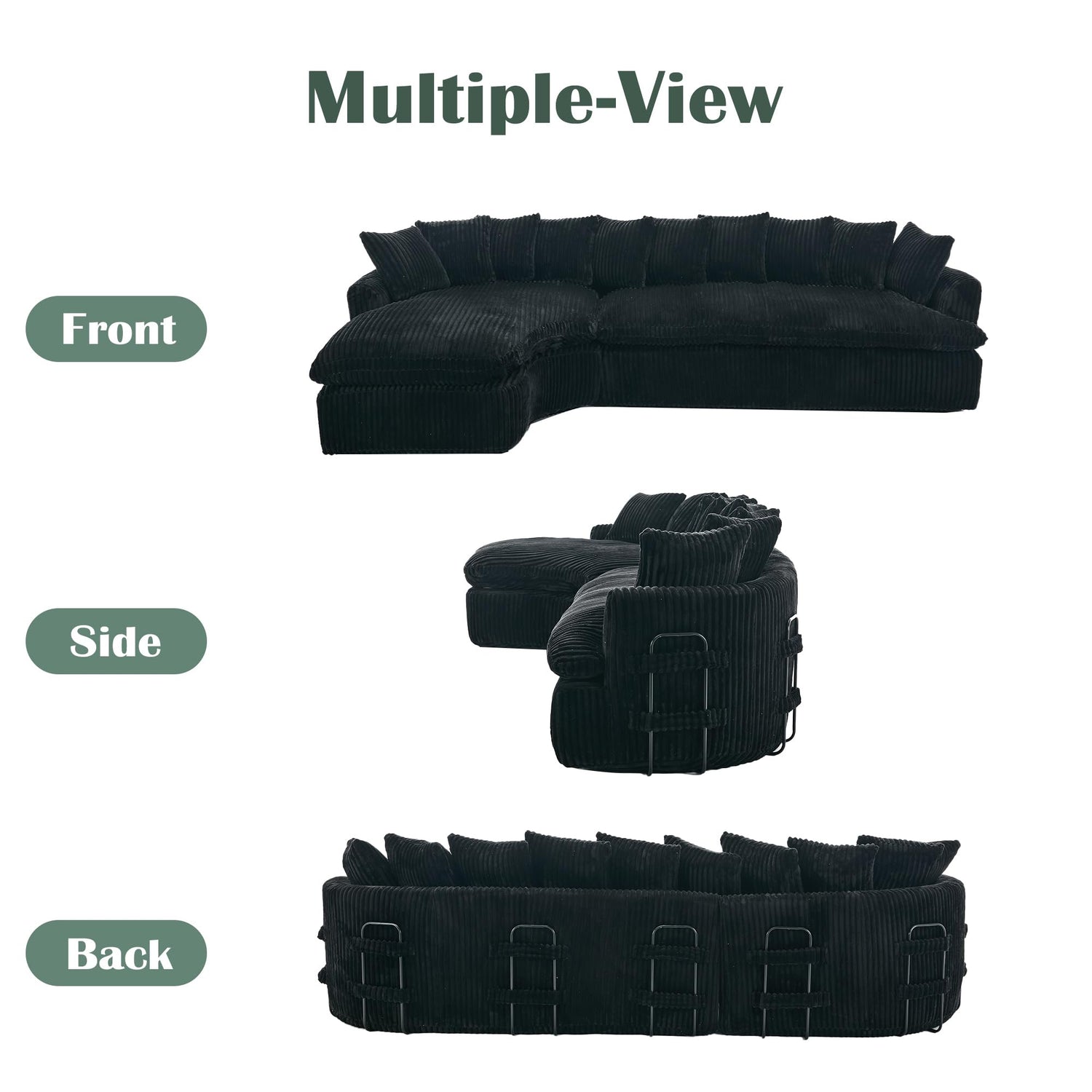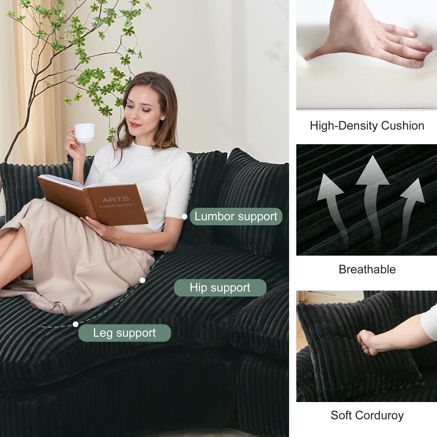 UQGVML 129'' Cloud Corduroy Couch for Living Room, Modern Curved Cloud Sofa, Upholstered Corner Couches for Living Room, L Shaped Sectional Couch (Black)