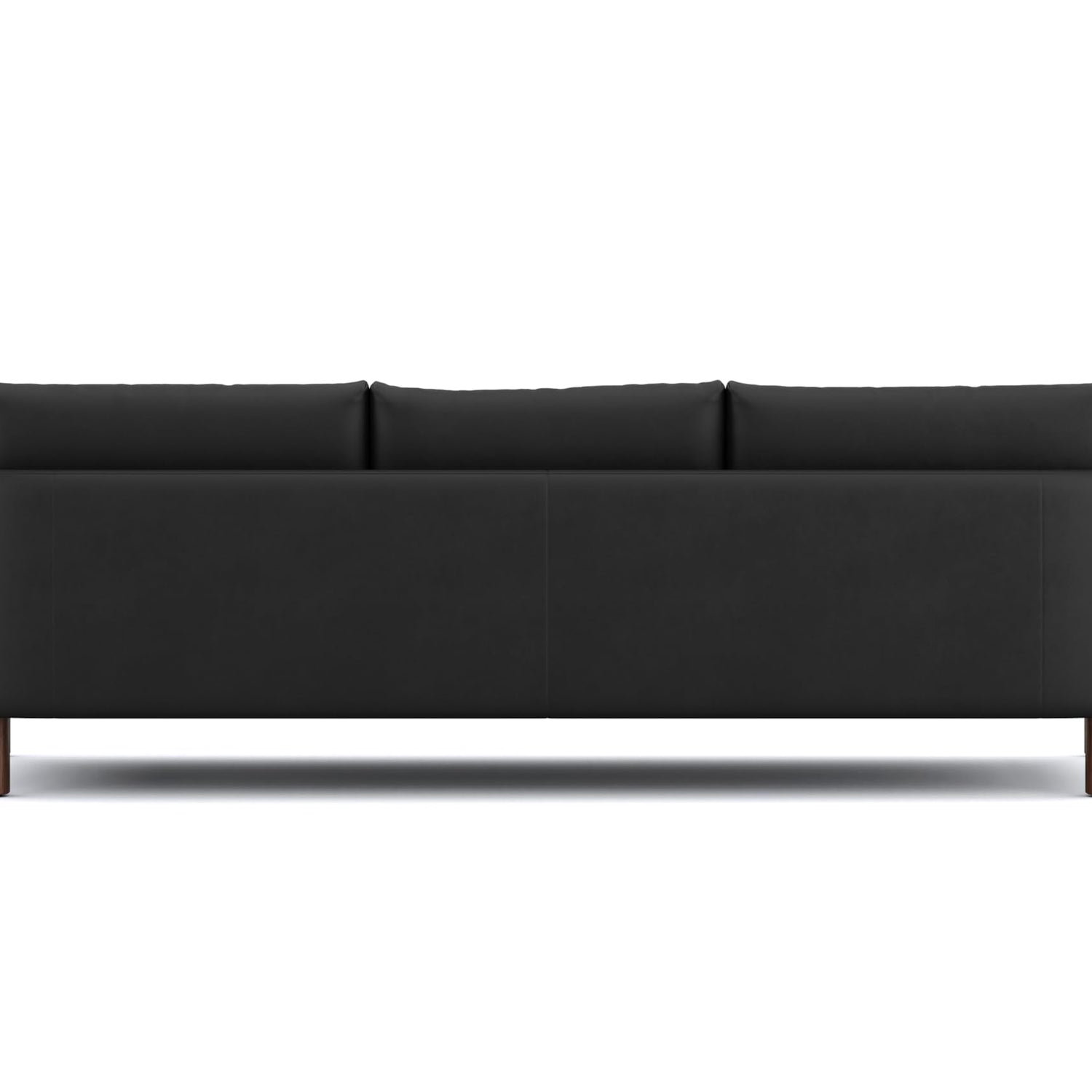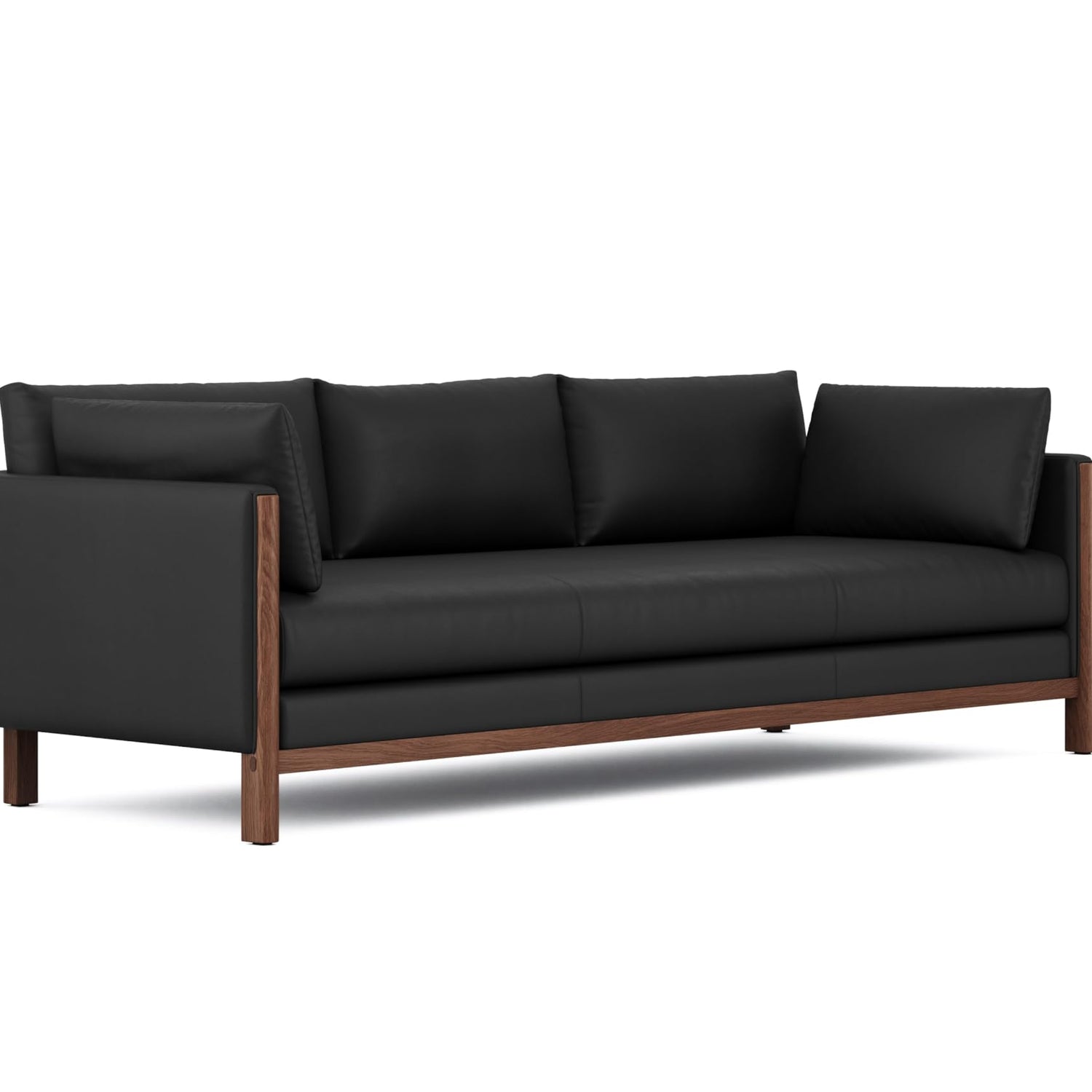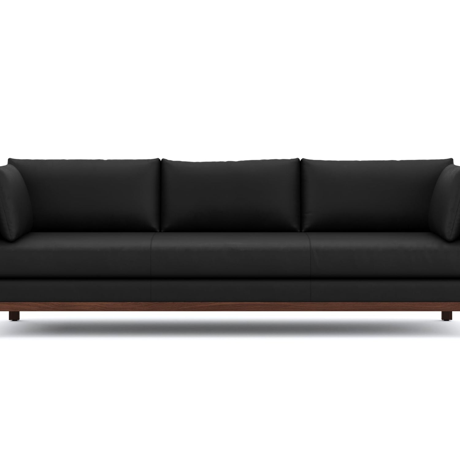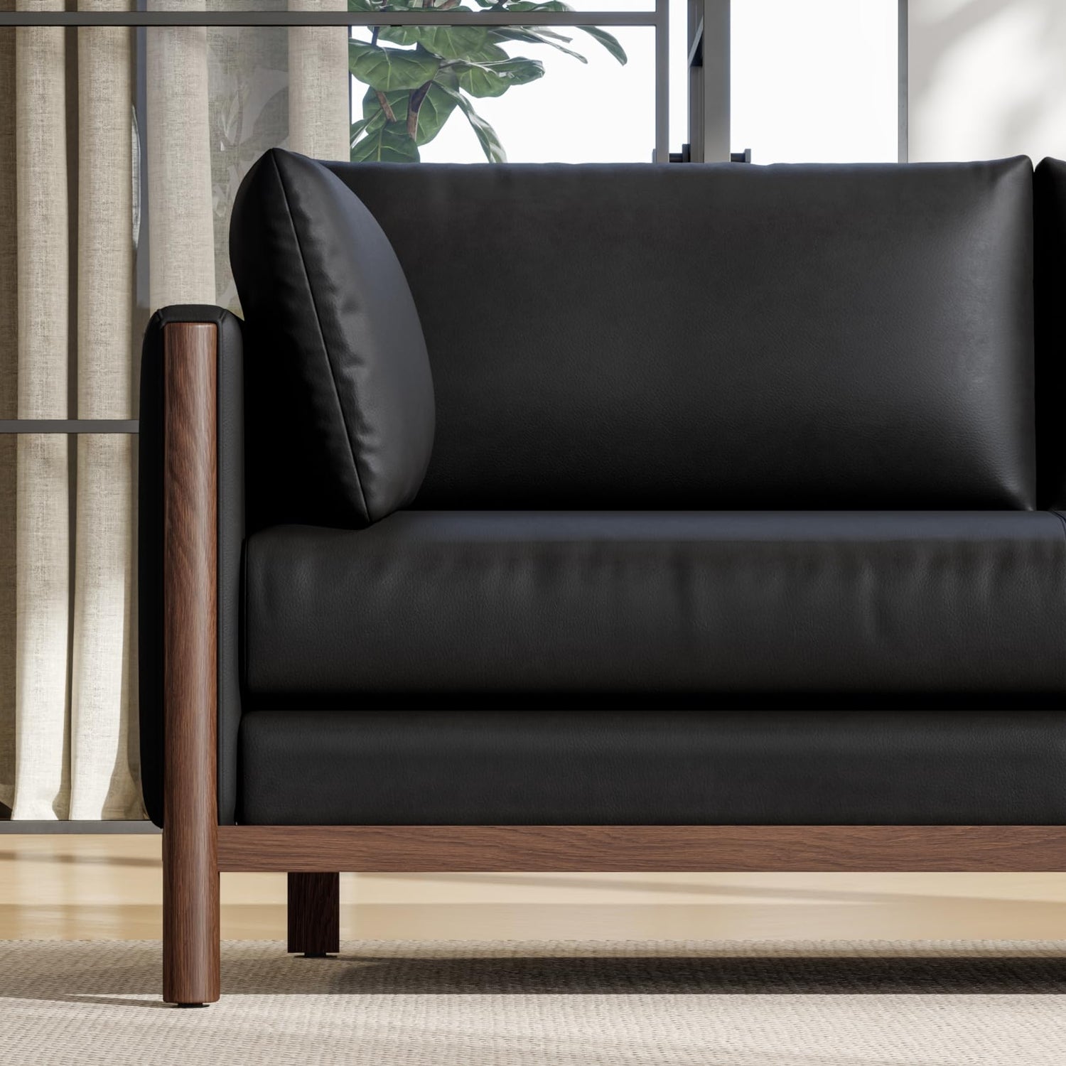 - DISTINCTIVE DESIGN: The Matera black leather couch emphasizes outstanding legs gracefully embraced by armrests, showcasing the beauty of solid Canadian Hardwood in a truly unique design.