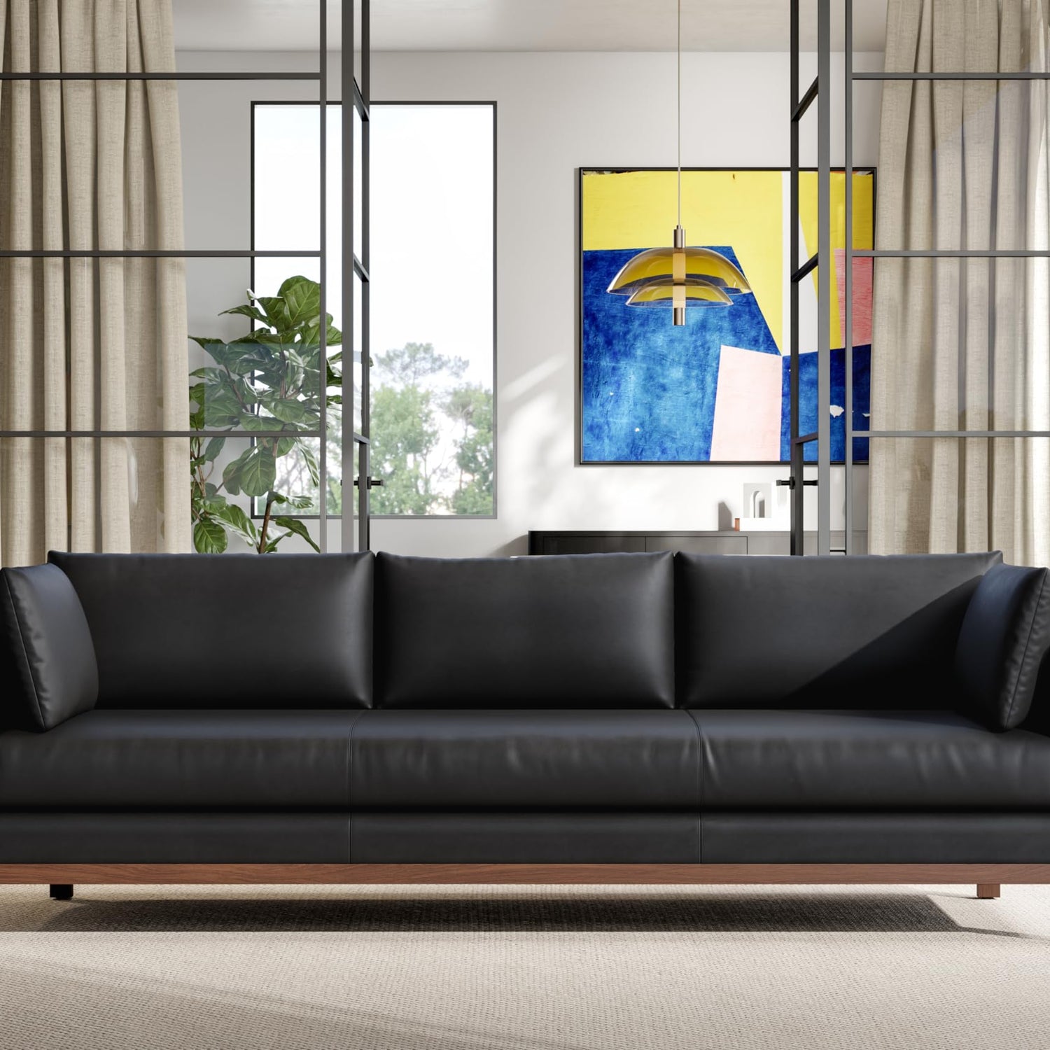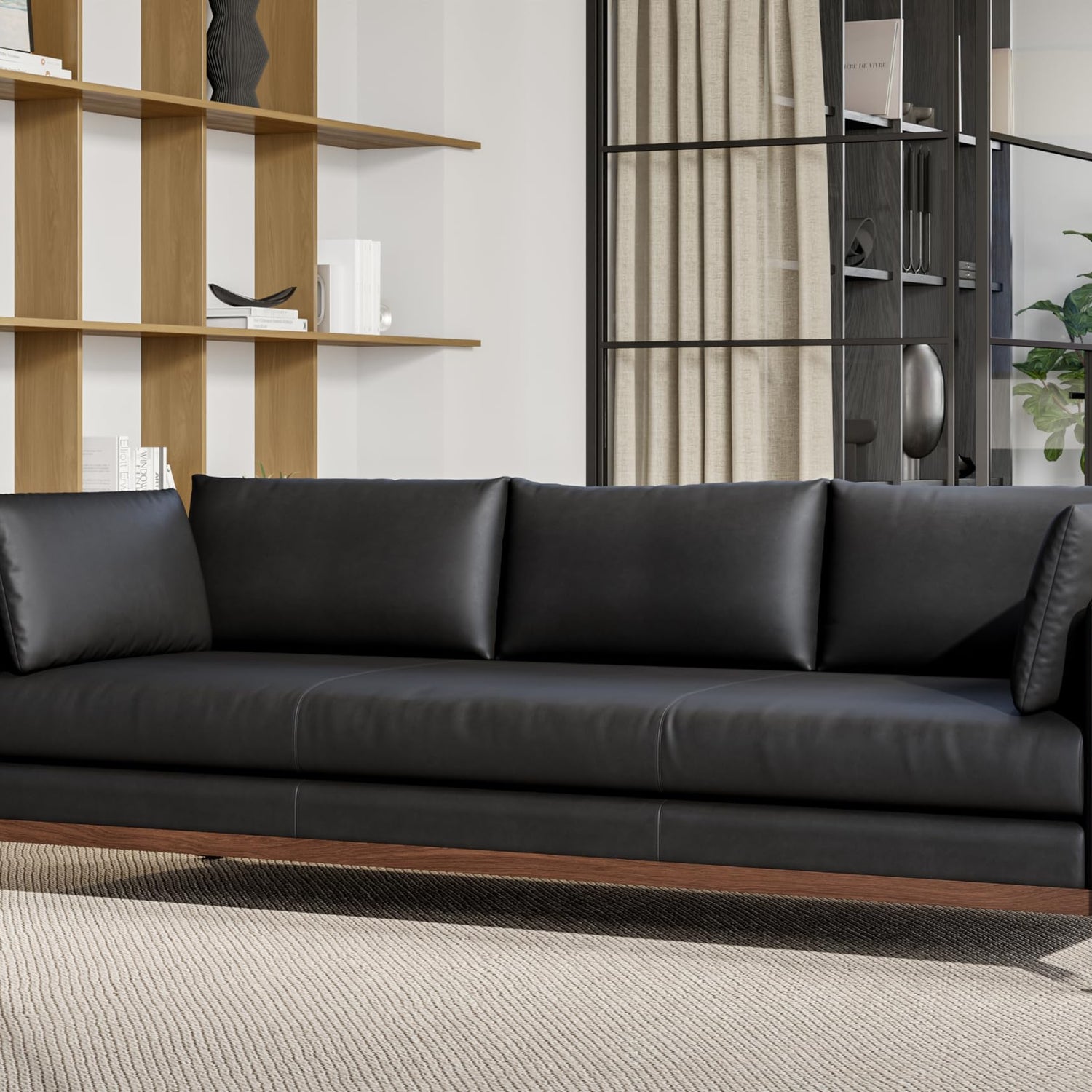 - ATTENTION TO DETAIL: The Matera black leather sofa includes two Throw Pillows, resonating with opulence & attention to detail, enhancing the overall allure of your space & adding a touch of luxury.
