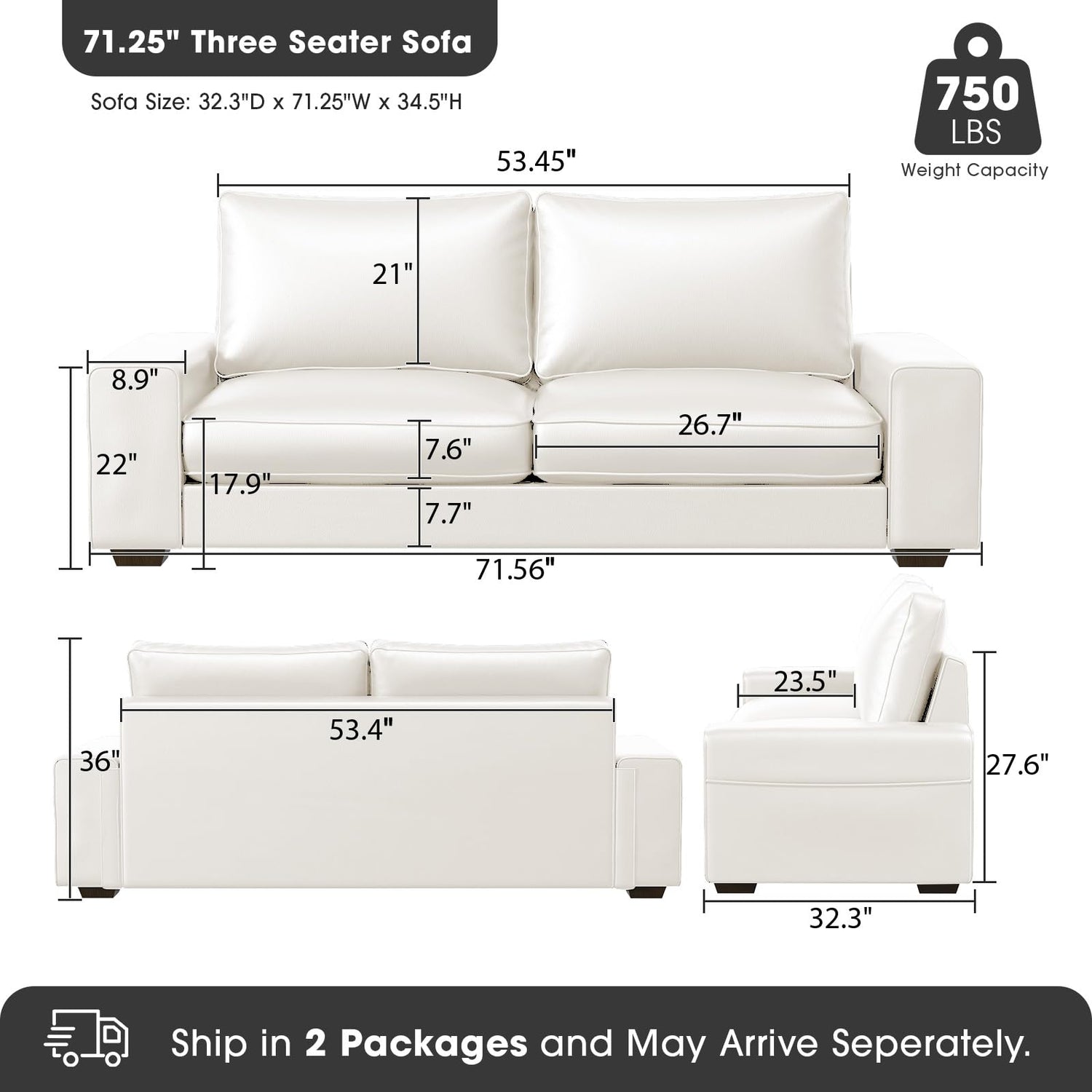 - [Spacious and Comfortable] Our loveseat sofa, which measures 32.3 x 71.25 x 34.5 inches (DxWxH),provides plenty of space for entertainment and relaxation while comfortably seating 2 to 3 people. Its ergonomic seat and back cushions, packed with high-density foam, give outstanding support for long hours of sitting. The high-quality elastic springs beneath the seat cushions not only ensure the sofa's solidity and longevity, but they also absorb vibrations.