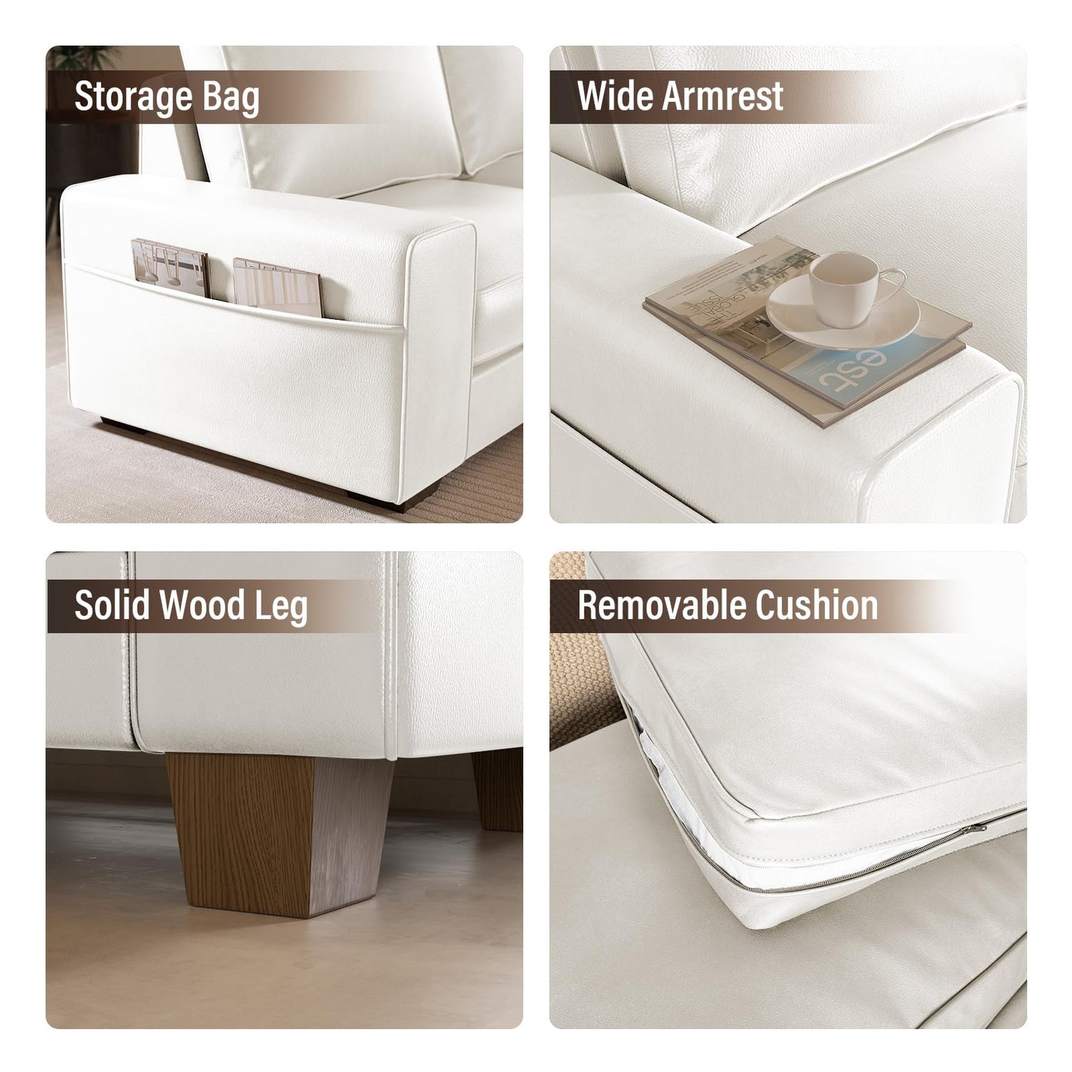 - [Convenient Storage and Easy Maintenance] Our modern sofa couch has functional storage compartments on both sides, making it easy to store periodicals, tablets, and other everyday needs. Our mid-century couch is composed of high-quality, skin-friendly imitation leather that is simple to clean—just wipe away stains with a wet cloth for easy upkeep.